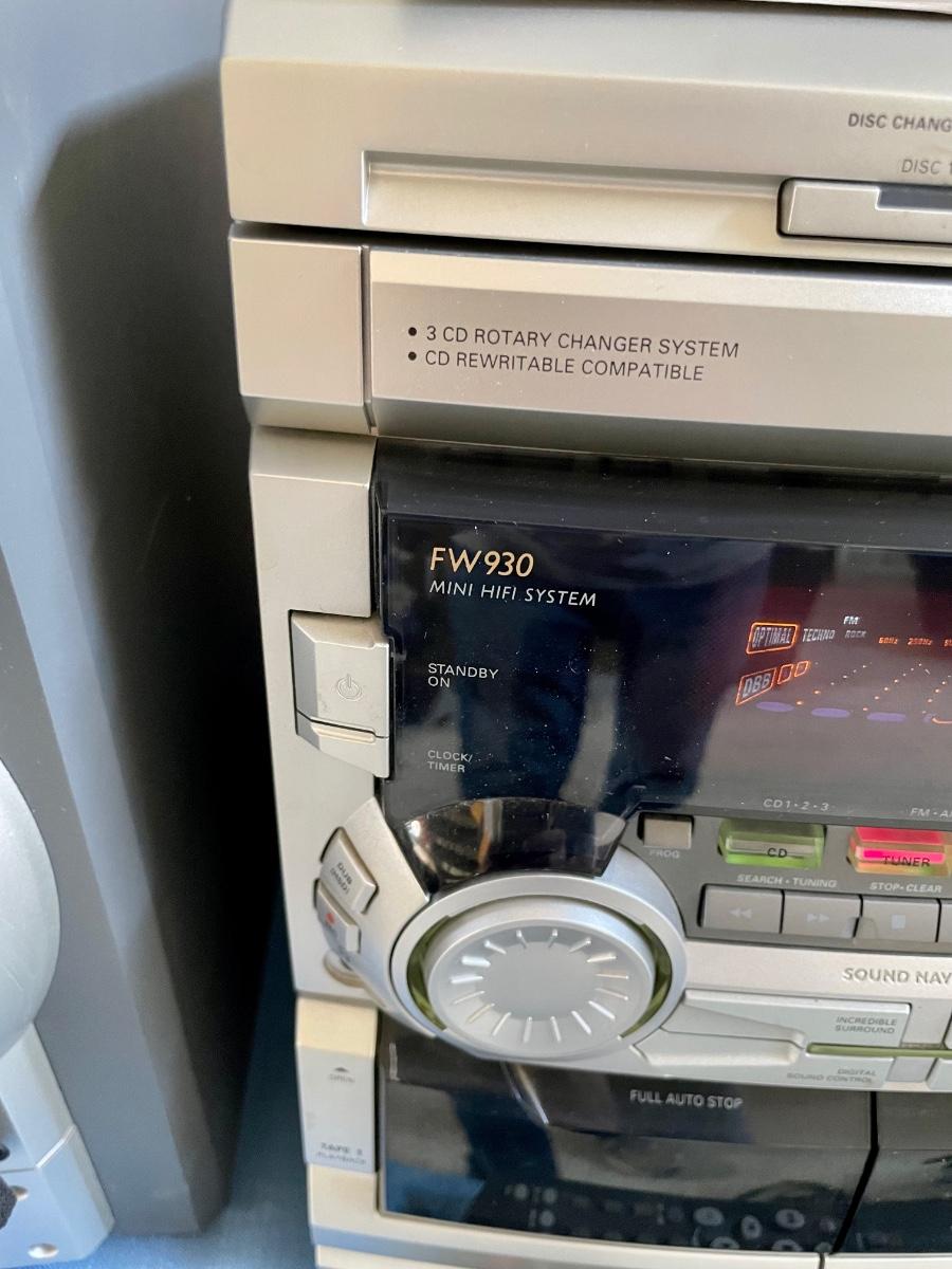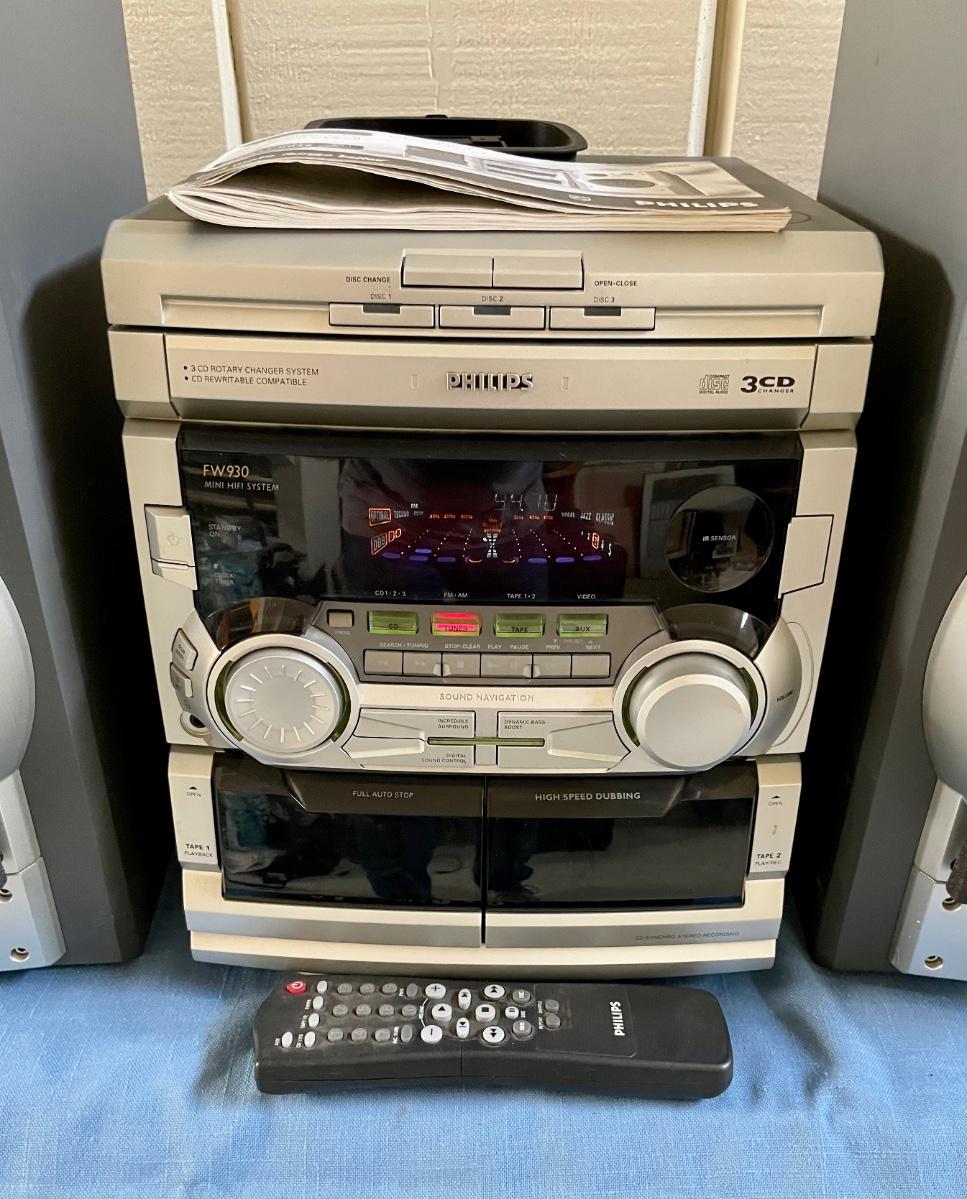 Bookshelf style AM-FM-CD Hi-Fi Stereo system, Philips model FW930R. Includes remote. Tested.