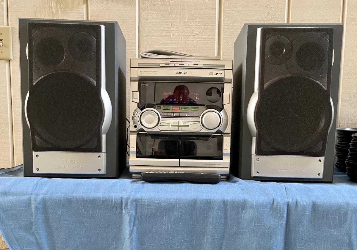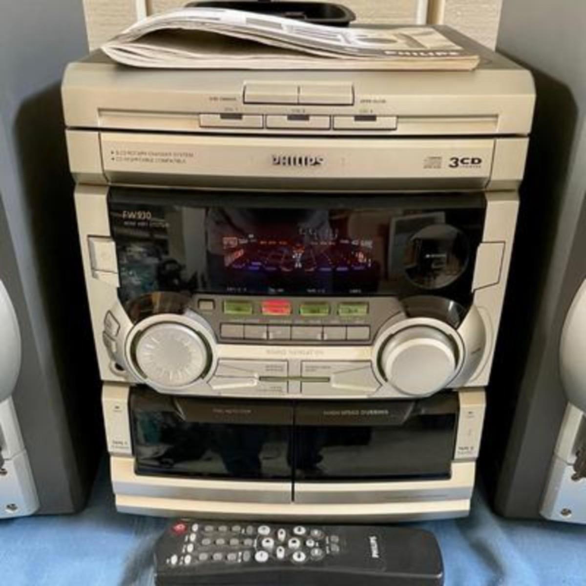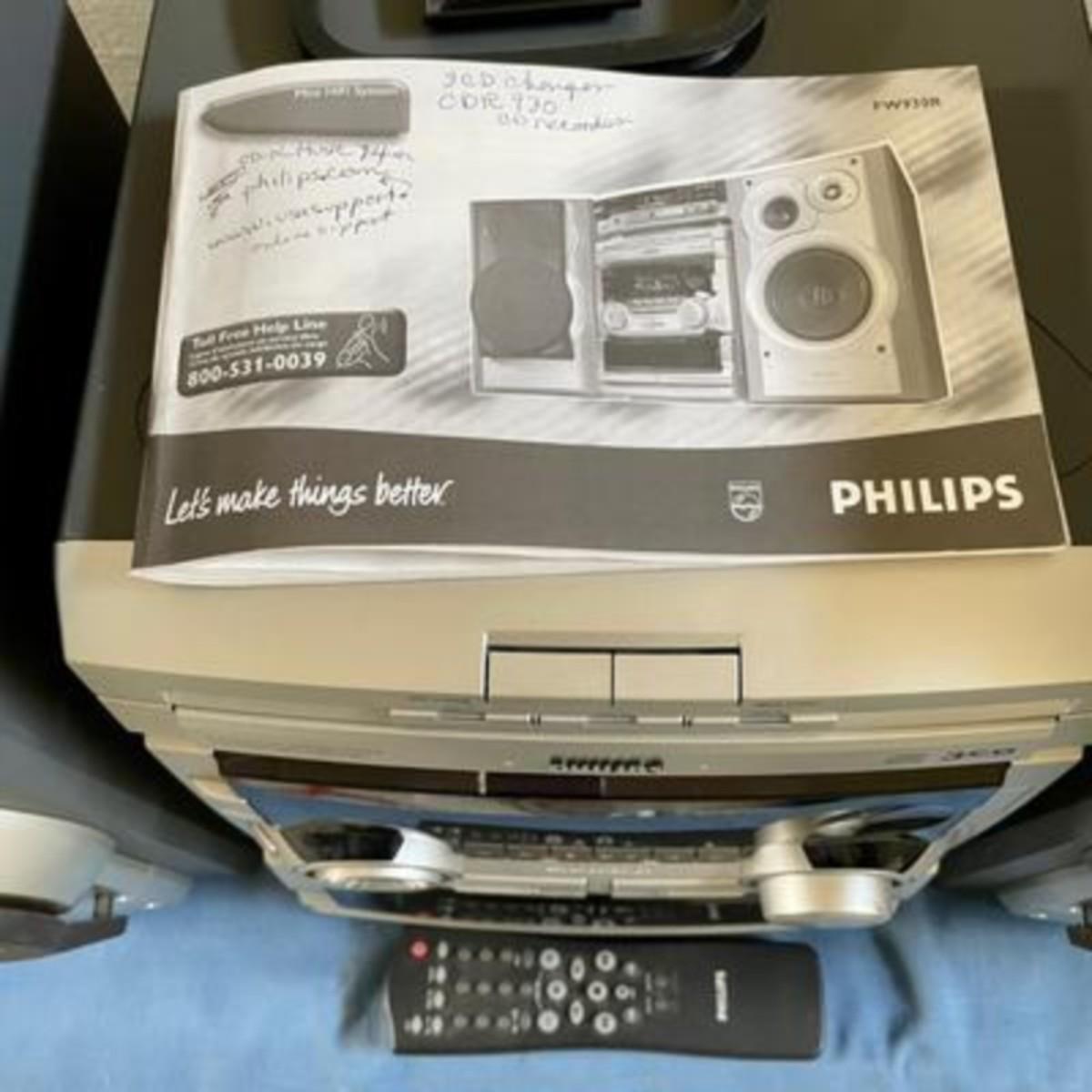 Bookshelf style AM-FM-CD Hi-Fi Stereo system, Philips model FW930R. Includes remote. Tested.
