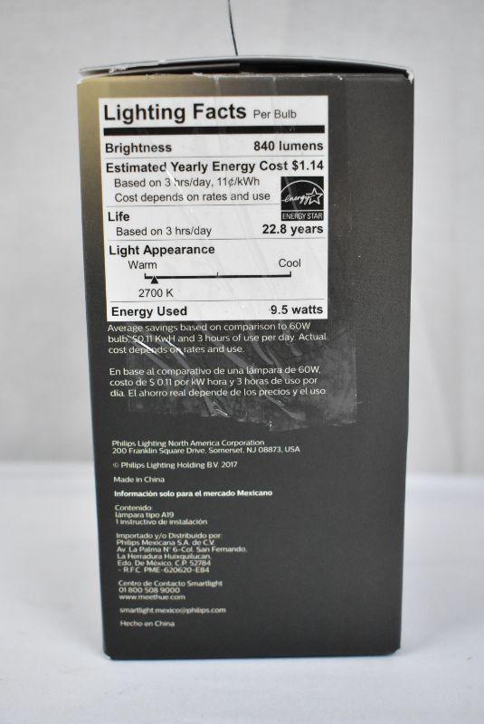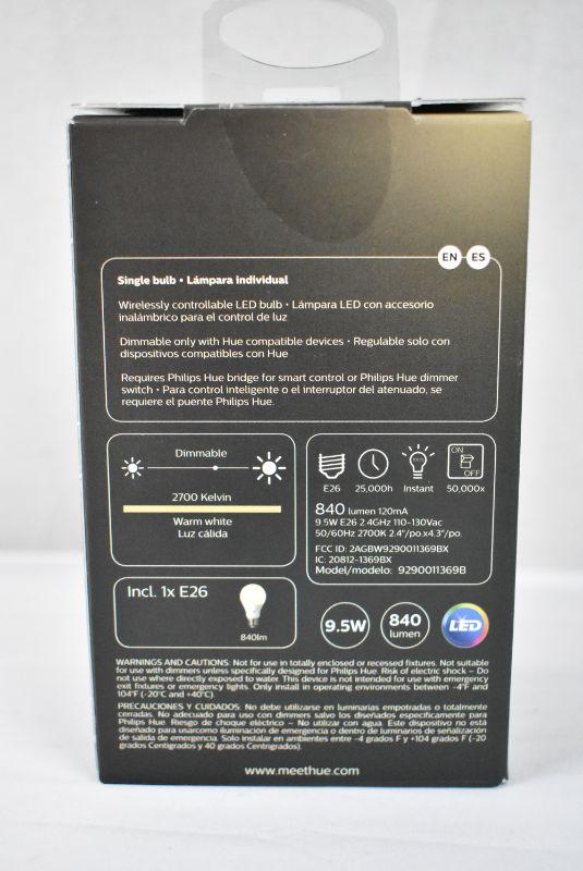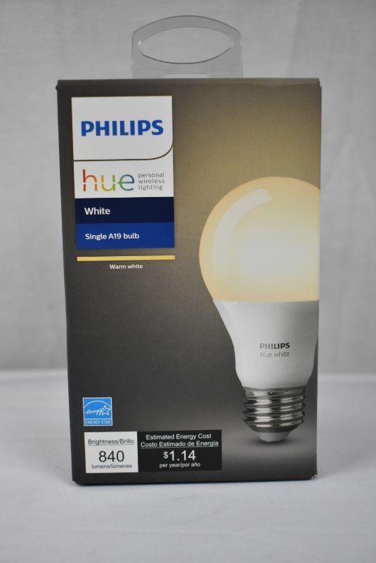 Philips Hue White A19 Smart Light Bulb, 60W LED, 1-Pack. Open Box - New