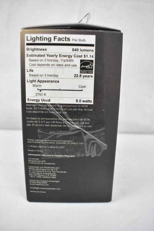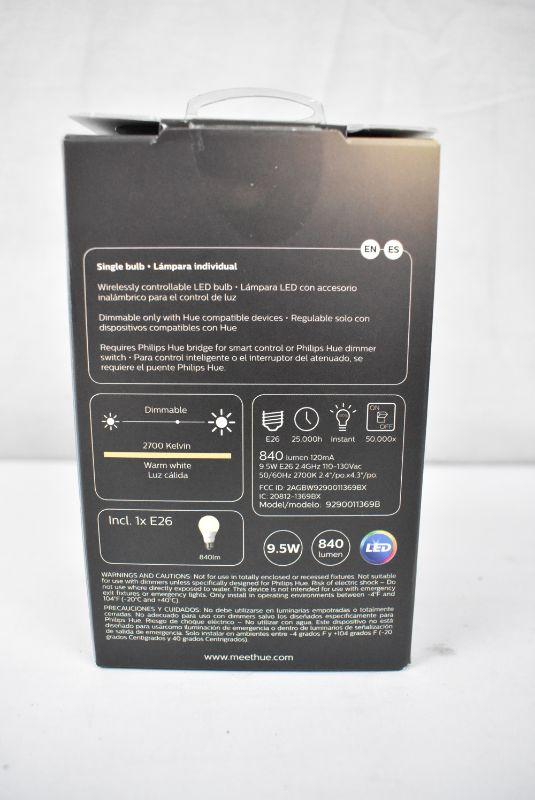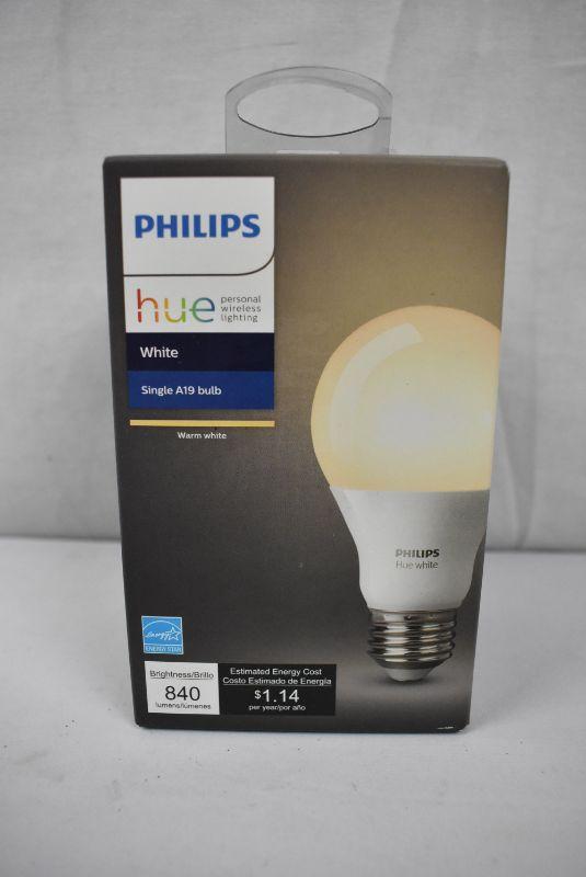 Philips Hue White A19 Smart Light Bulb, 60W LED, 1-Pack Open Box - New