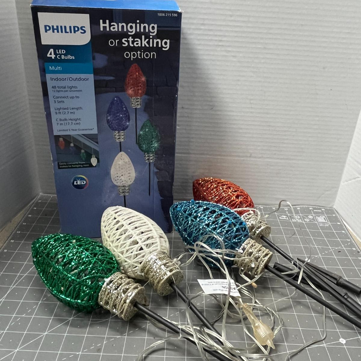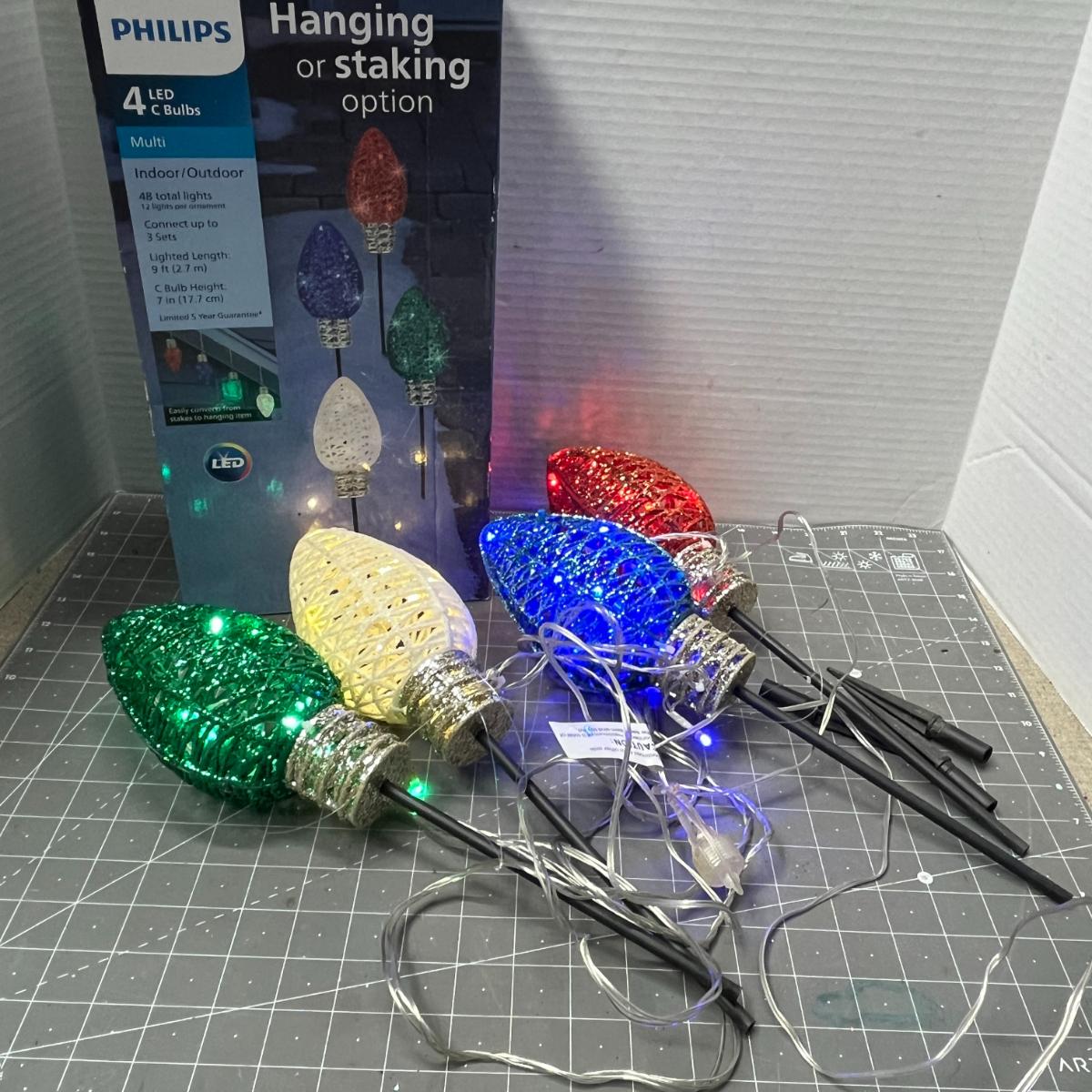 4 Pc, Multi-color, indoor/outdoor, stake or hang.
