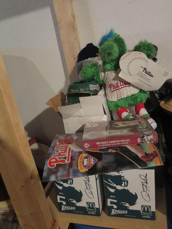 Bobble heads, cd's, ornaments, Eagles snowman, clown, and more. Bring box for moving from basement. Pick up is Wednesday July 31st, from 12 pm to 7pm in Sicklerville.