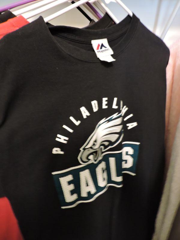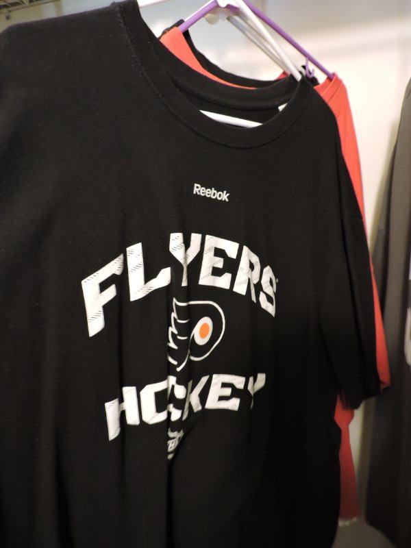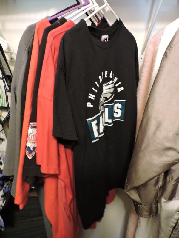 6 XL-XXL Eagles, Phillies, and Flyers t-shirts, **Please read Terms and Conditions before placing a bid. Pick up is Thursday, August 15, 2019 from 4pm to 7pm or Sunday, August 18 from 11am-2pm in Mullica Hill. All sales are final. All sales are as is, where is. Please review all photos. Any props included in photos are not included in listing. All measurements are approximate.