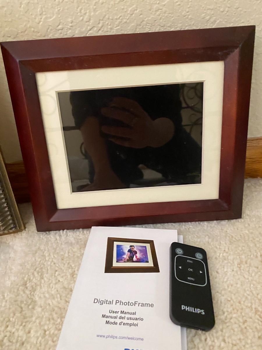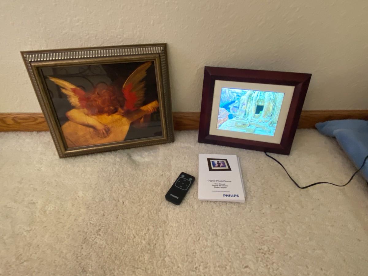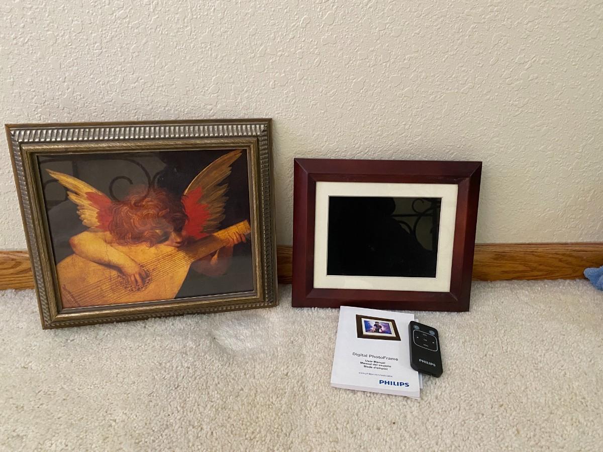PHILLIPS DIGITAL PHOTO FRAME AND CHERUB FRAMED WALL ART