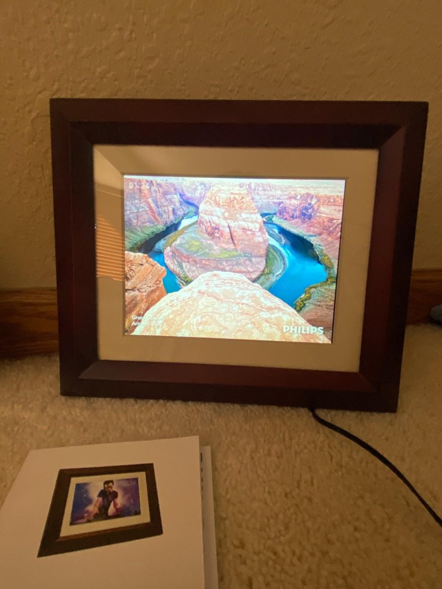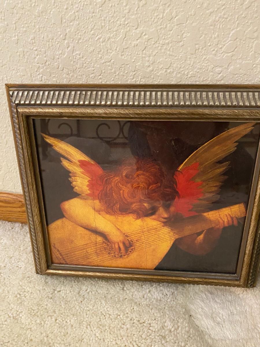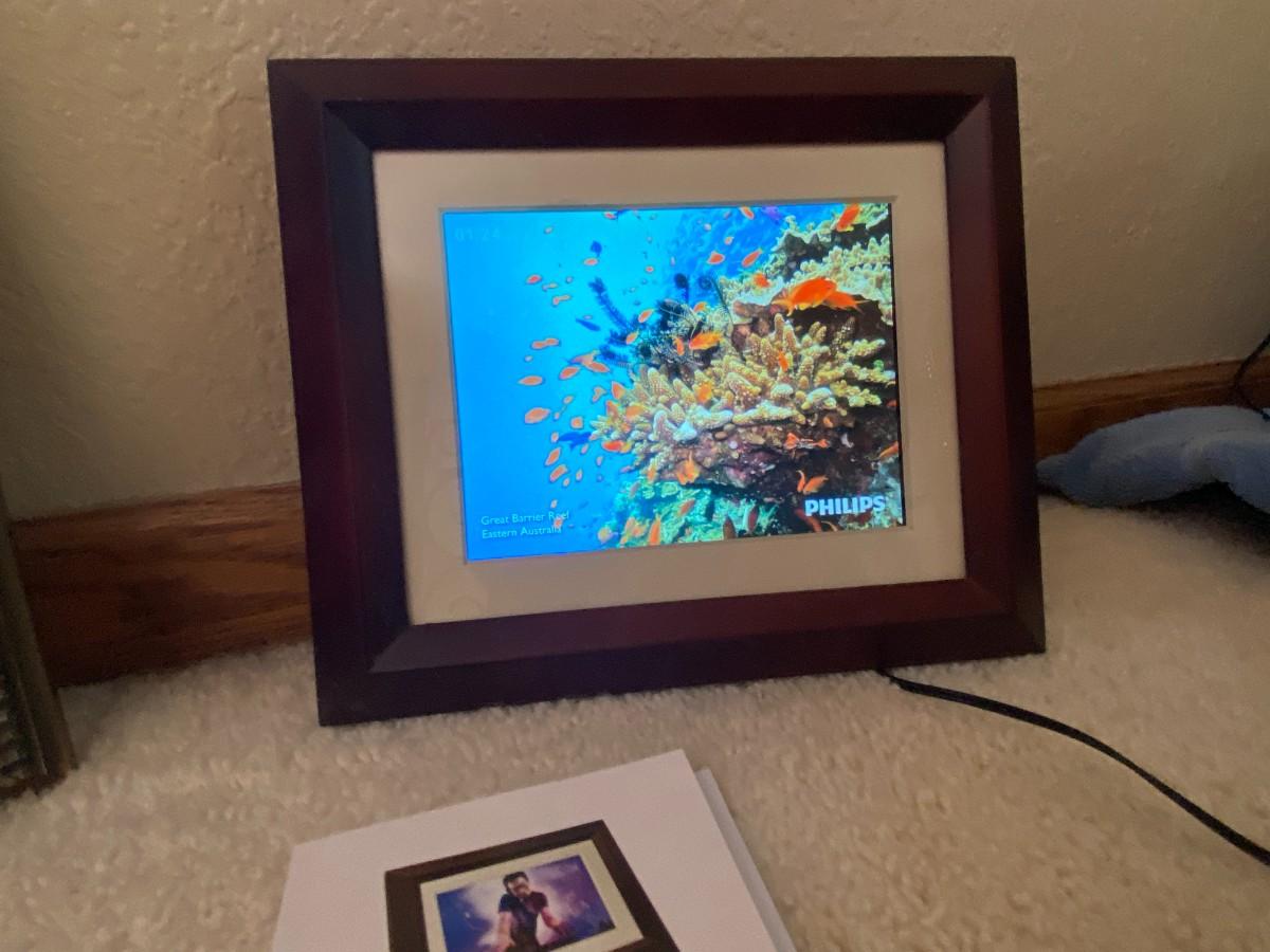 PHILLIPS DIGITAL PHOTO FRAME AND CHERUB FRAMED WALL ART