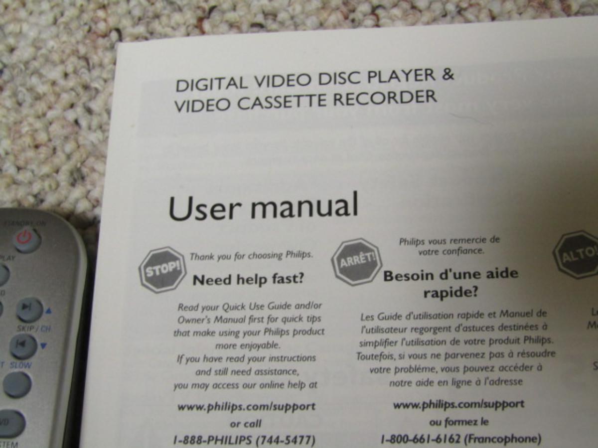 Phillips DVD Player and VHS Recorder with Remote Control (Untested)