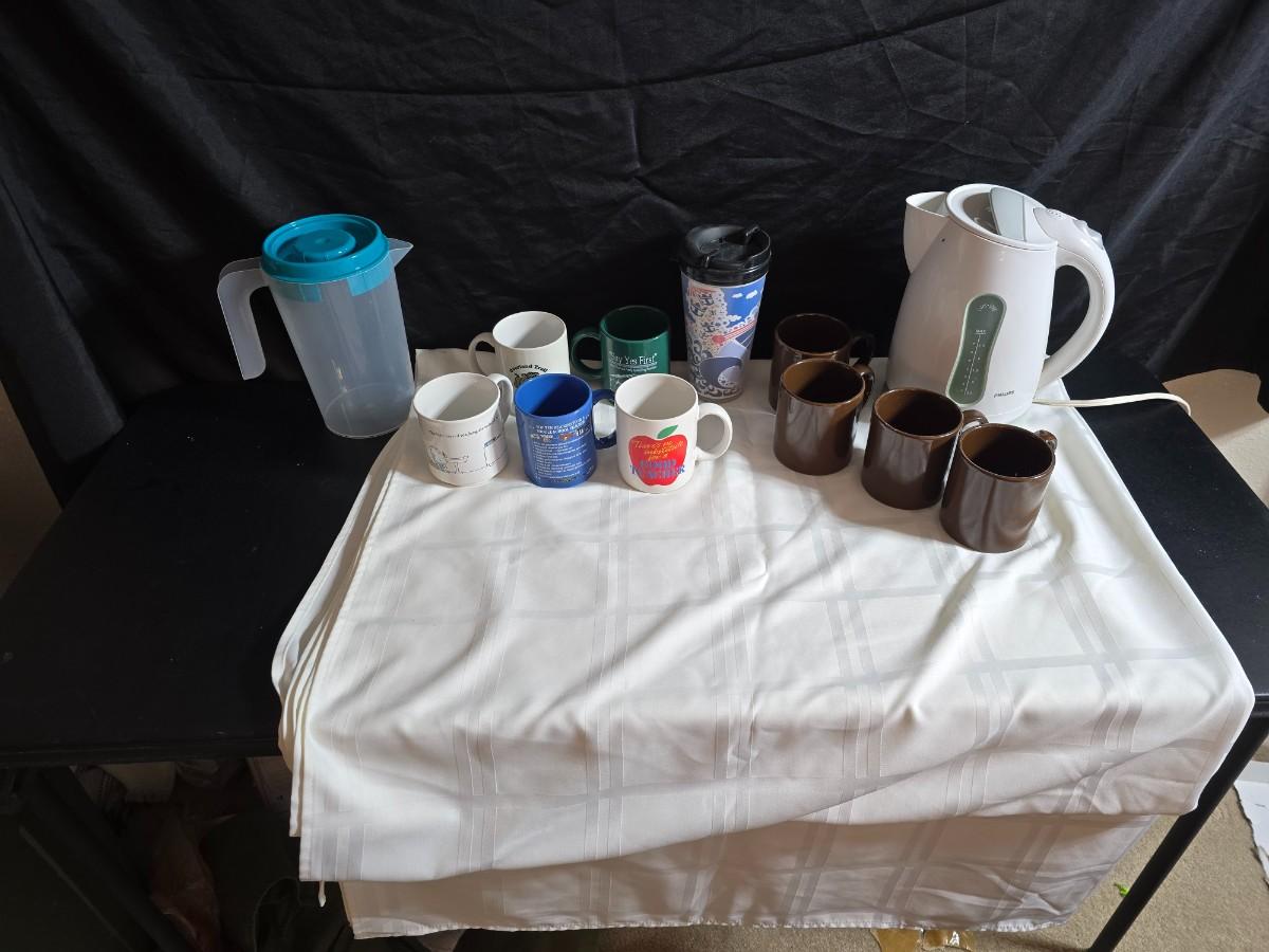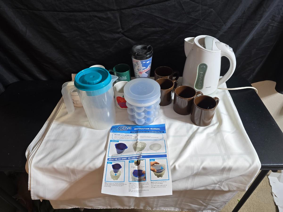Phillips Electronics water kettle - Plastic water pitcher - and a few mugs