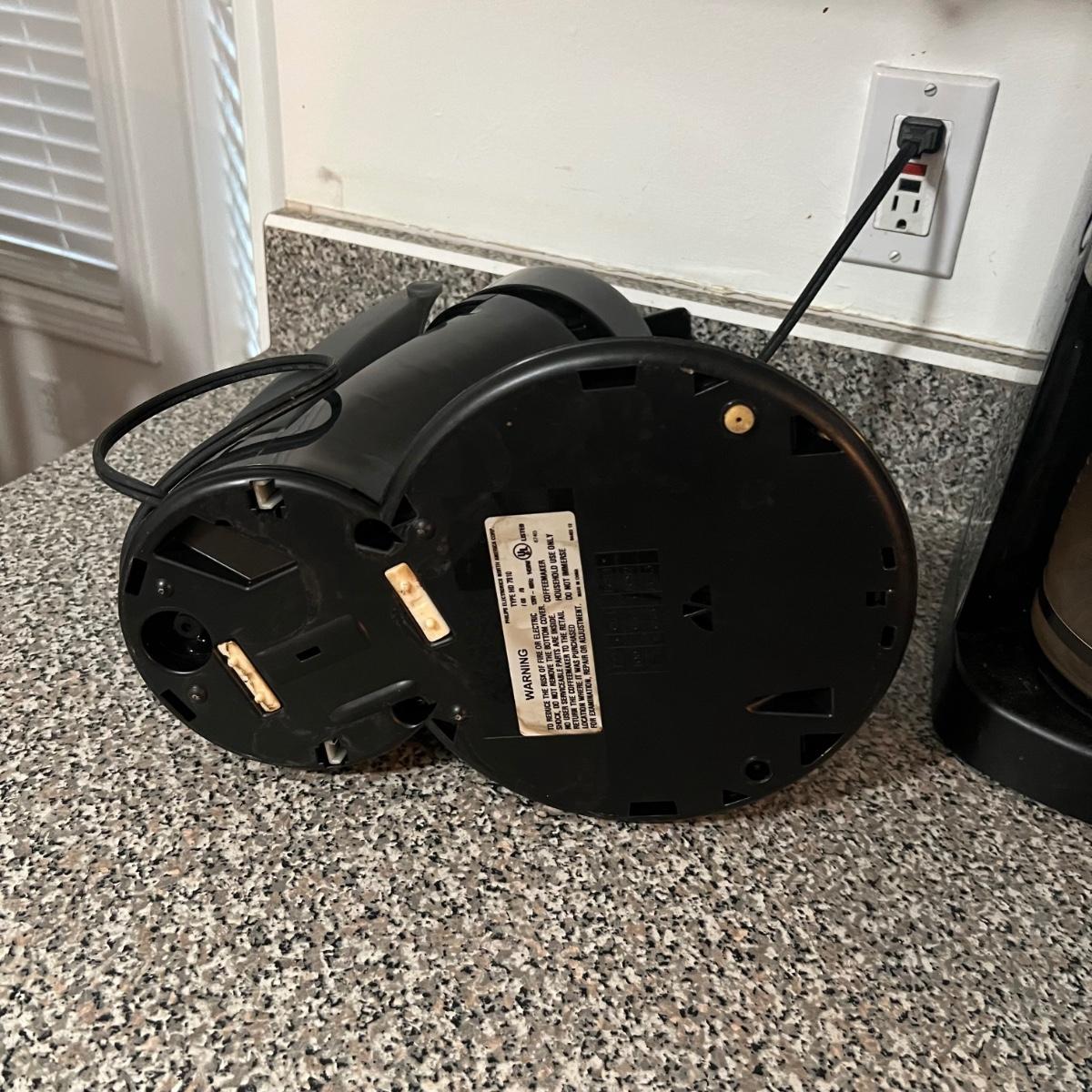 Cuisinart measures 8” x 9” x 15”H. Both have been used and need a bit of cleaning.