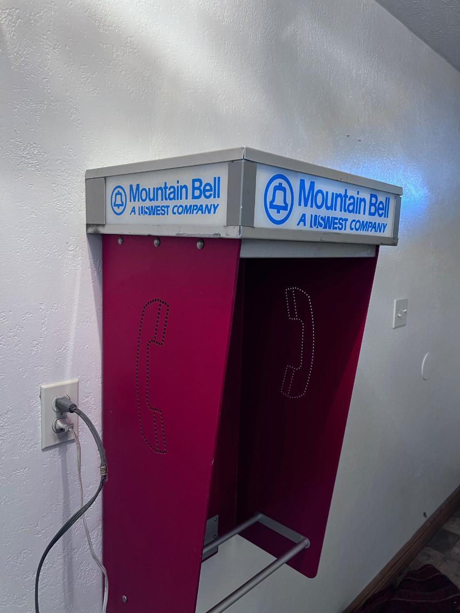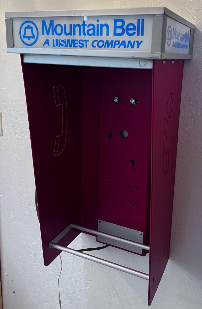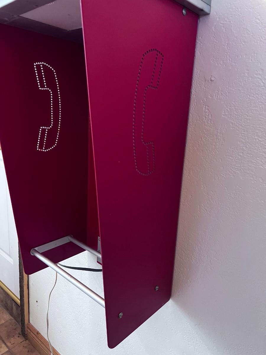 Red Wall Mounted phone booth. Measures 15 x 18 x 35" This is soooooo Neat!!!! BRING HELP TO MOVE OUT!!!!