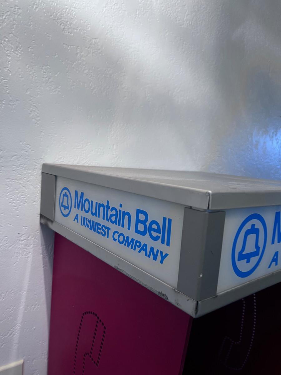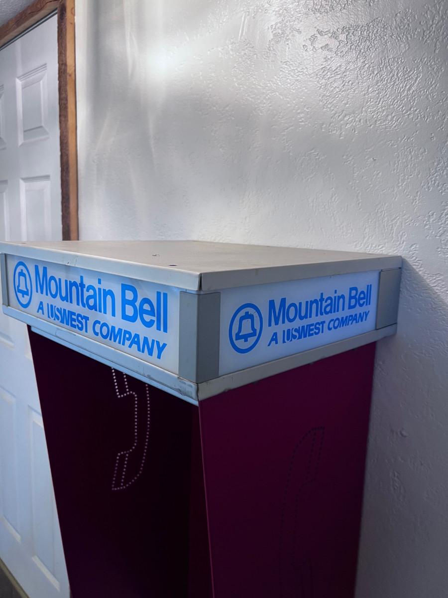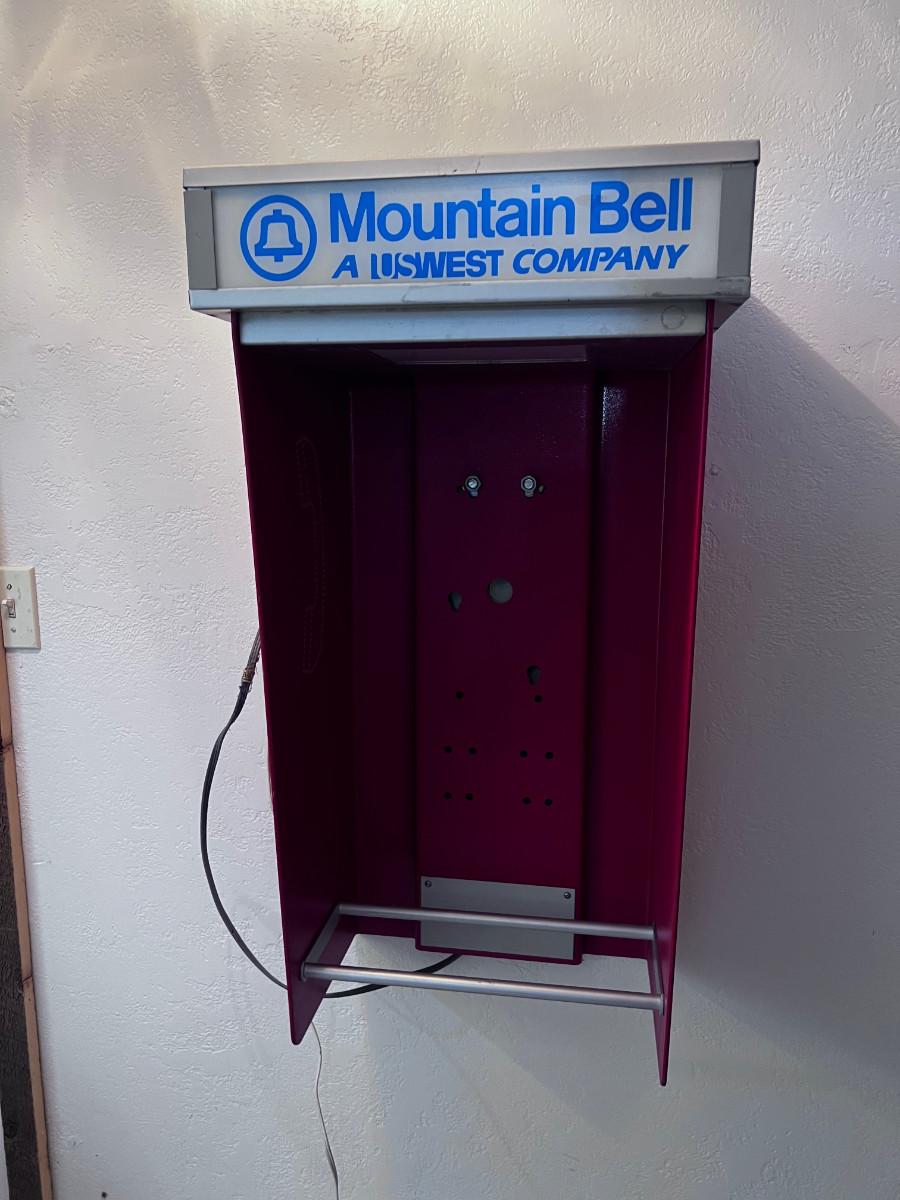 Red Wall Mounted phone booth. Measures 15 x 18 x 35" This is soooooo Neat!!!! BRING HELP TO MOVE OUT!!!!