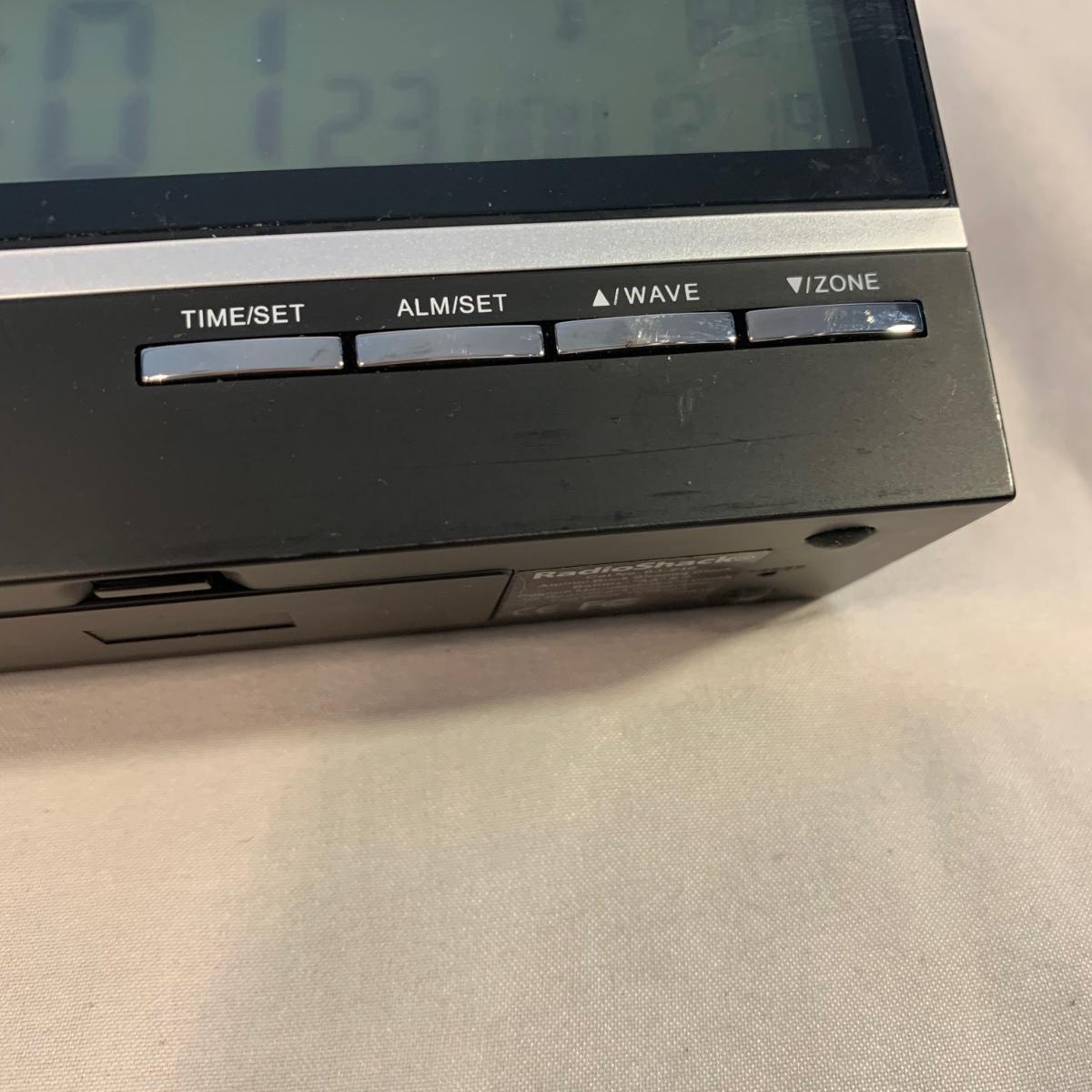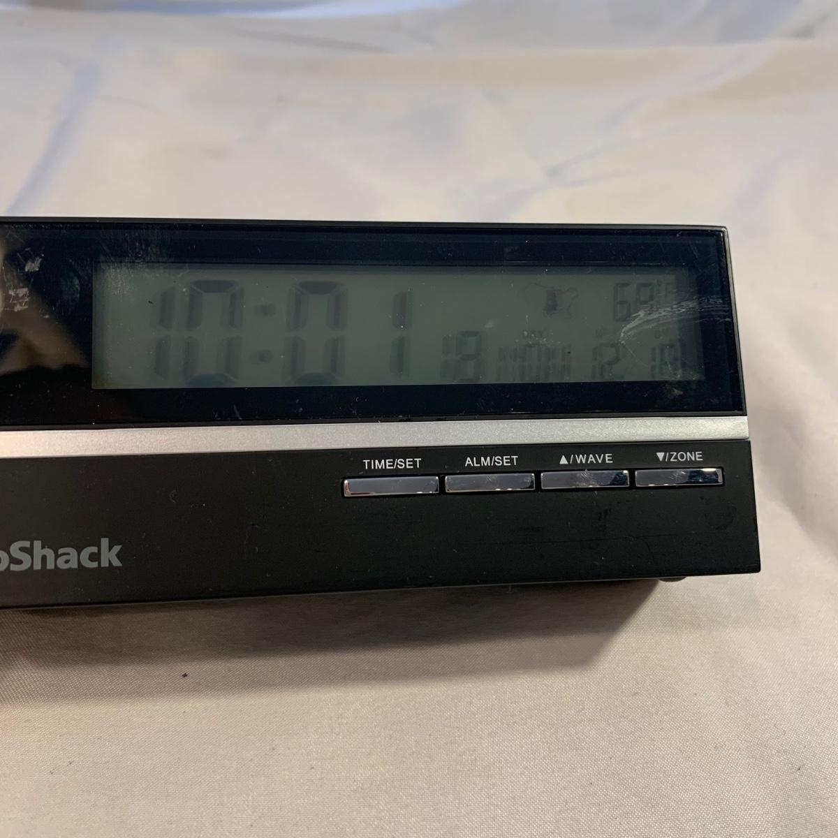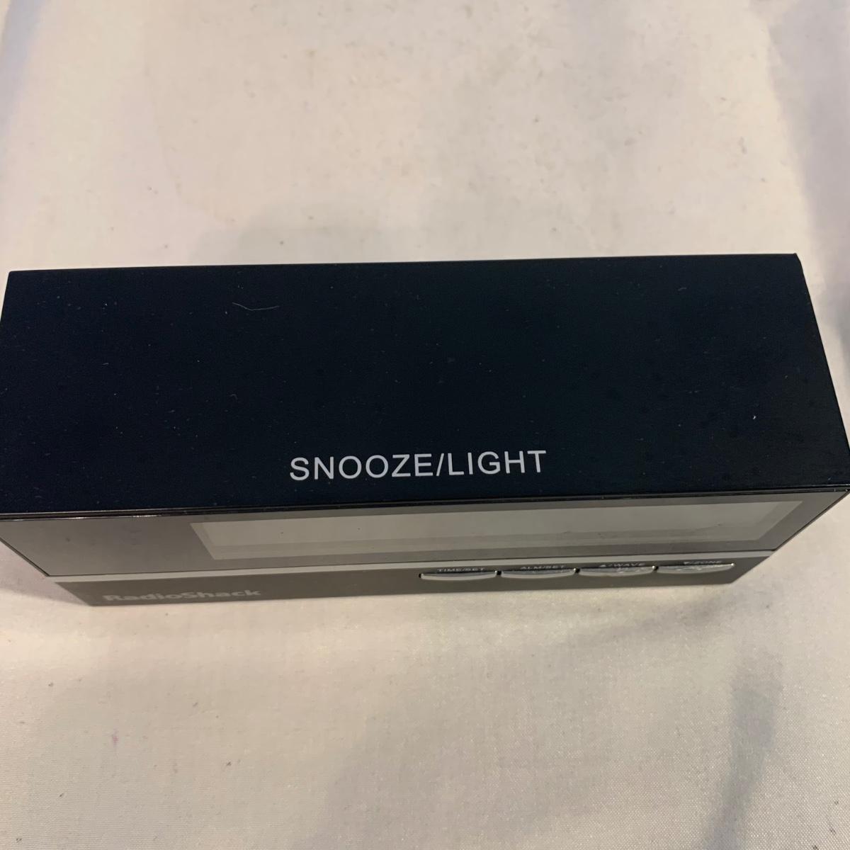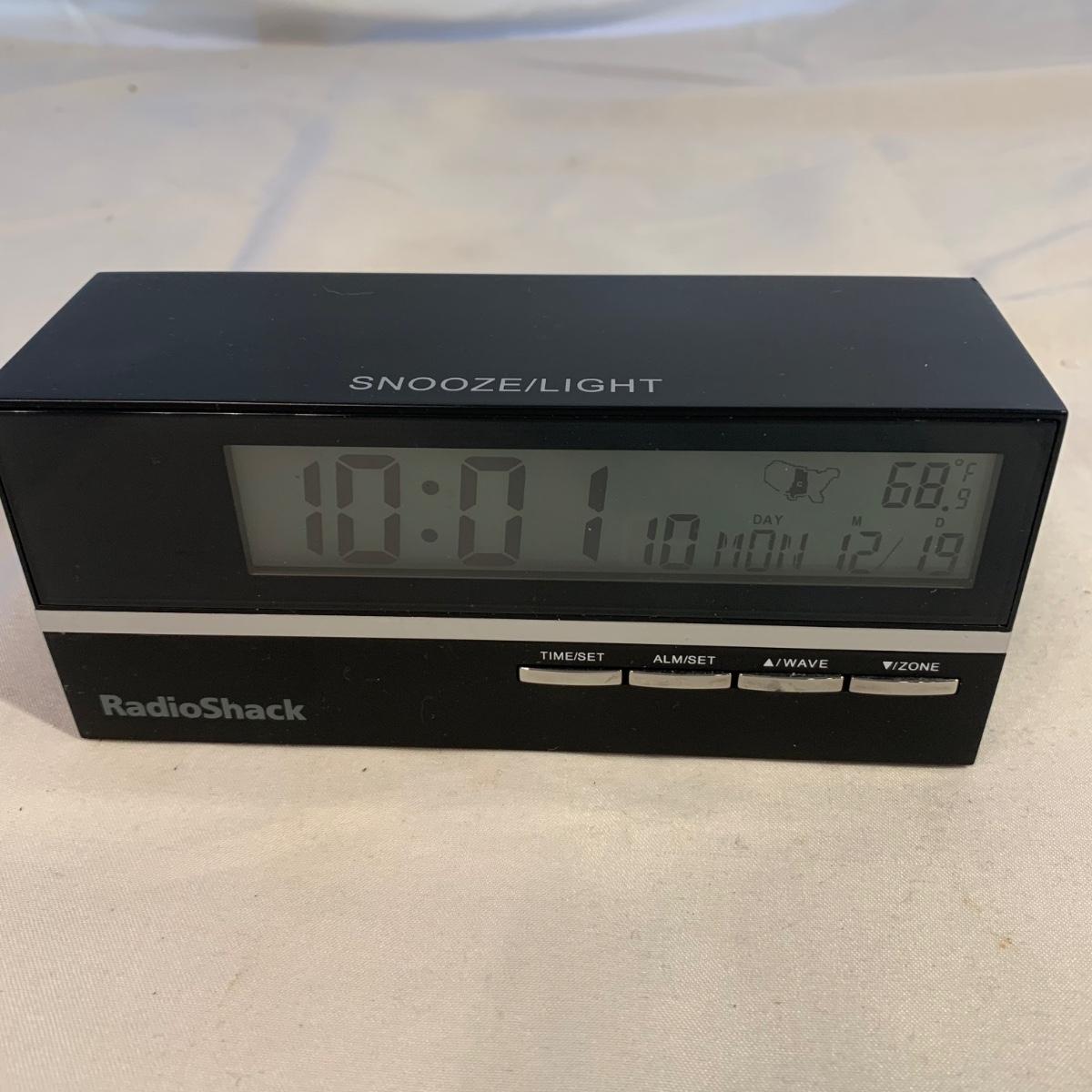 This lot includes one RadioShack Atomic Brick Shaped Clock, one Sony wireless speaker, a pair of AirPods without the charger, a Bluetooth black web converter box, and an unlabelled speaker. The RadioShack alarm clock has some small scuffs from use but appears to be working fine (see photos). The AirPods have no charging case but can confirm they charge when put into a case. Speakers could not be tested. The largest item (the RadioShack clock) measures about 6in x 2in x 3in. Shipping available.
