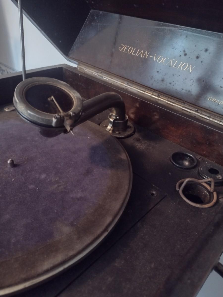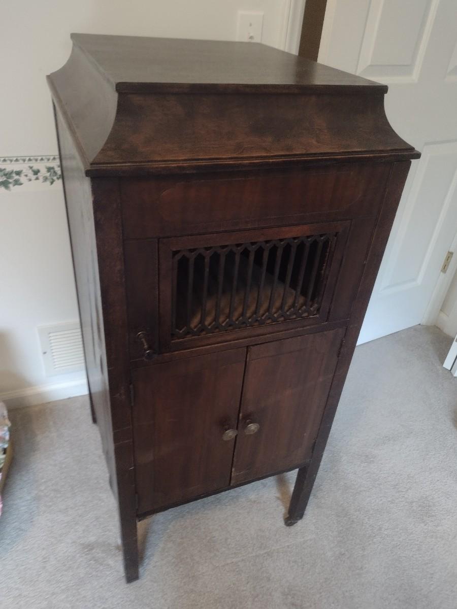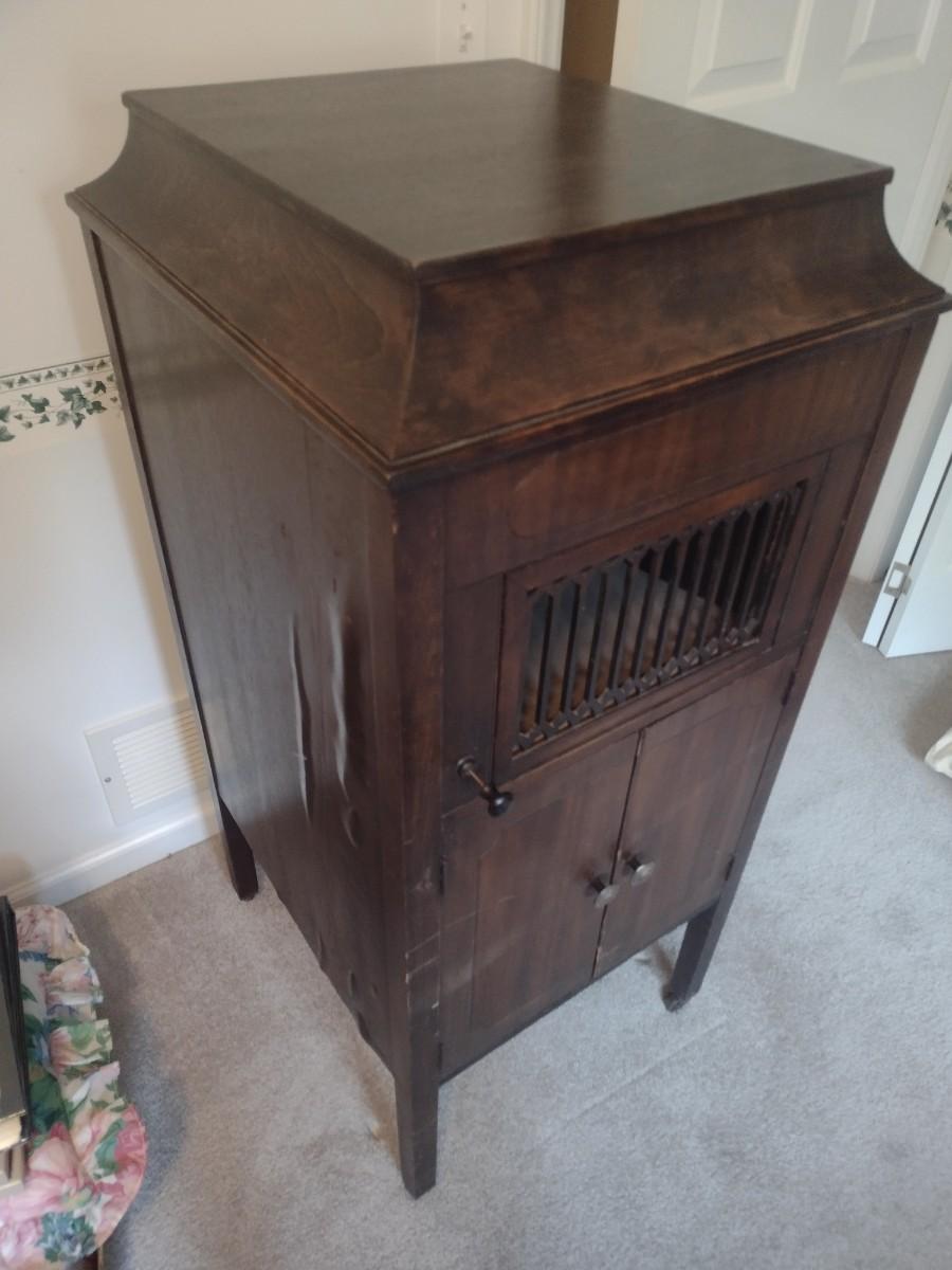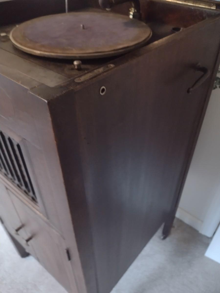 Antique Aeolian-Vocalion Graduola Phonograph cranks up fine. Record platter spins. Could not test sound. Main level item