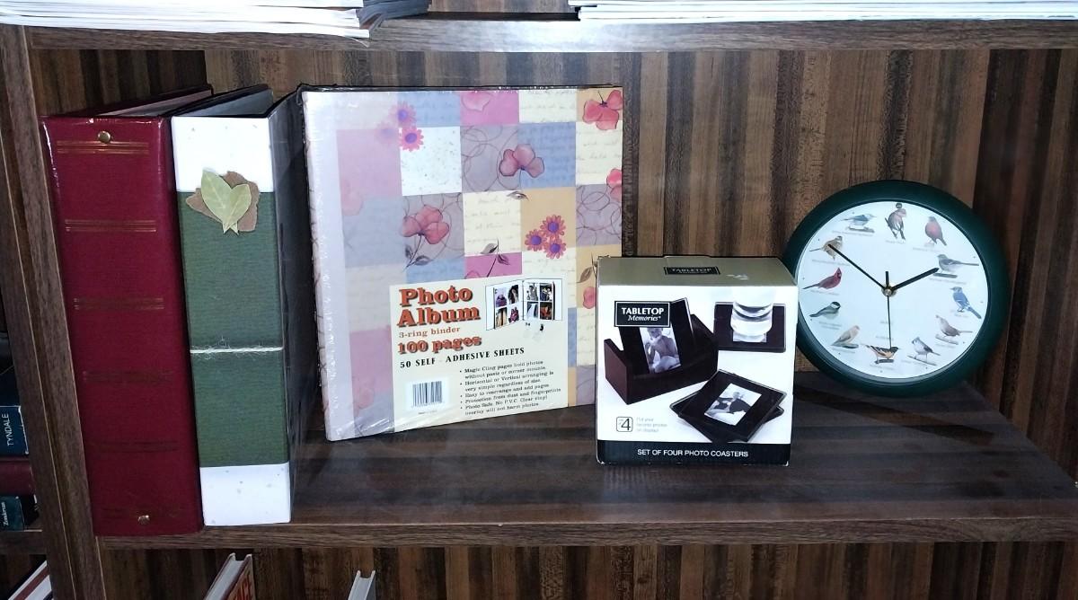 PHOTO ALBUMS AND COASTERS, BIRD WALL CLOCK