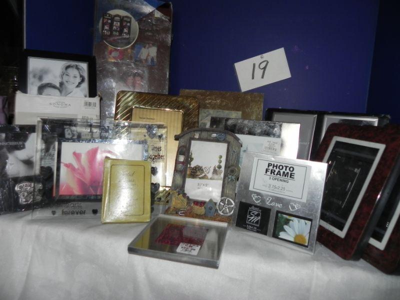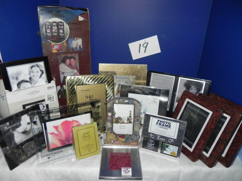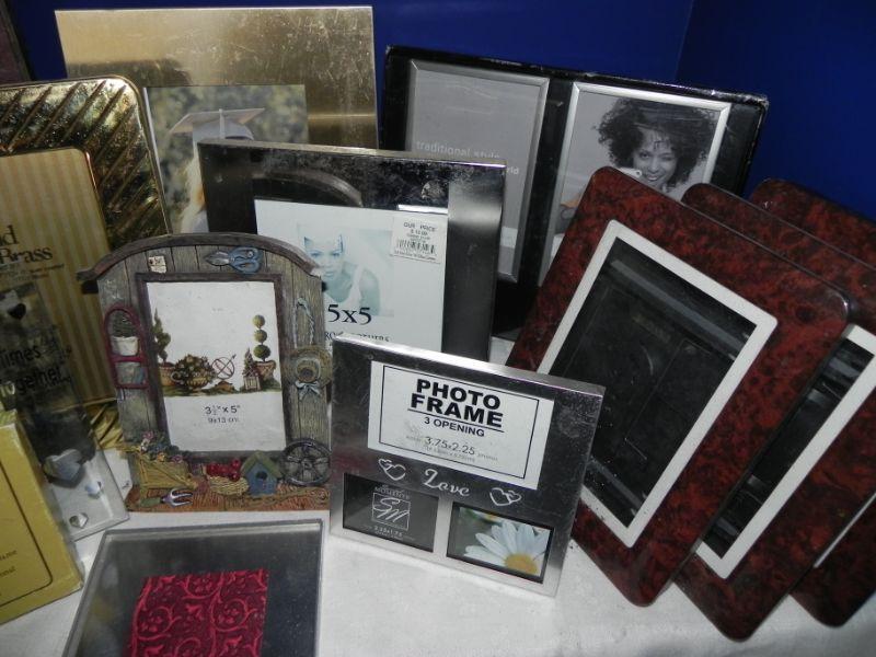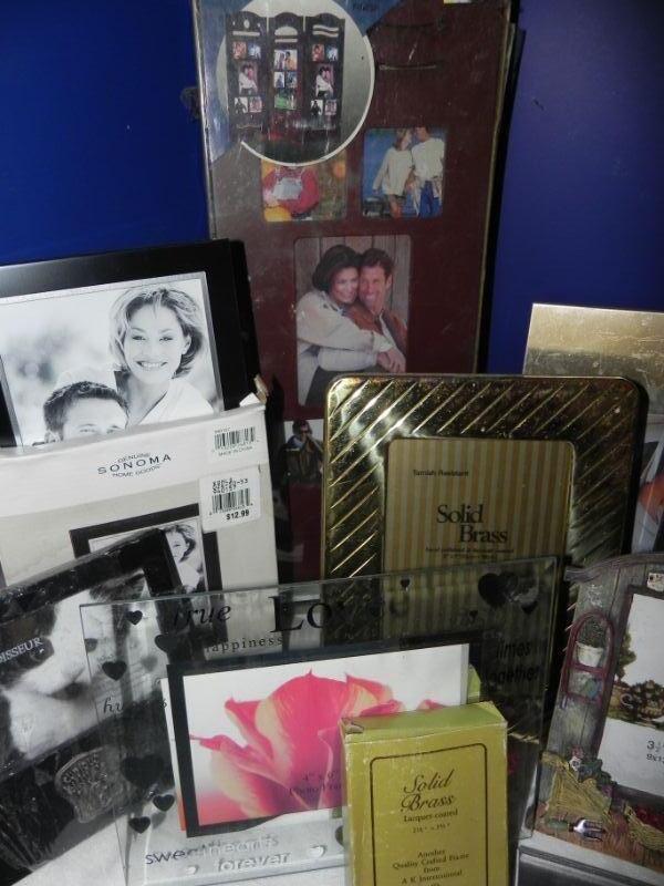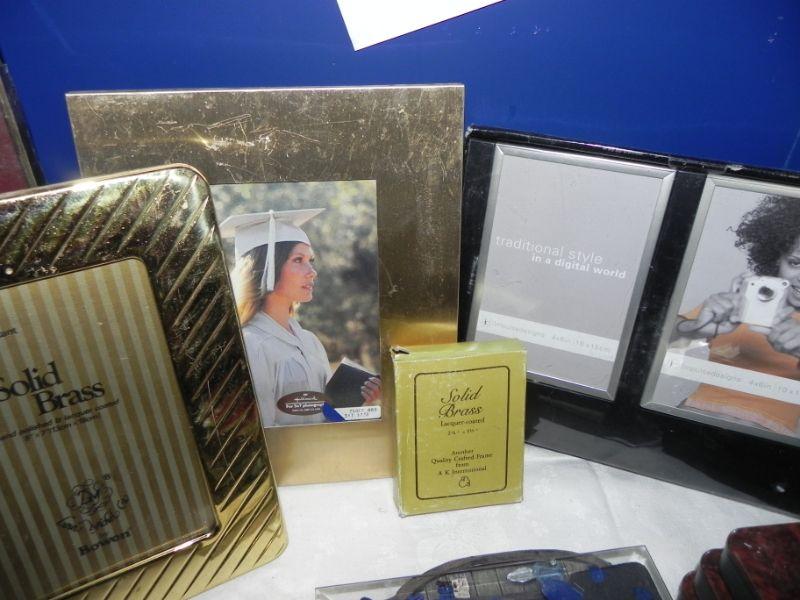 VERY NICE LOT OF FRAMES SOME NEW IN BOX, BRASS-WOOD-GLASS-LIGHT UP-SILVER TONE-GOLD TONE-BLACK KEEP FOR YOURSELF OR MAKES GREAT GIFTS