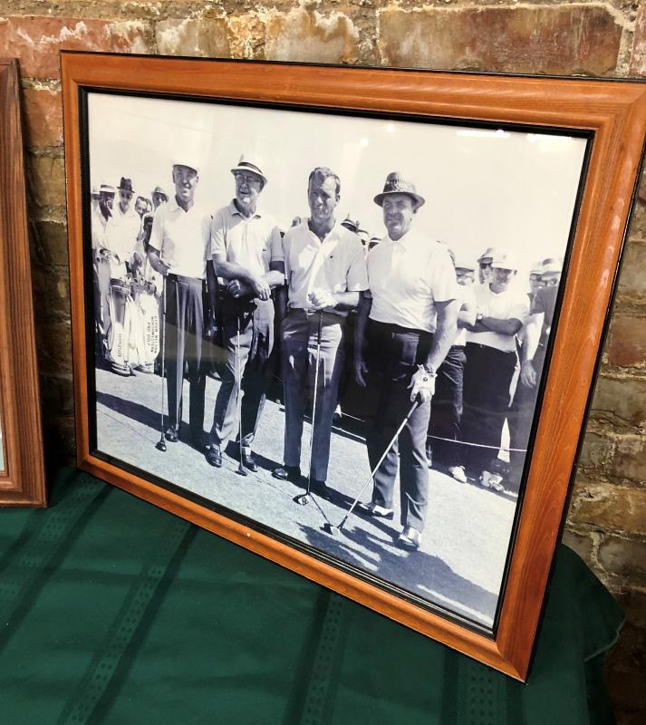 Two photos of golfing legends including Jack Nicklaus and Tiger Woods....22" x 19"...