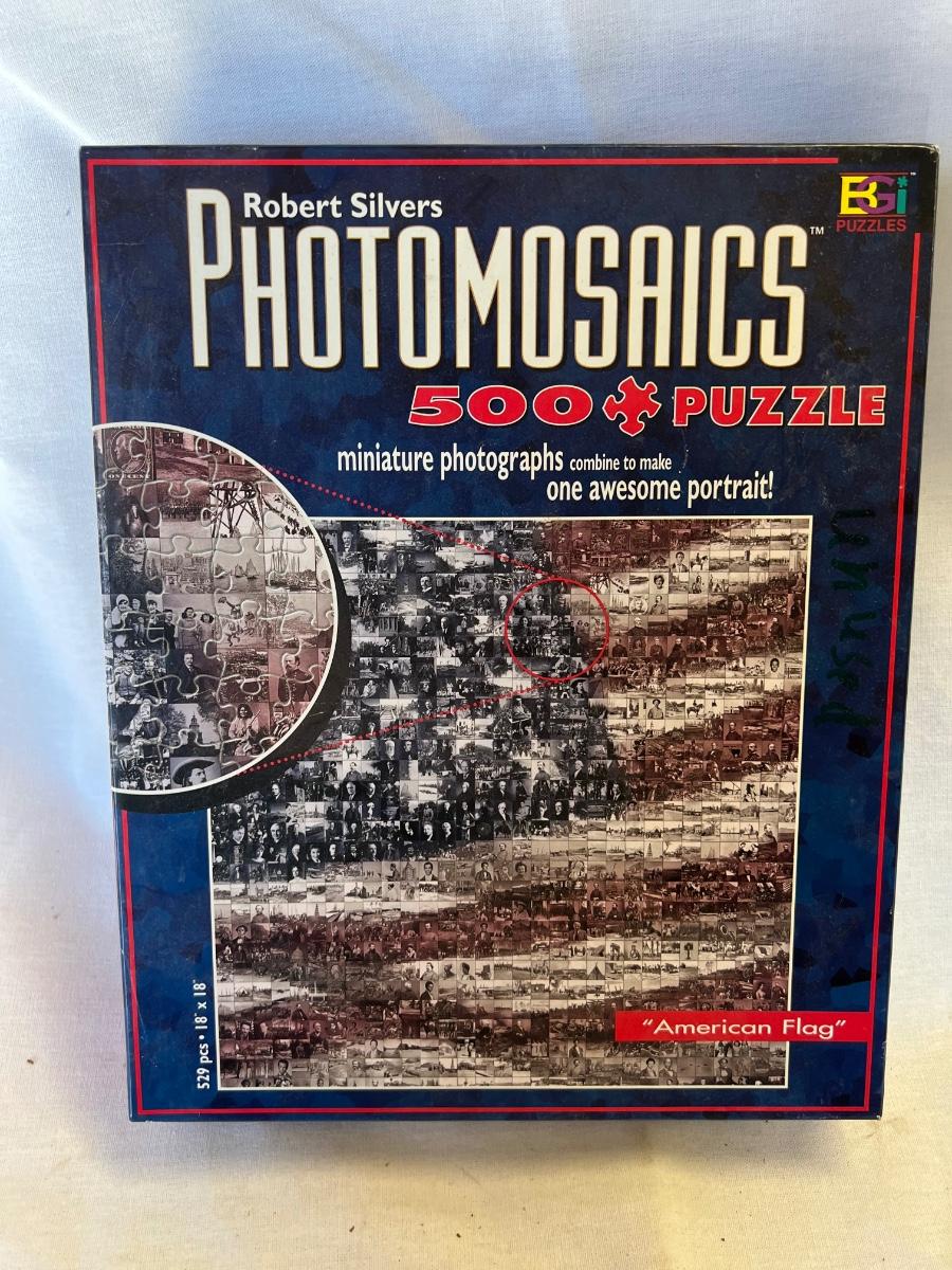 500 piece patriotic puzzle with unique photo design. Appears to contain all 529 pieces, good condition.