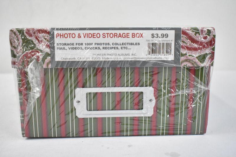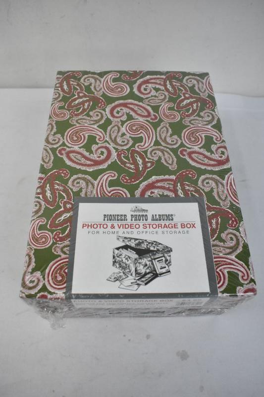 Photo & Video Storage Box, Green with Red Paisleys - New