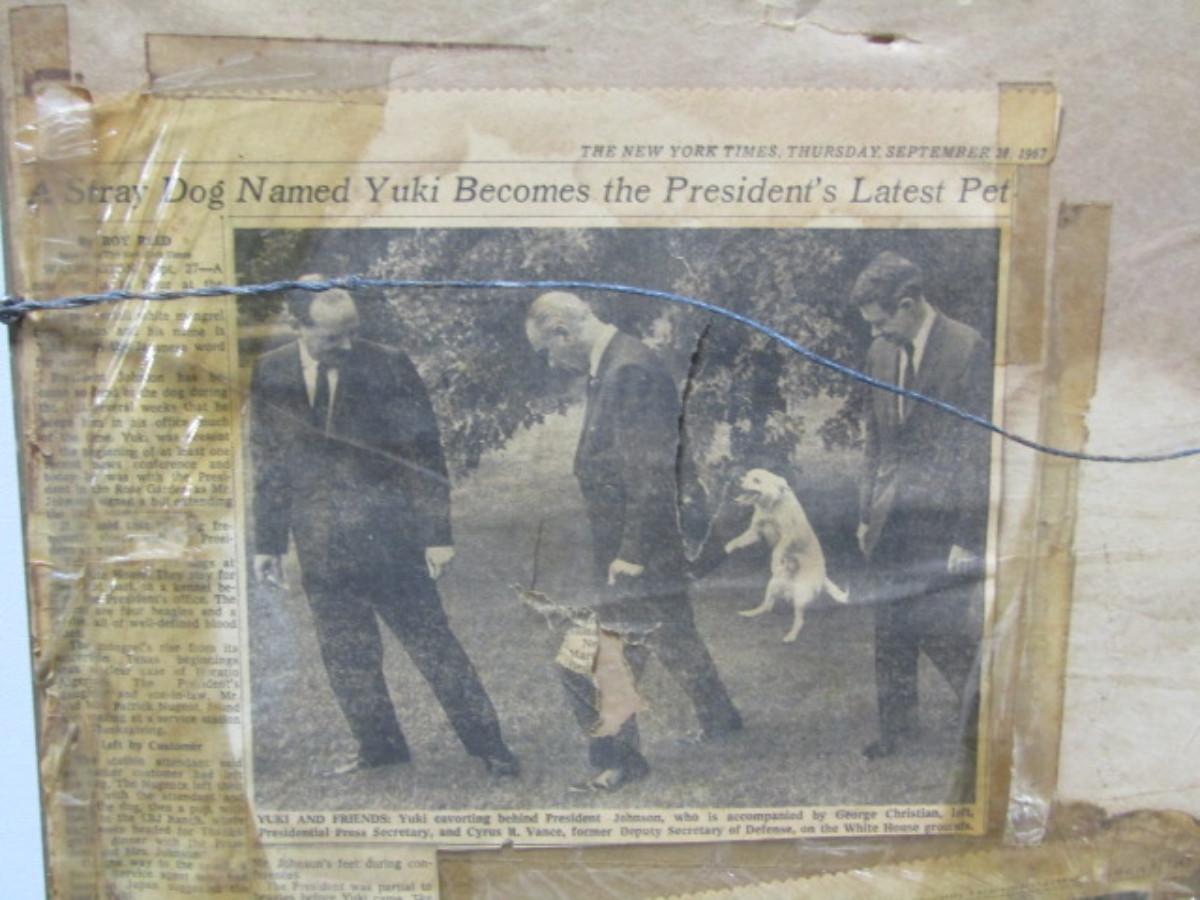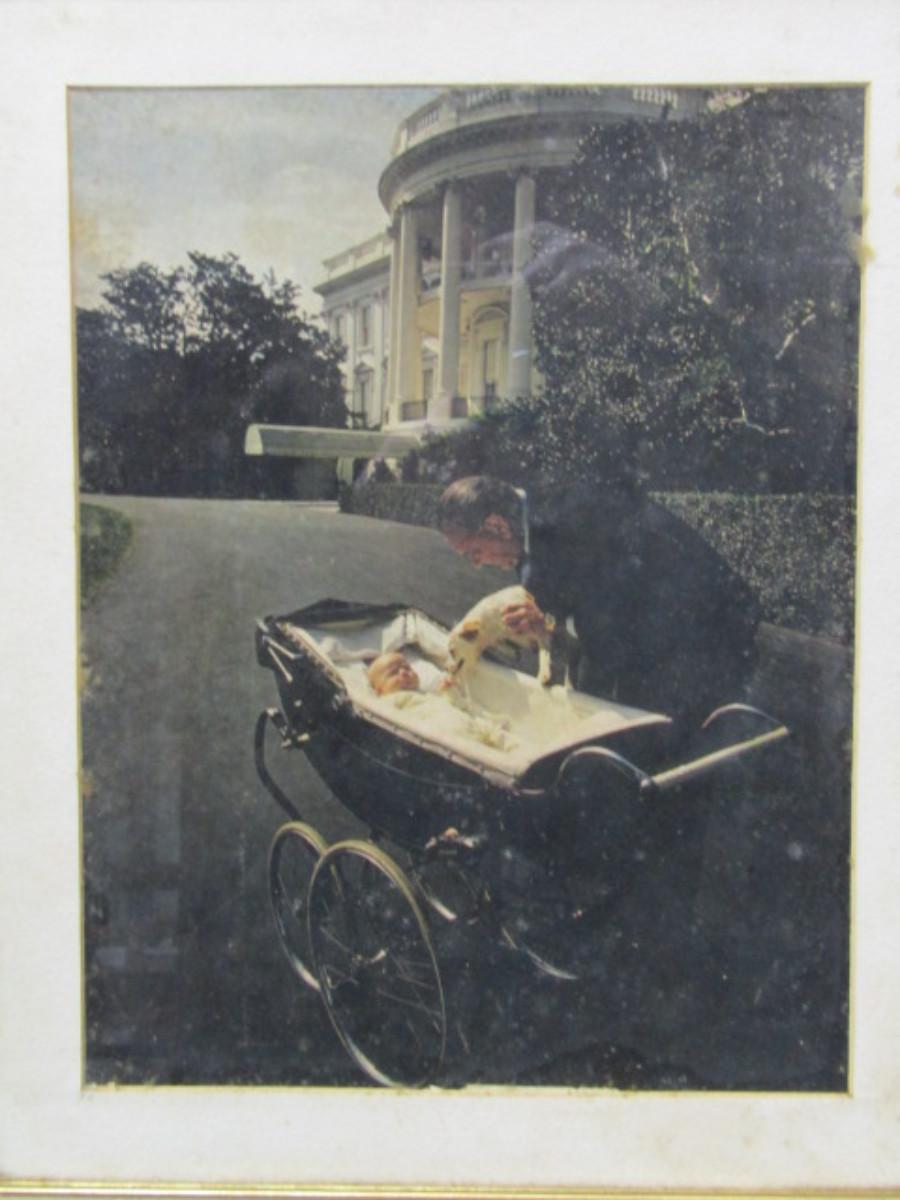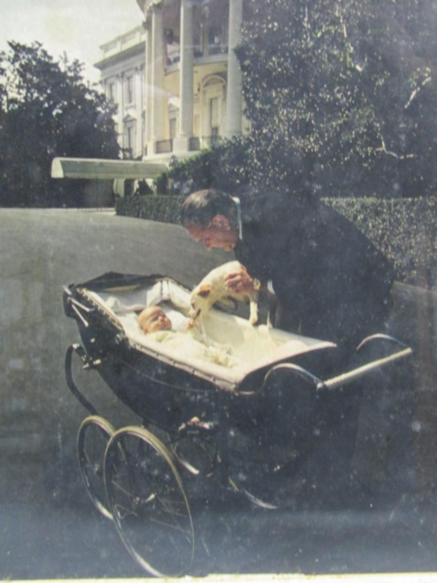 Photograph of Lyndon B. Johnson with Yuki (The Dog), Leaning Over Grandson (Patrick)