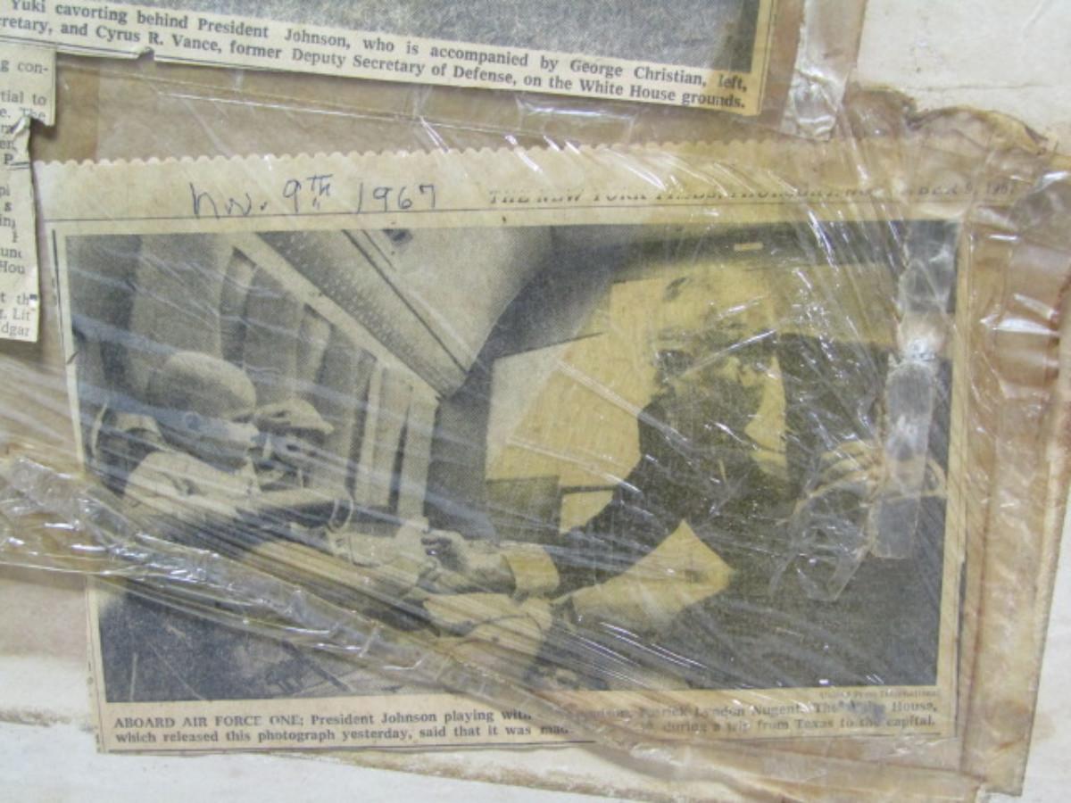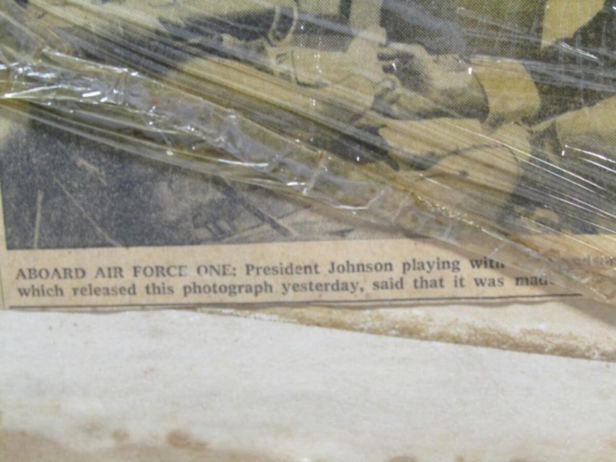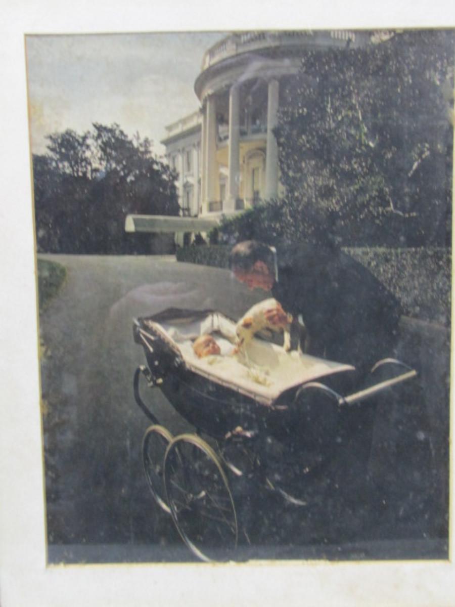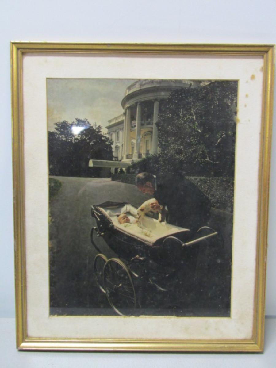 Photograph of Lyndon B. Johnson with Yuki (The Dog), Leaning Over Grandson (Patrick)