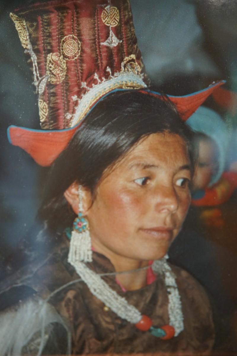 19 1/2" BY 21" WOODEN FRAMED PHOTOGRAPH OF YOUNG GIRL IN ETHNIC COSTUME.