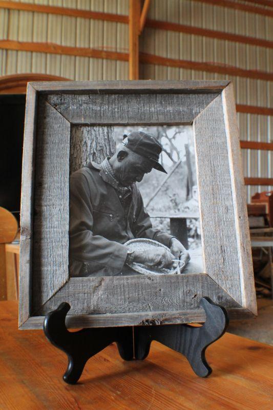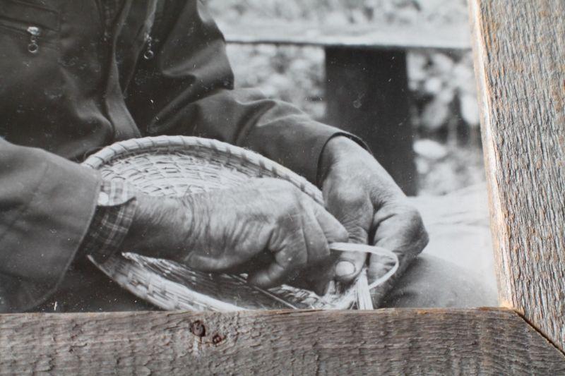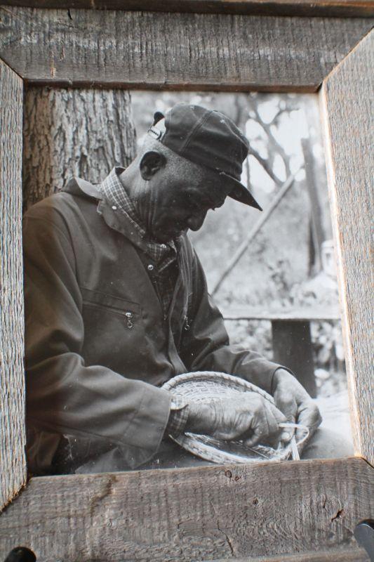 Lot #99: Photograph Print of Man Weaving Basket in Rustic Frame