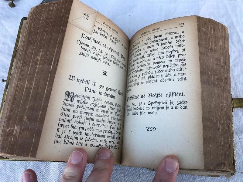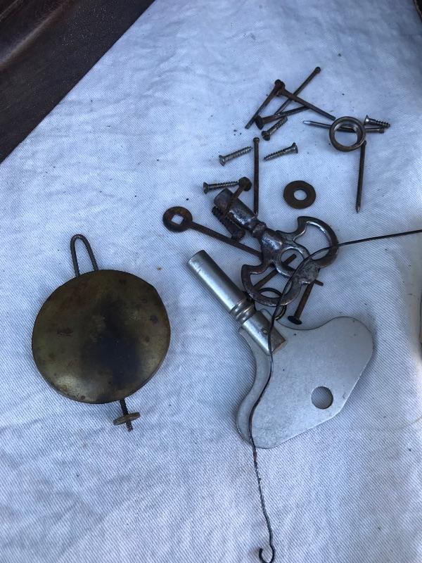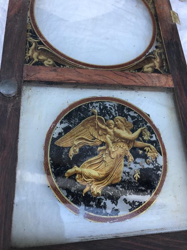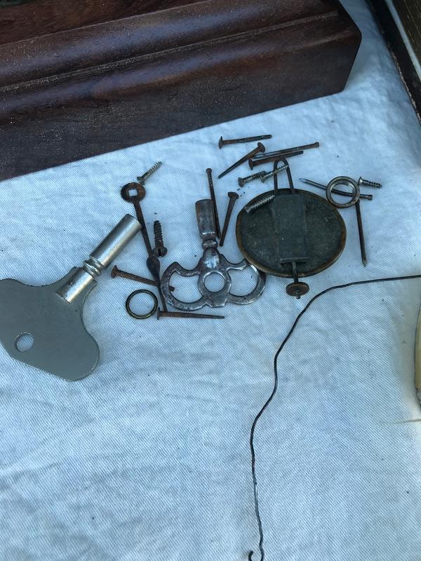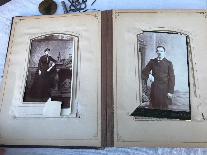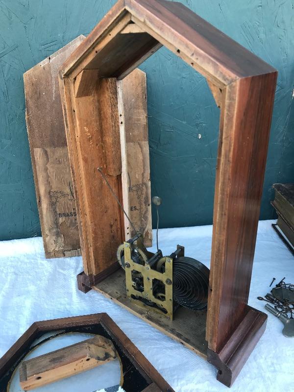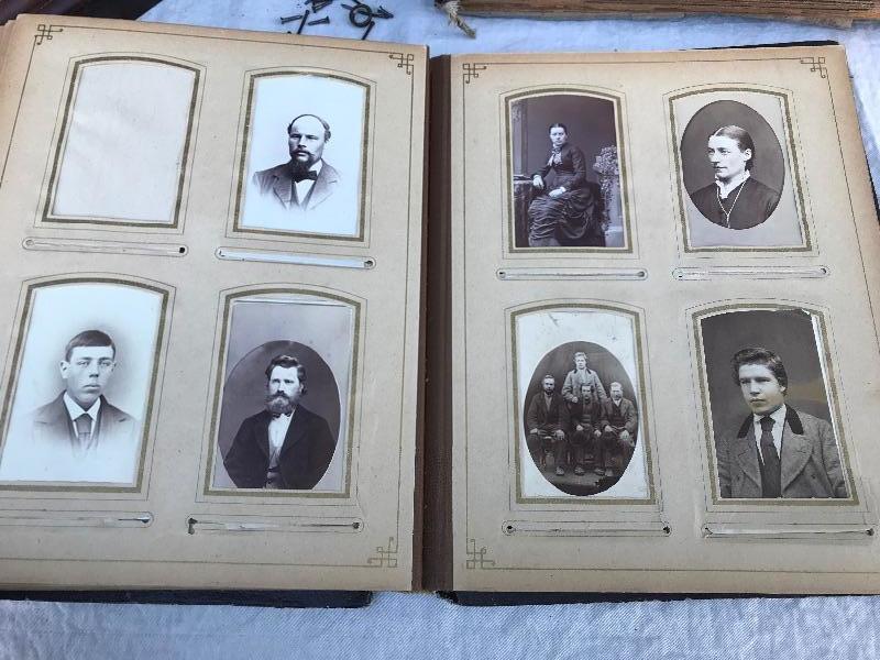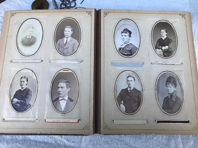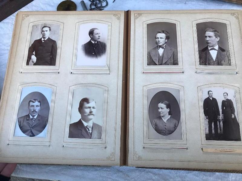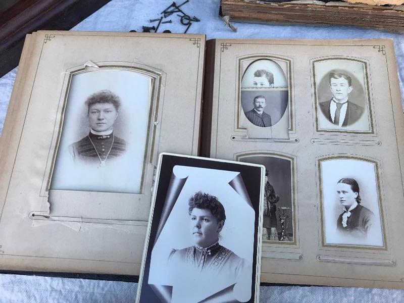 Gorgeous set of photo albums! Carved leather with gold embossed details. All photos are in great condition! Dimensions are 9" x 2.5" x 11". The clock is beautiful and is in pieces. If you are handy, it could be a fun project to put back together or repurpose the parts for an art project. Dimensions are 9.75" x 3.75" x 17". Antique Bible has amazing details! Dimensions are 3.25" x 2.5" x 5.75".
