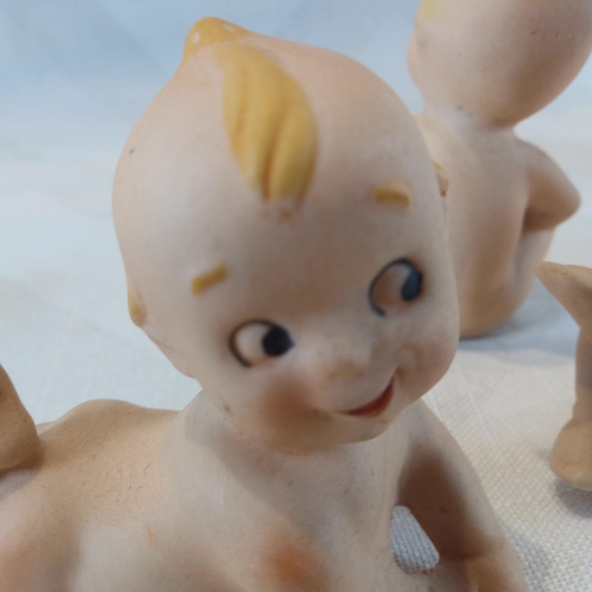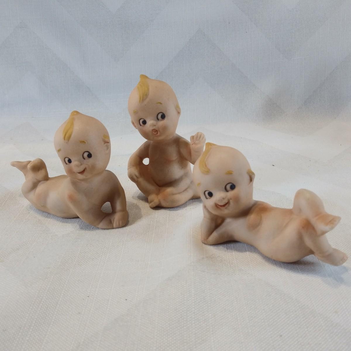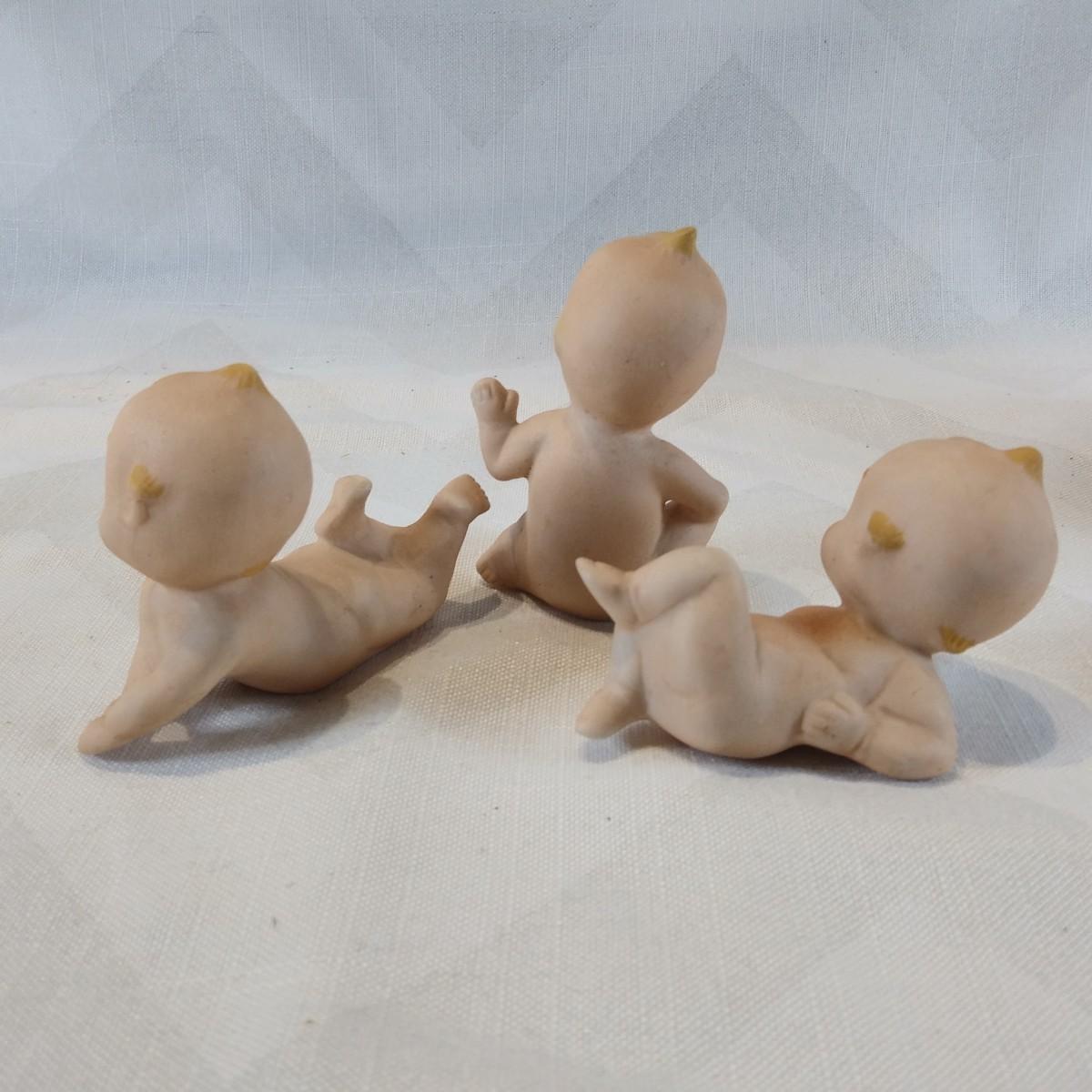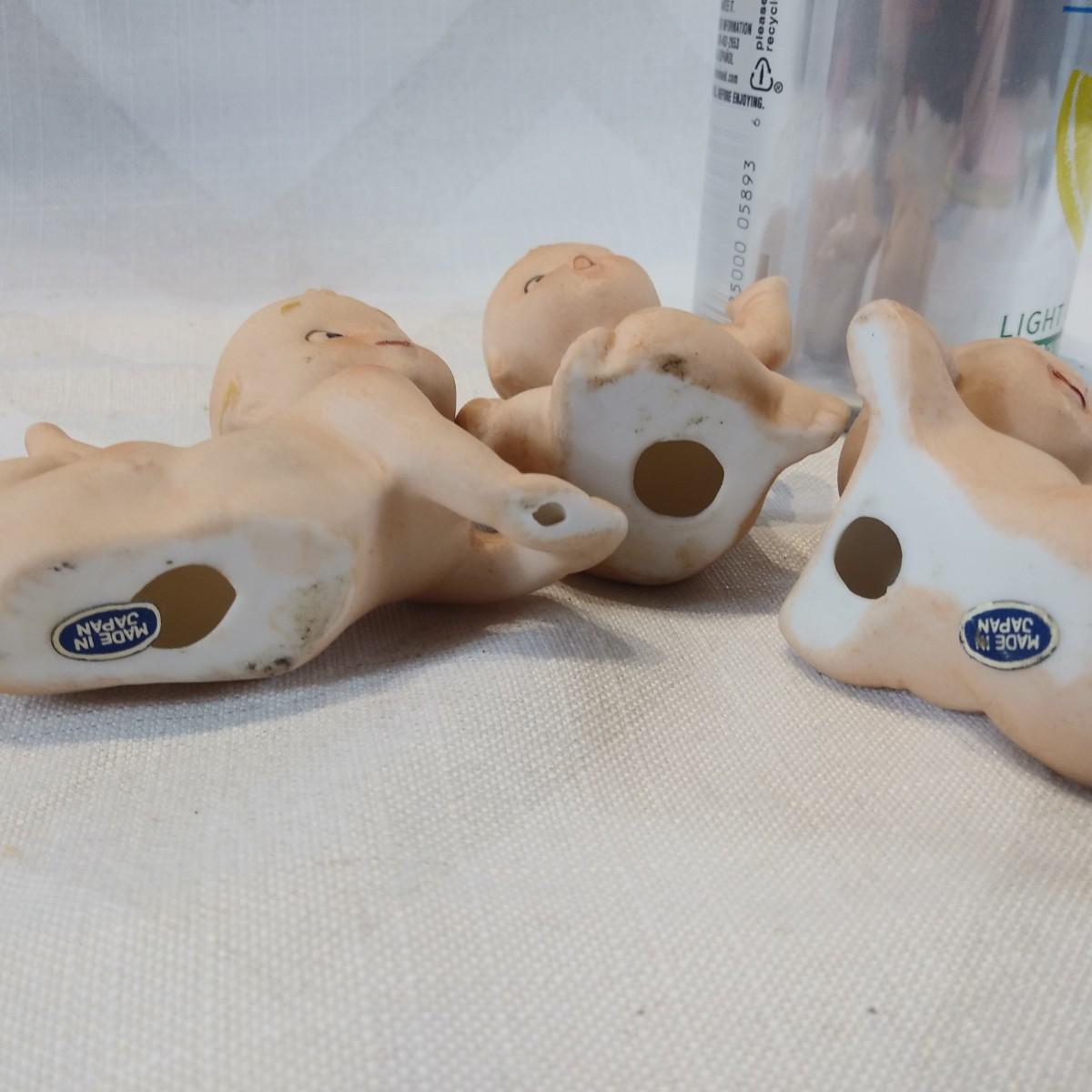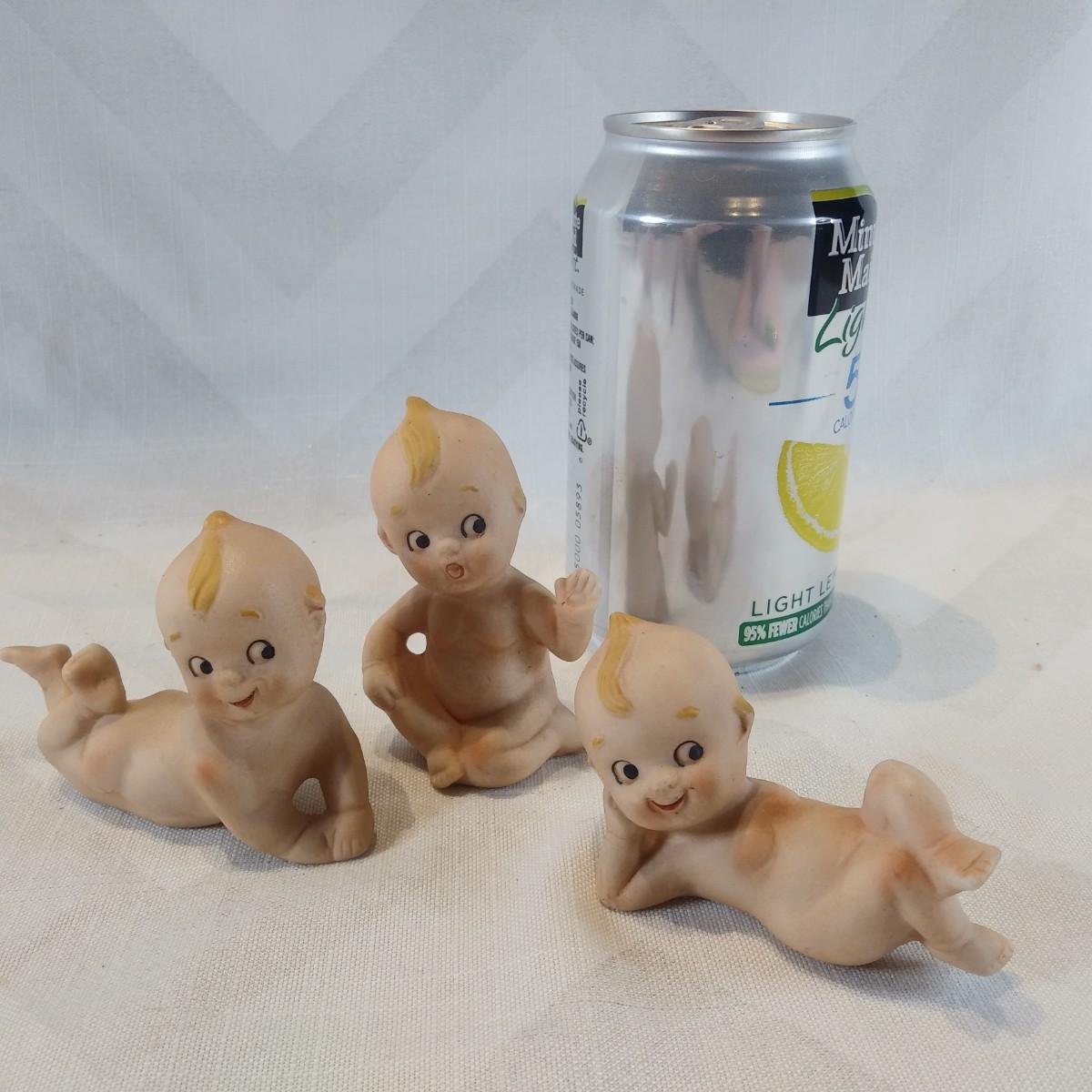 This auction lot is for Piano Babies. These three little guys are in very good condition. Two still have their sticker "Made in Japan" . They are small but have big personalities. Don't have a piano - they will look great on your mantle or shelf, too.