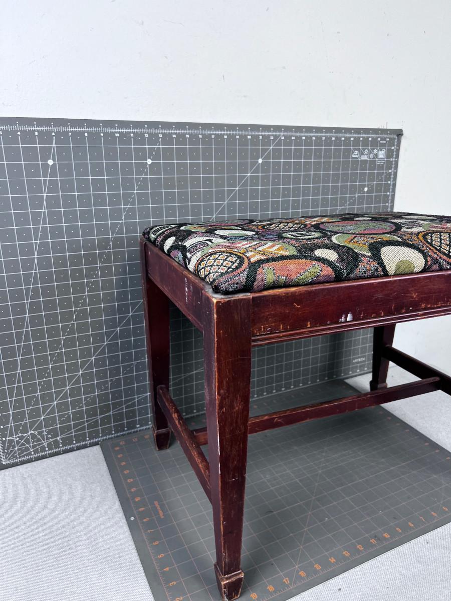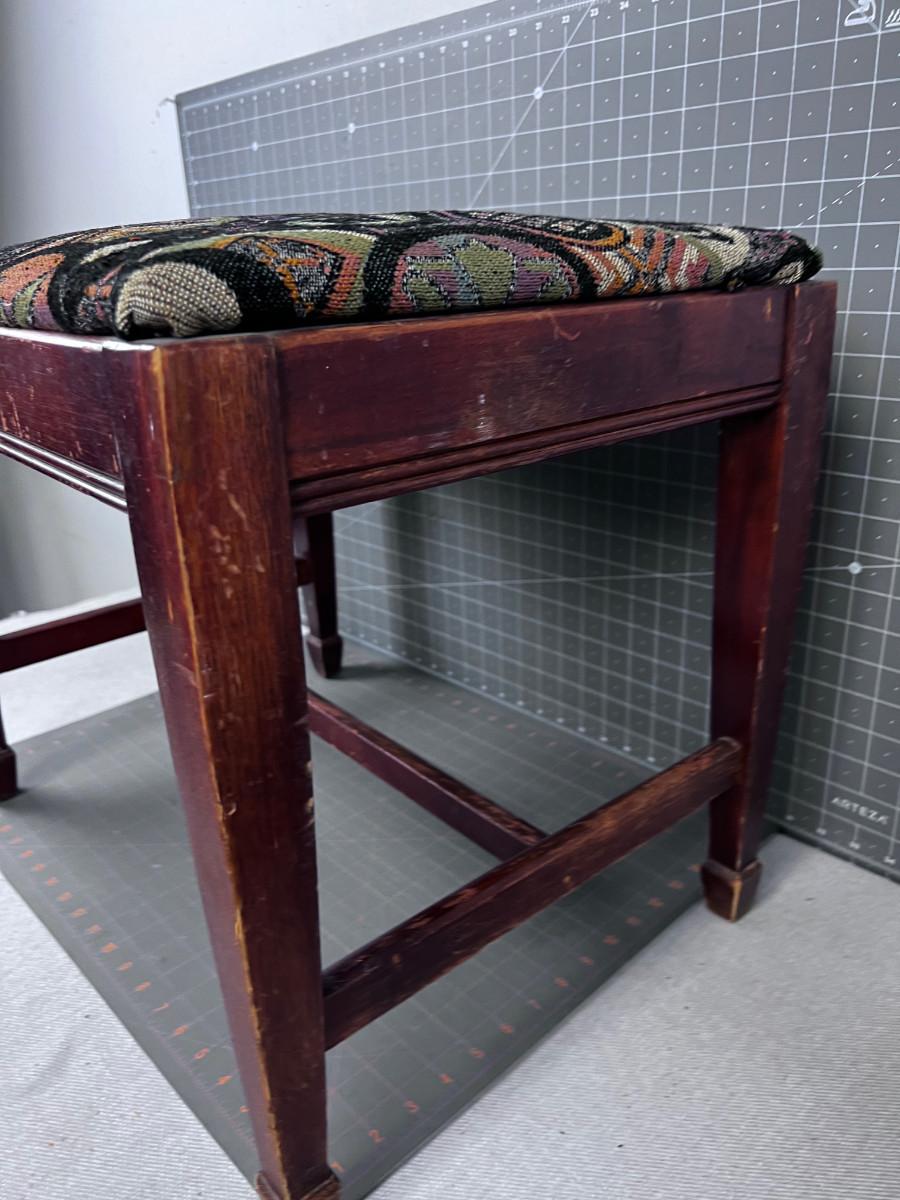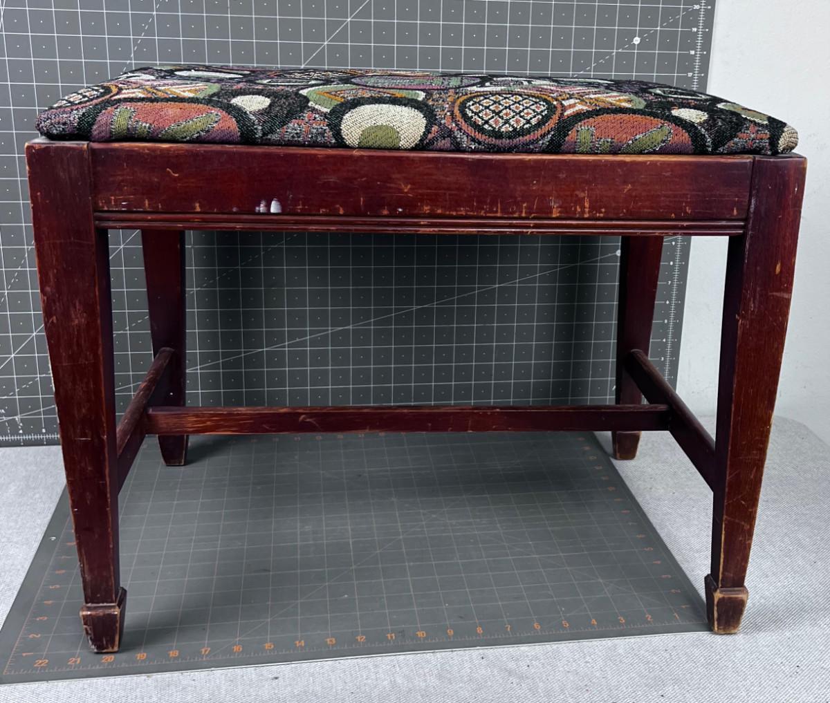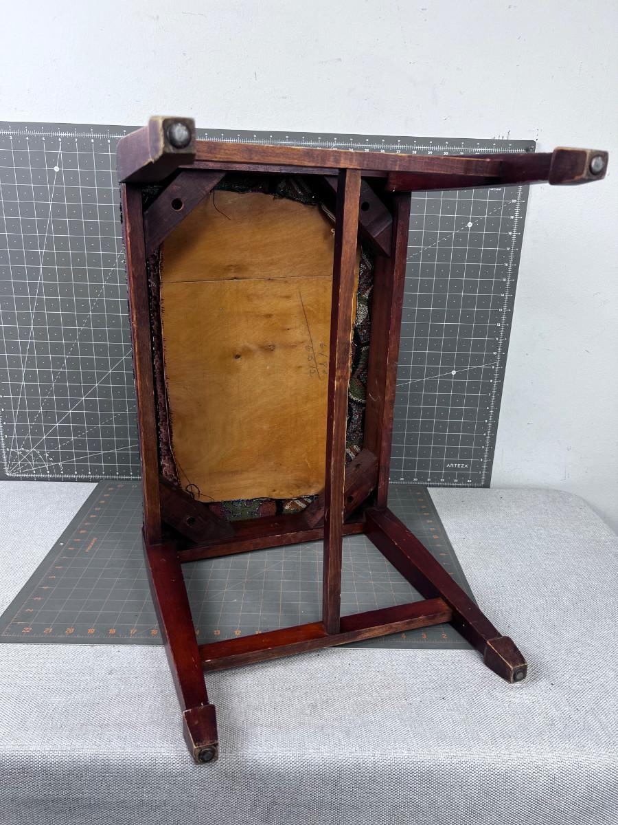 Used. Shows Wear. It has been recovered but not stained. 22 x 15 x 18"