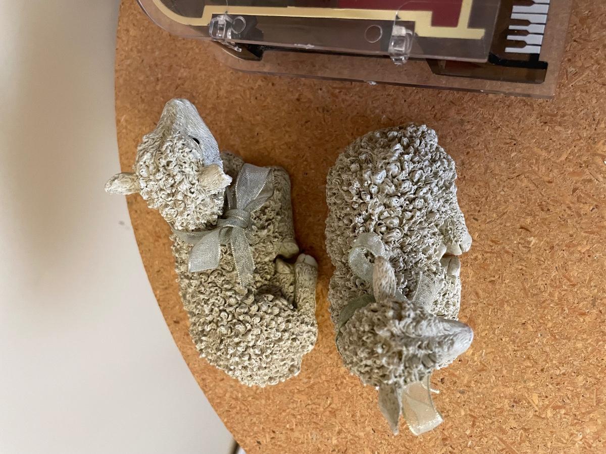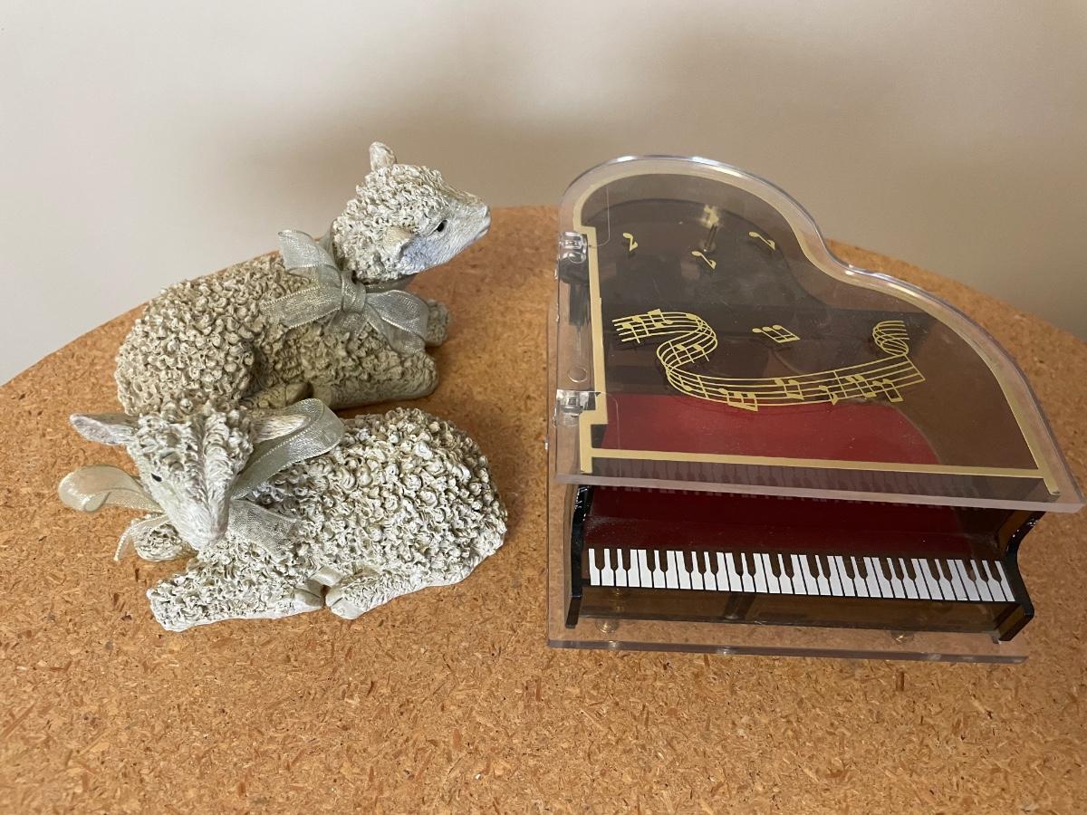 Piano music box and two decorative sheep