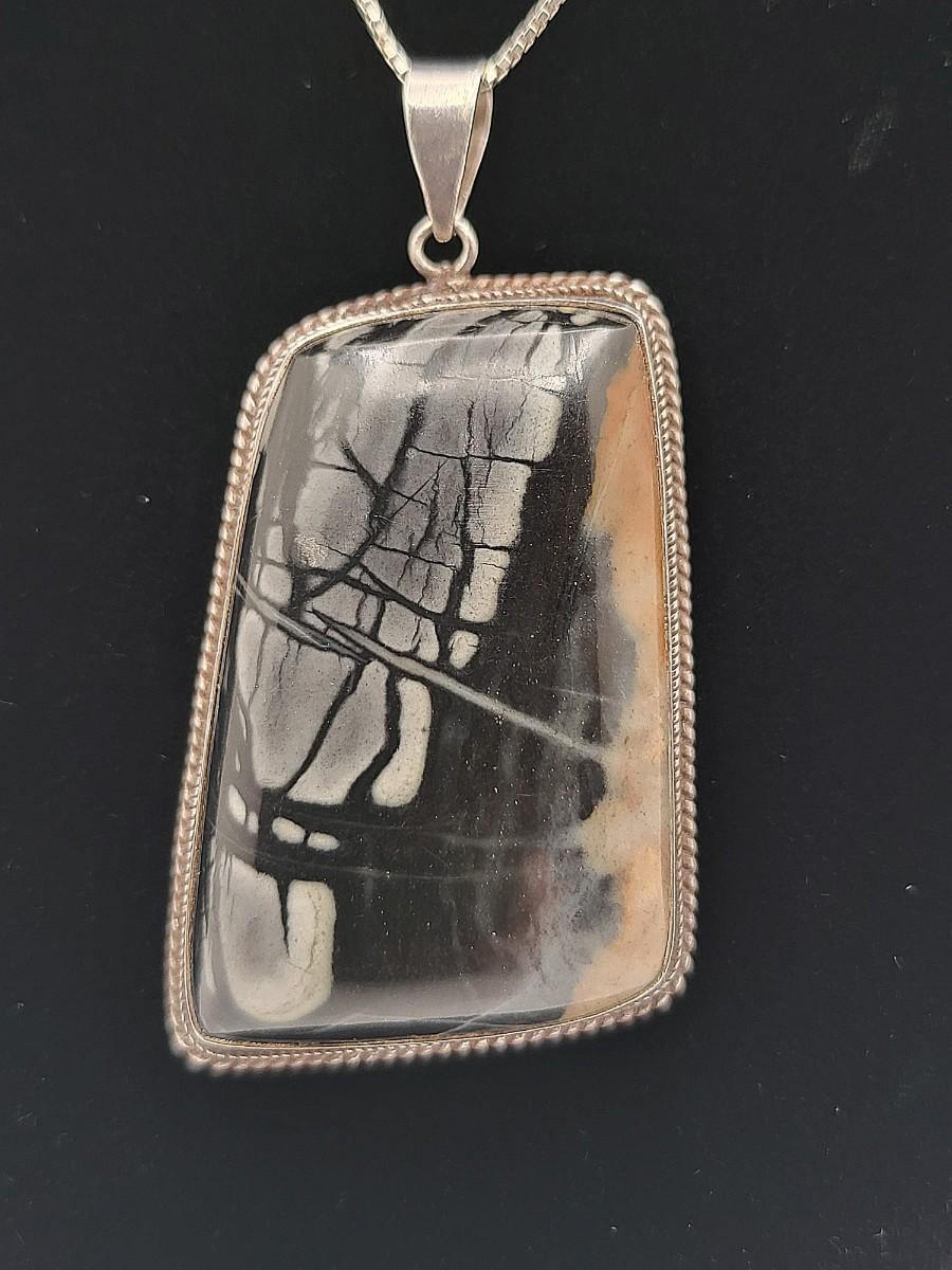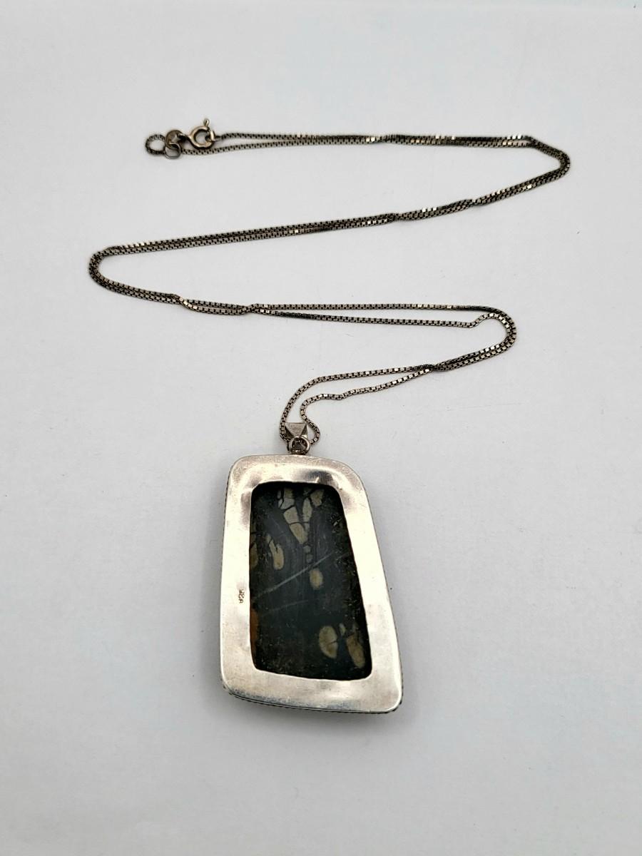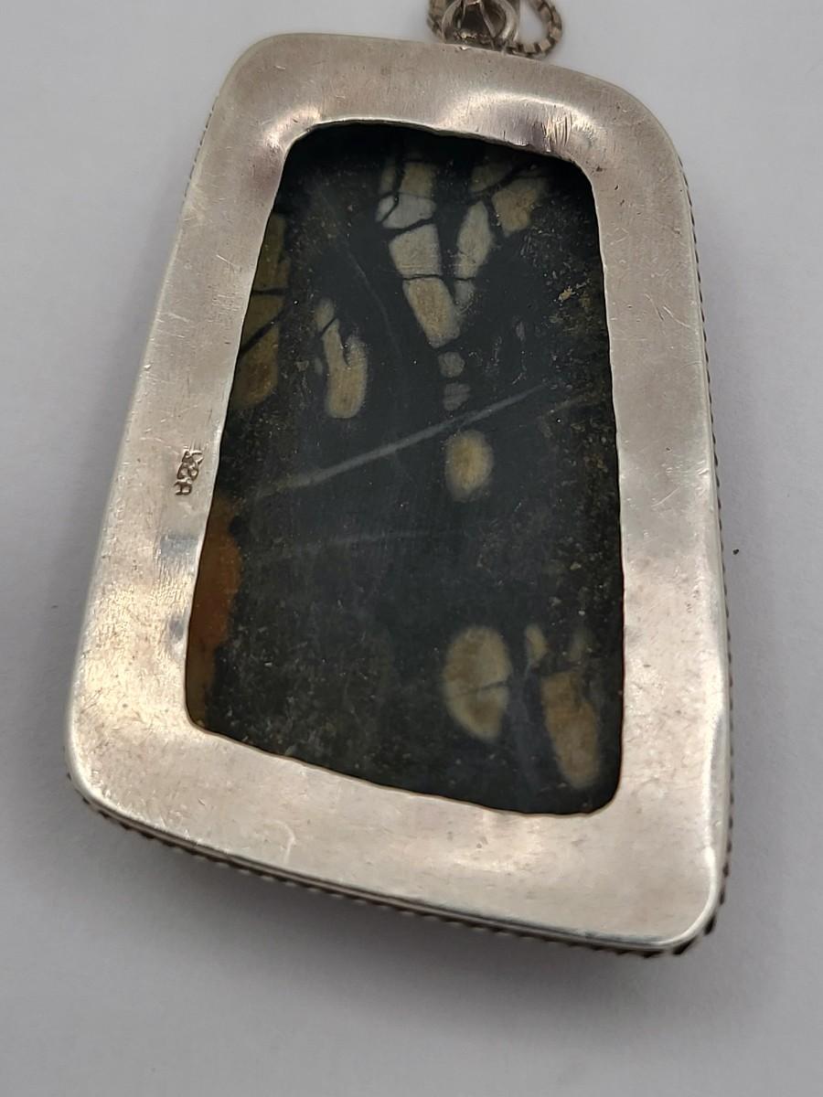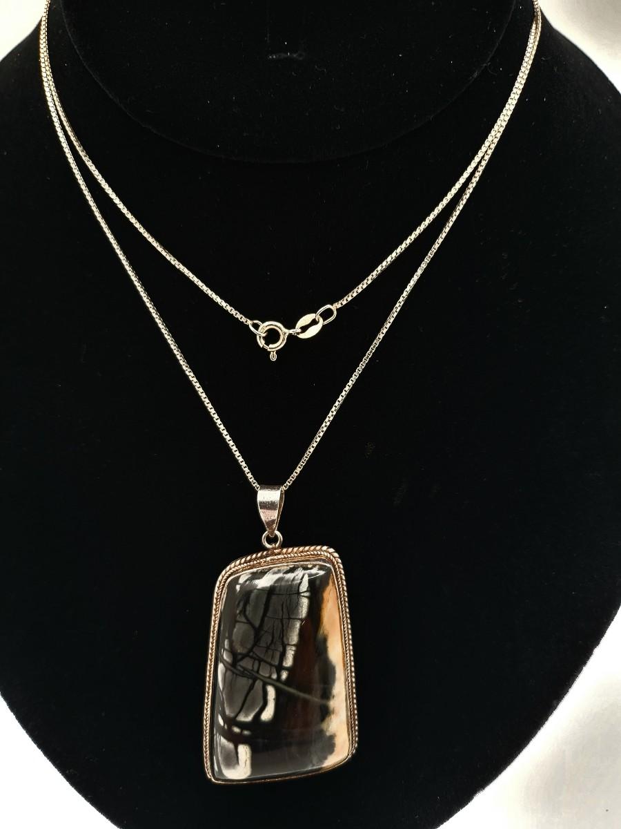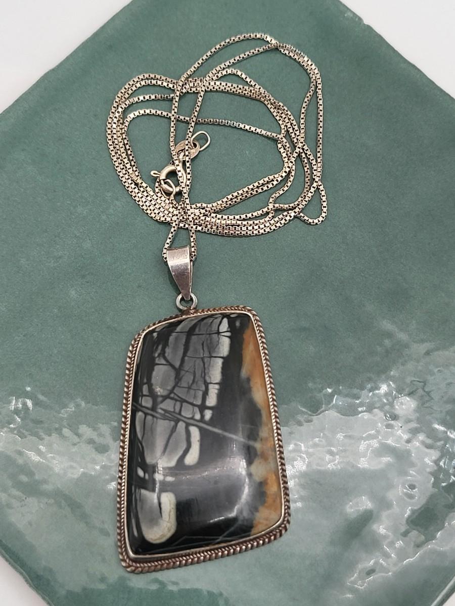 Picasso Jasper stone, 925 setting and 29" box chain. 22.8gr