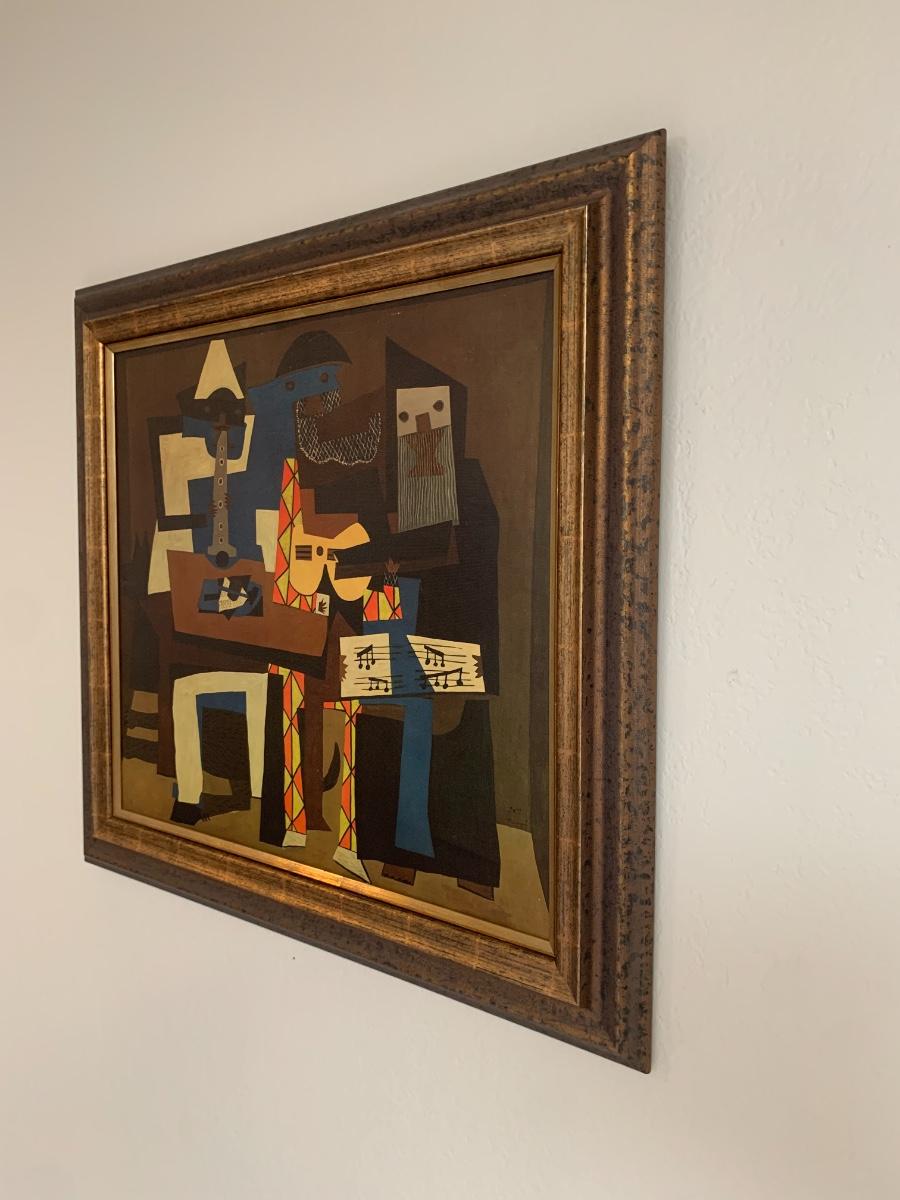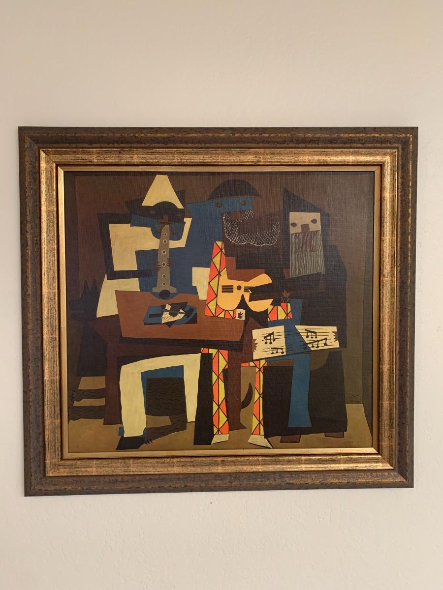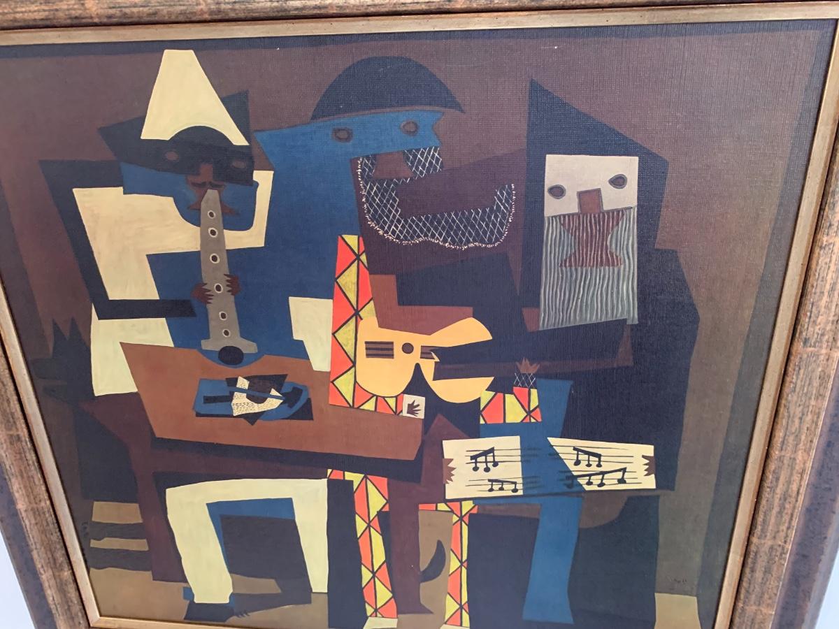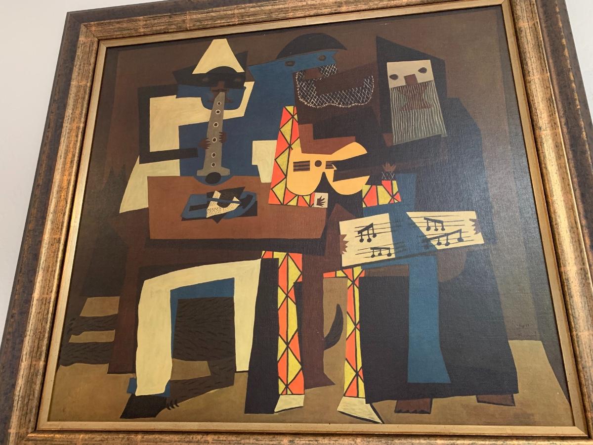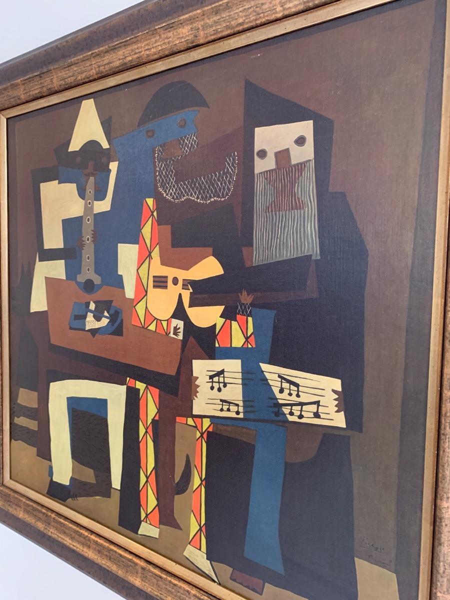 3 musicians by Picasso, Lithoprint in a gilded wood frame, in good condition (28 X 26)