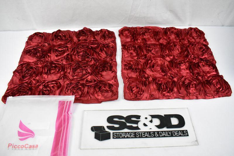 PiccoCasa 2-Pack 3D Flower Decorative Throw Pillow Covers 16" x 16" Burgundy - New
