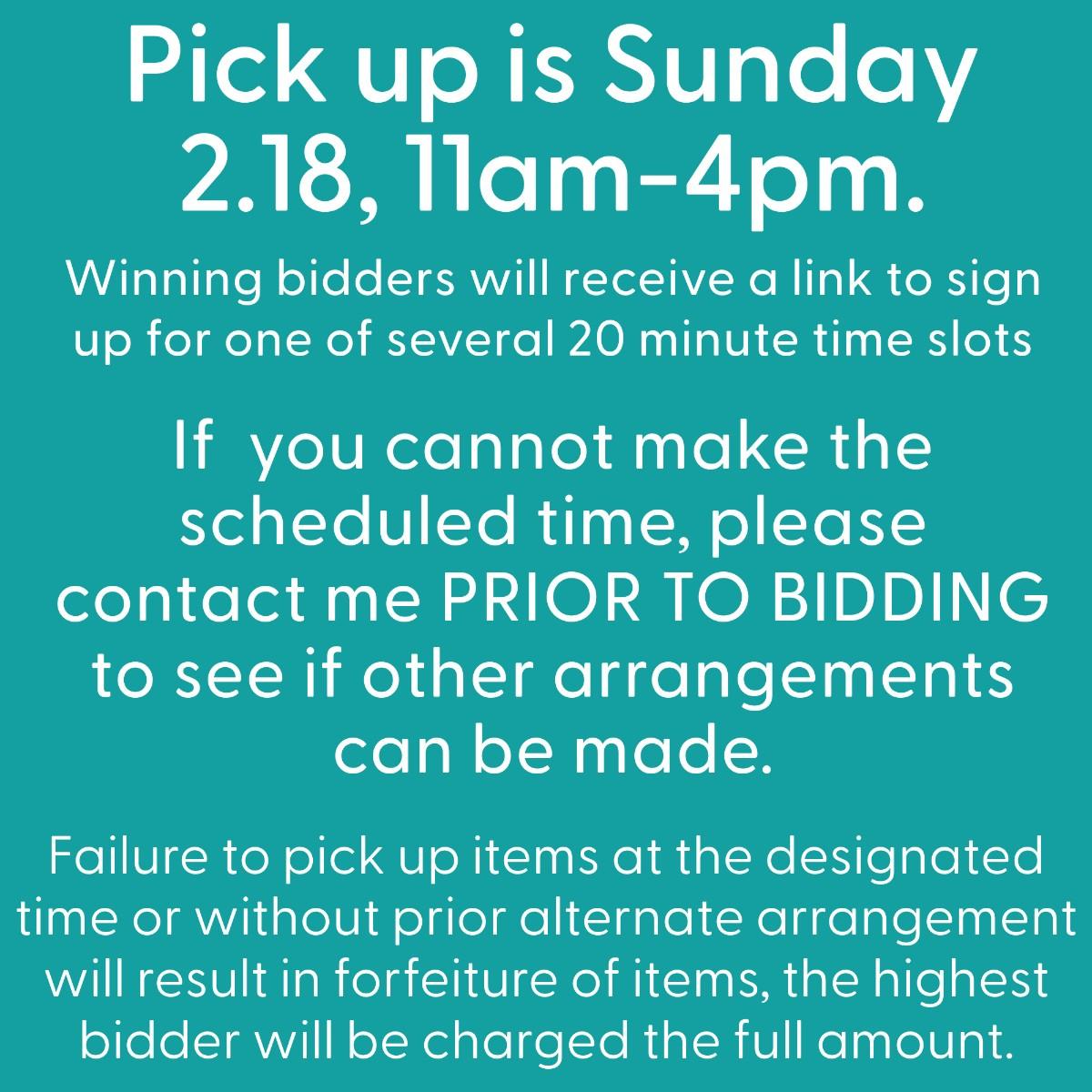 If you are unable to come during the posted times, please contact us PRIOR TO BIDDING to see if we can accommodate your schedule.