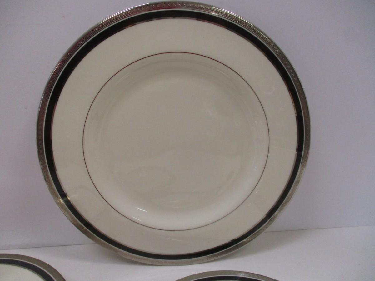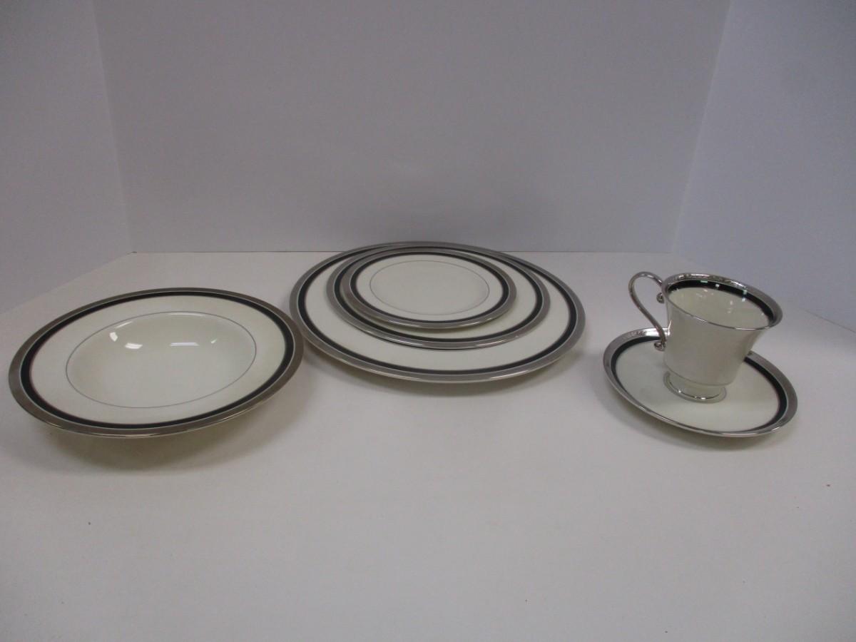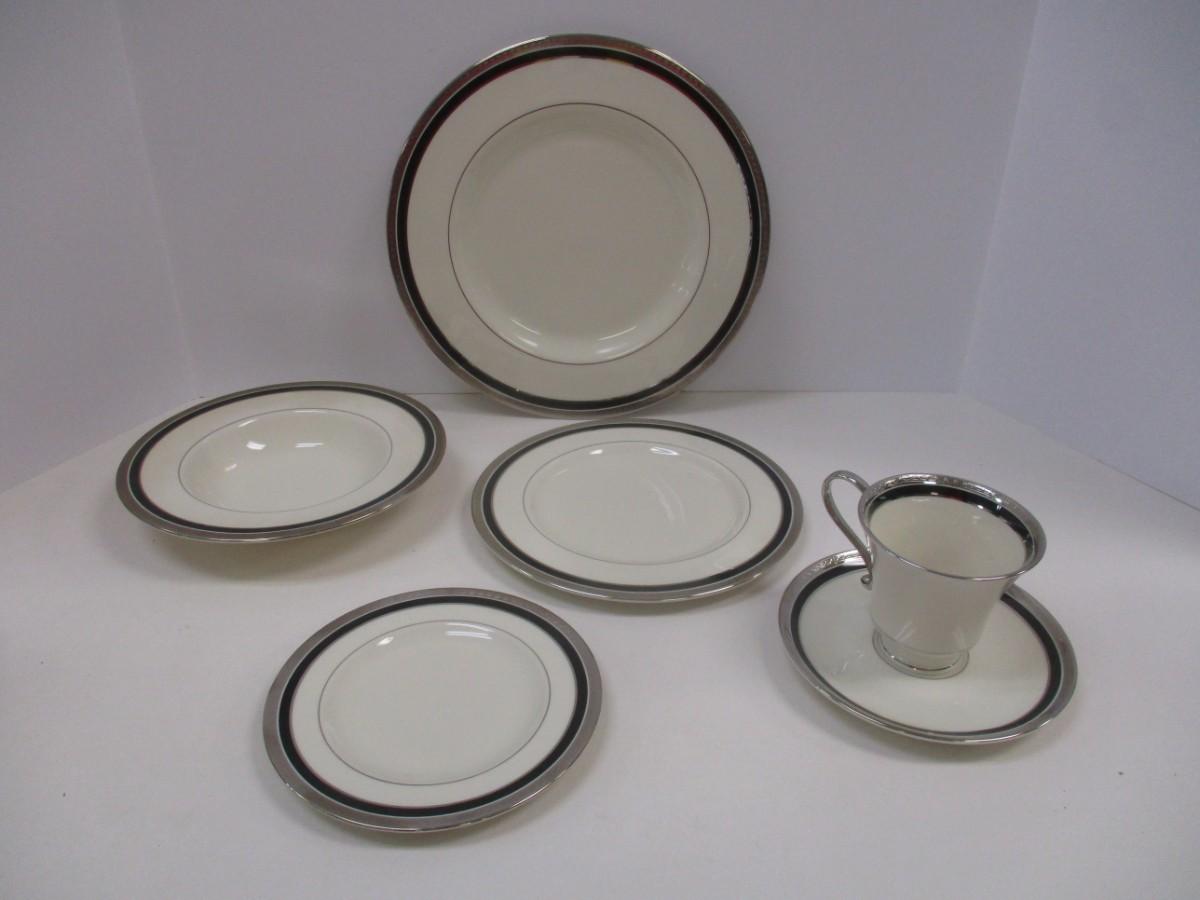 7 Plates, 8 Saucers, 8 Cups, 6 bowls, 8 salad plates, and 7 bread plates