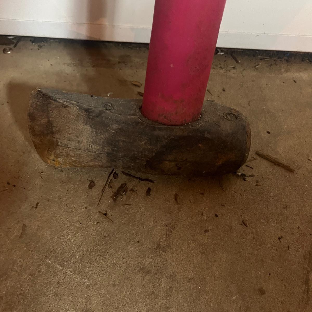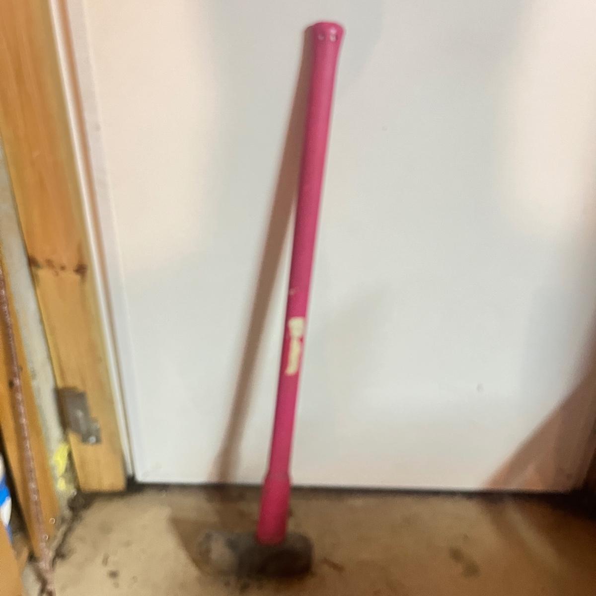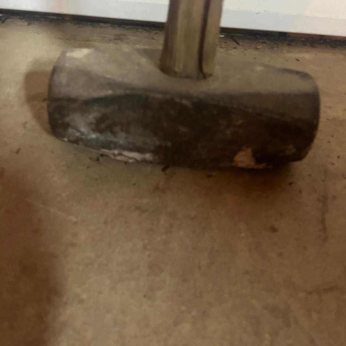 Lot includes a pickaxe, sledgehammer and a axe. Pickaxe measures 3” x 22” x 35”H.