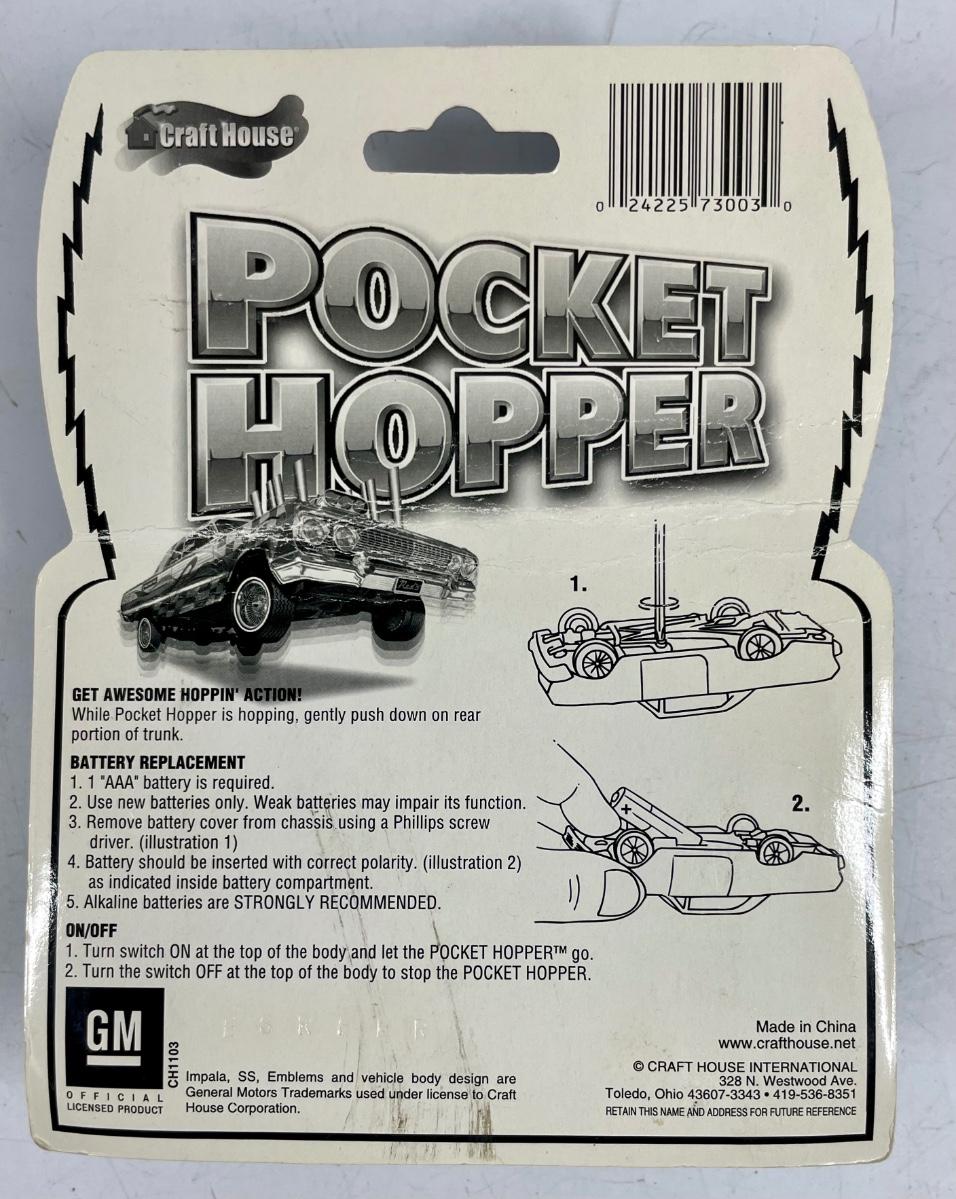 Made by Craft House. New in blister pack. Has "real hoppin' action". Powered by 1 AAA battery. Car is approx. 4' long.