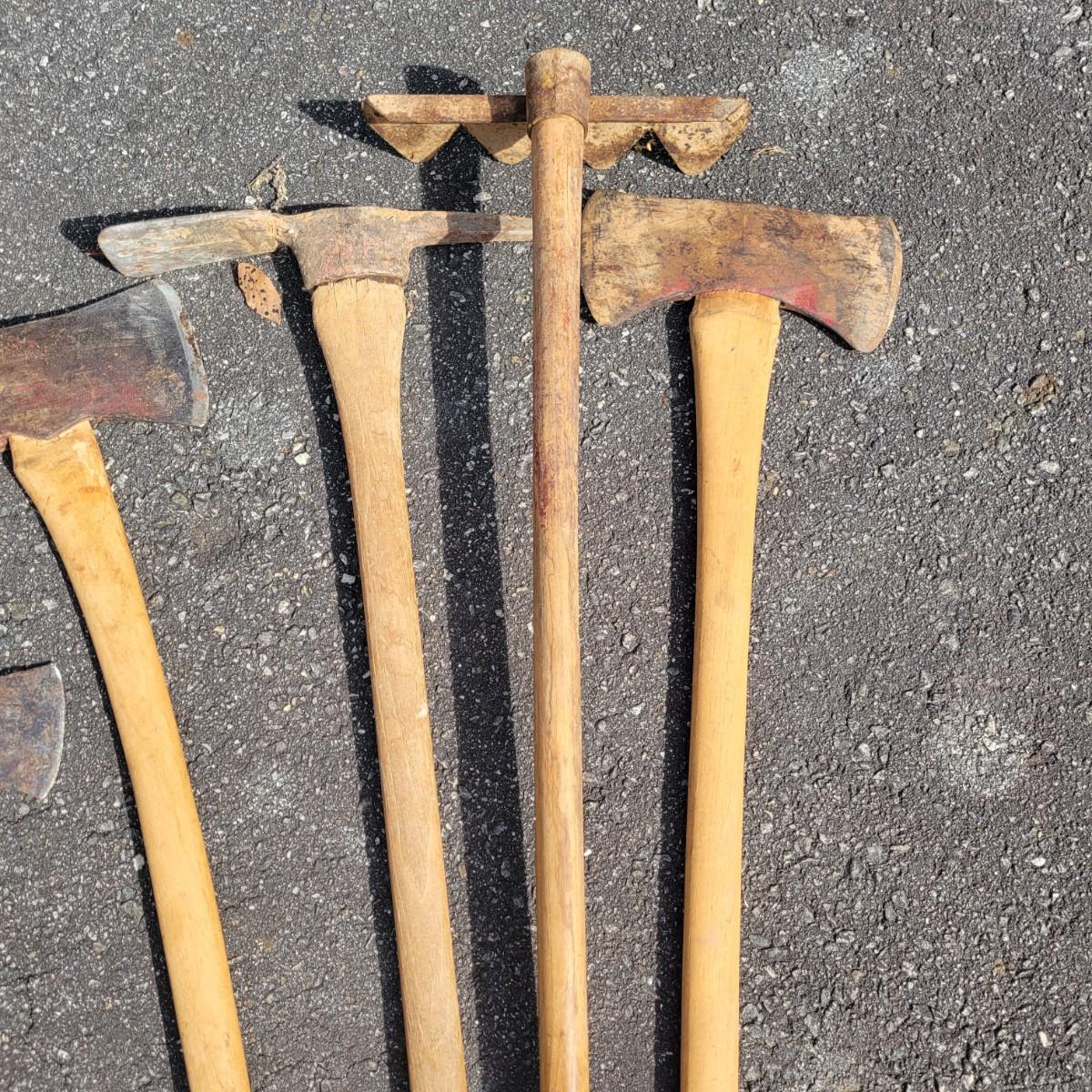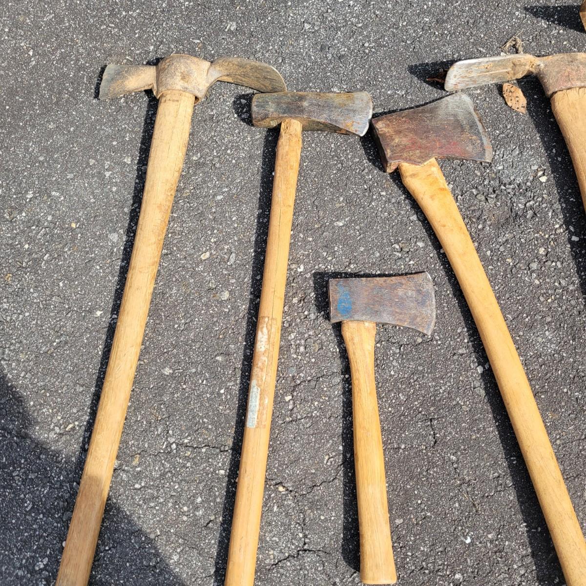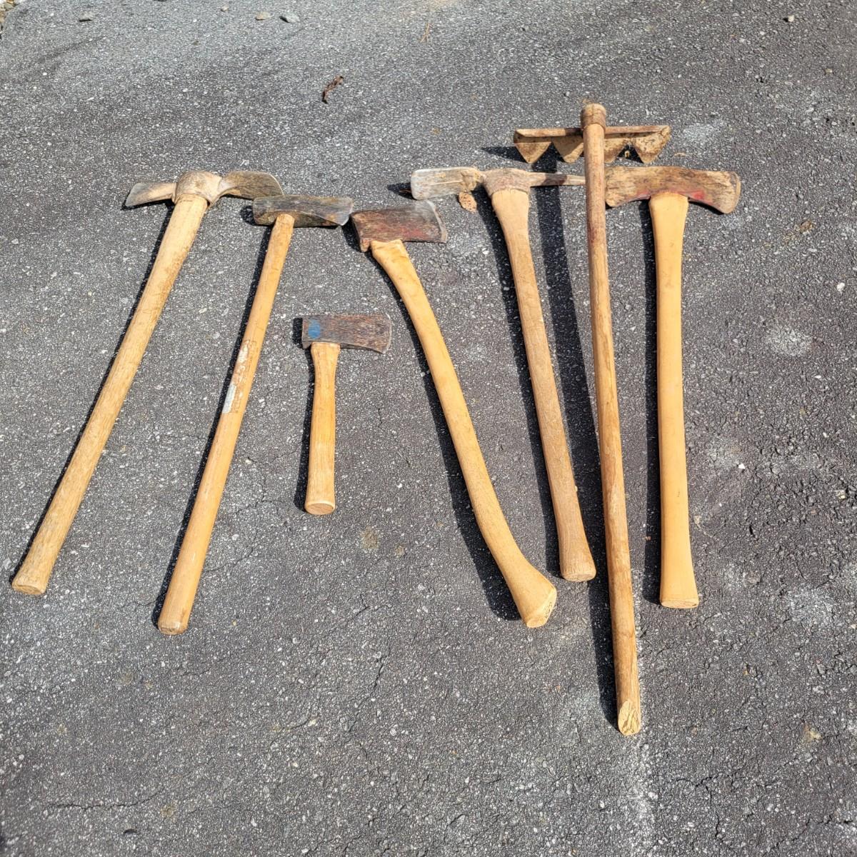 An assortment of axes, picks and a hatchet. Local pickup only