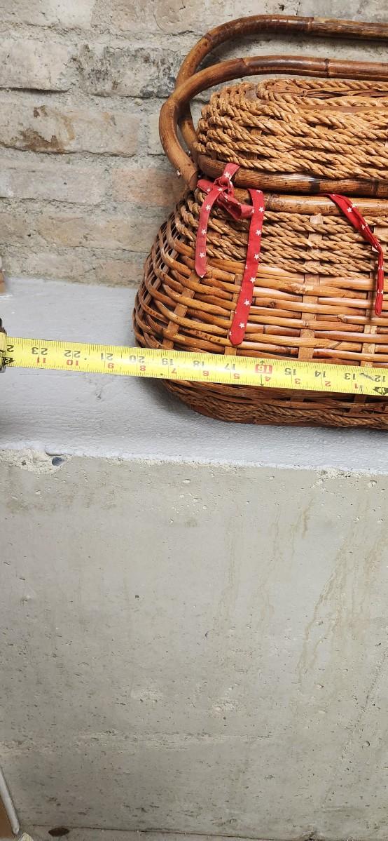 Big picnic basket with plates, bowls, cups tablecloth and napkins...so cute