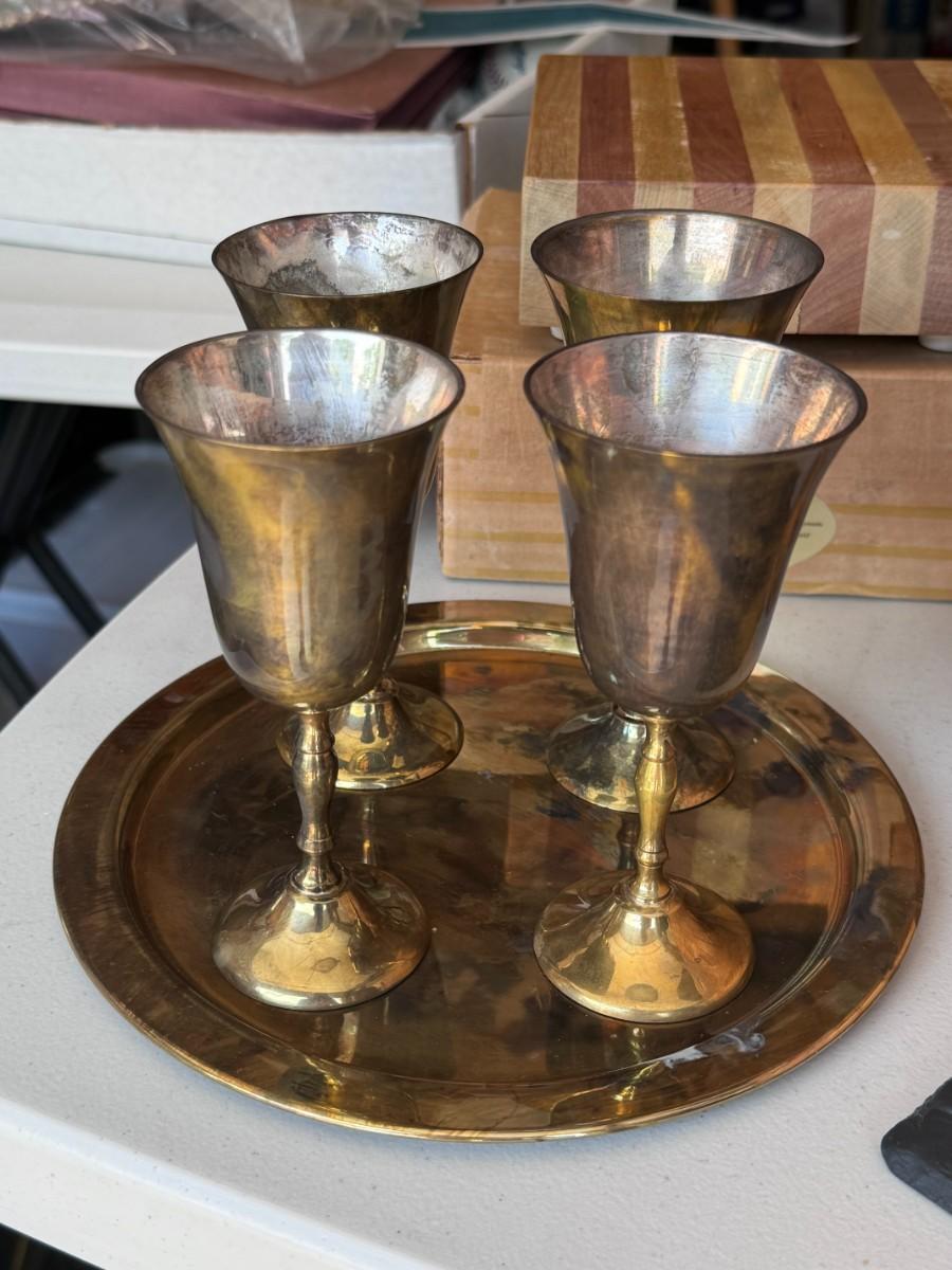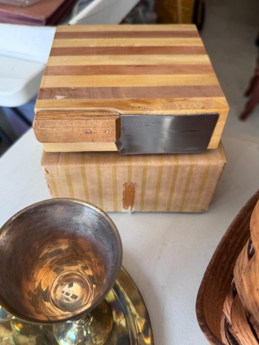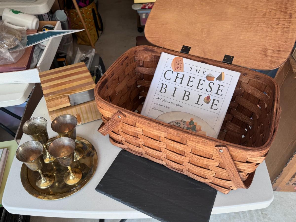 Picnic Basket and Silver 5-Piece Wine Set Lot