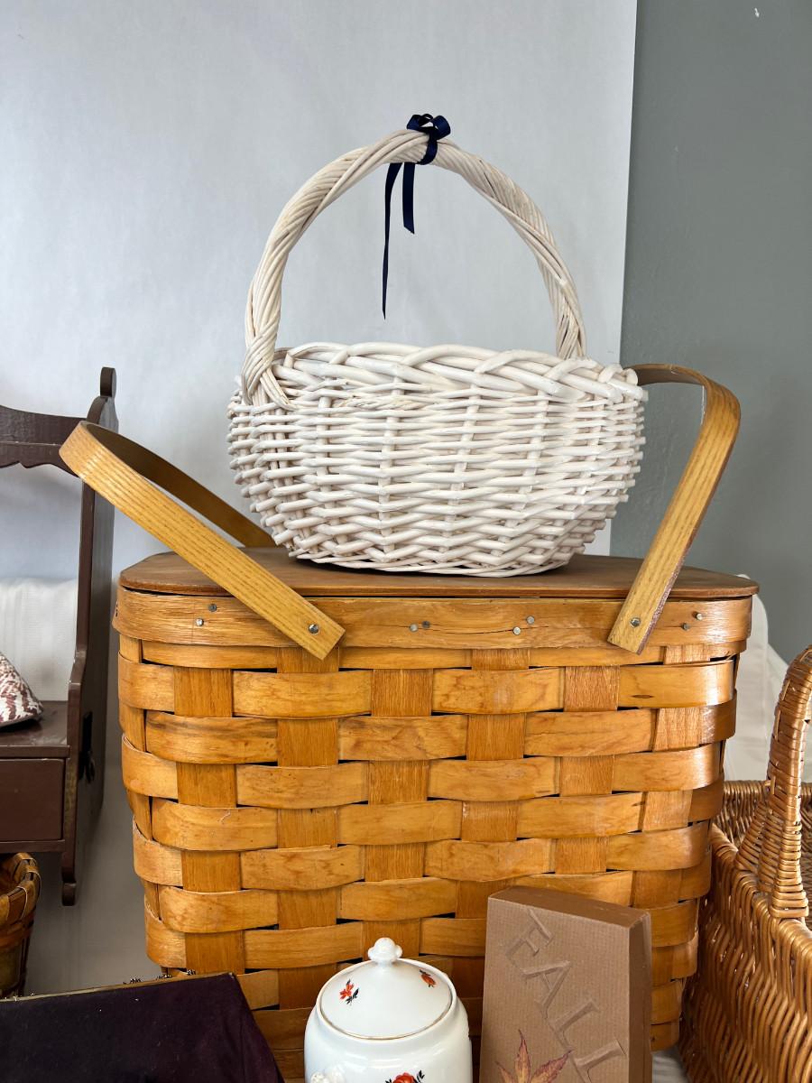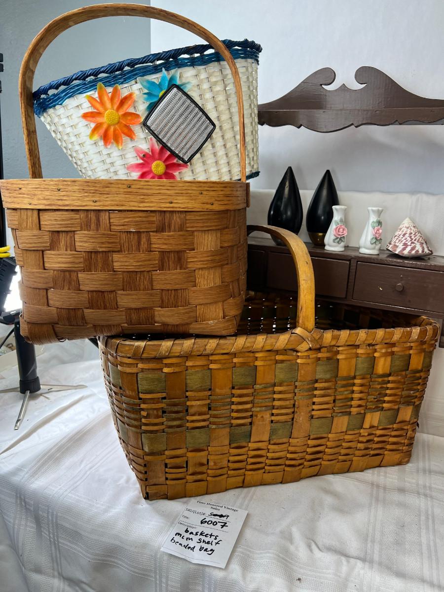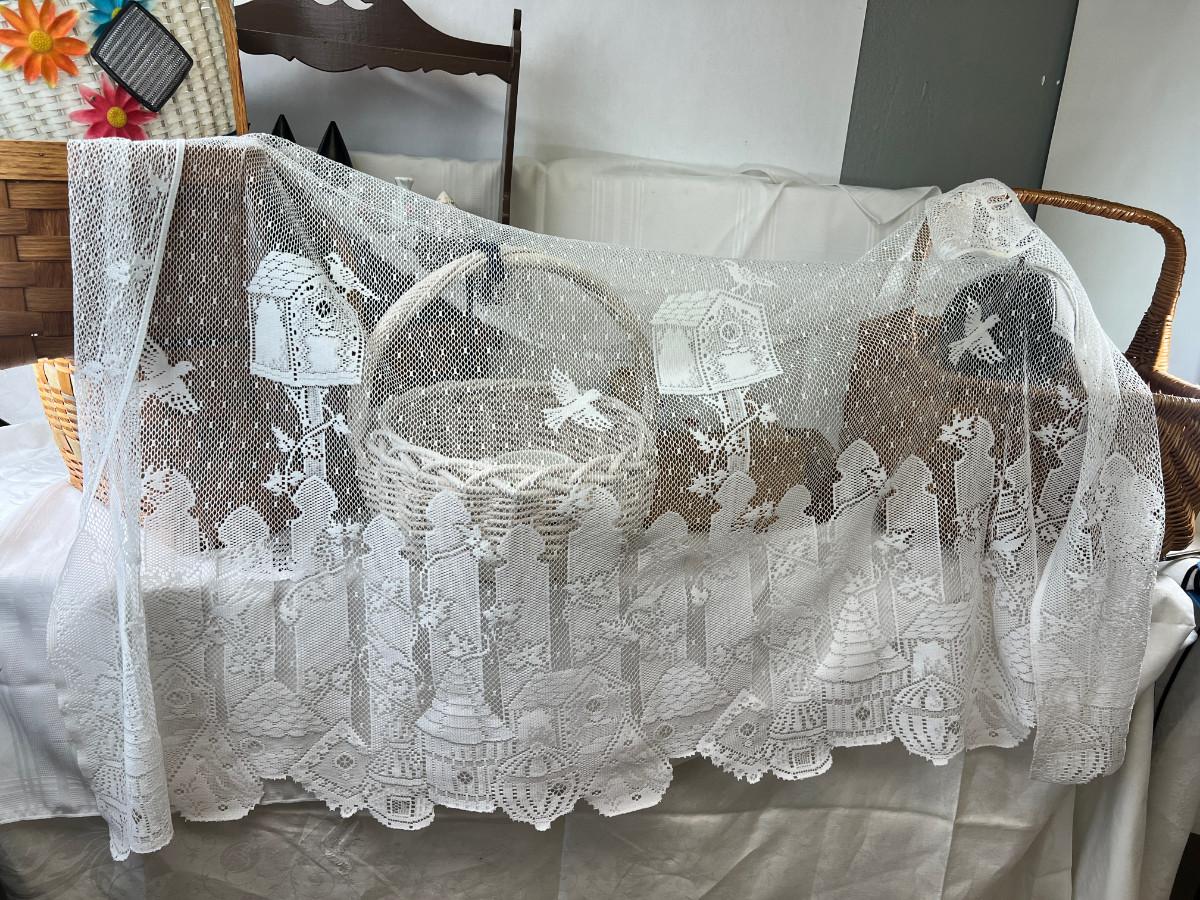 Picnic baskets, Beaded purse, French lace window curtain