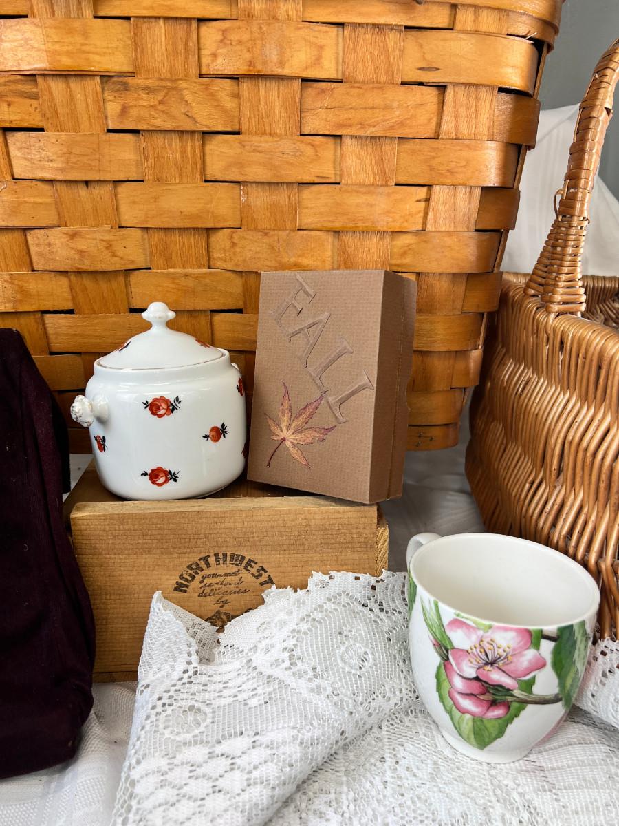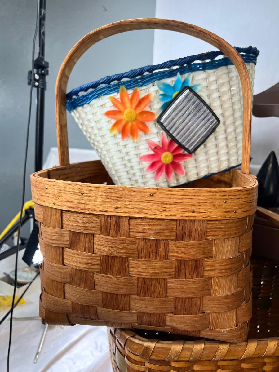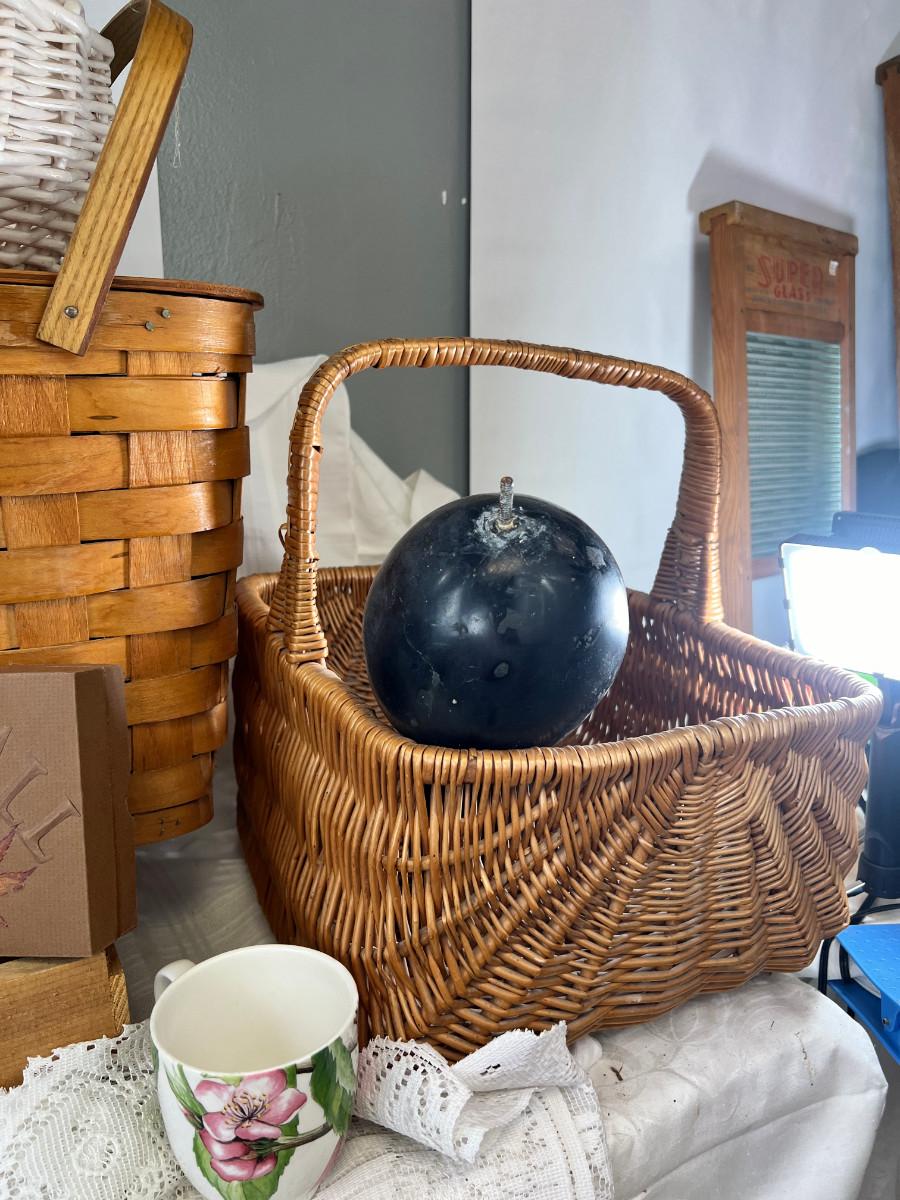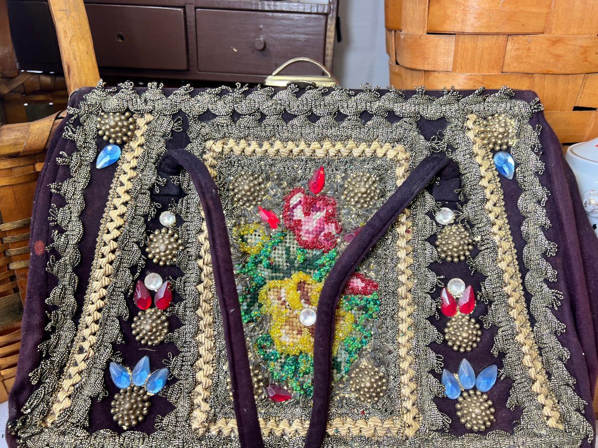 Picnic baskets, Beaded purse, French lace window curtain
