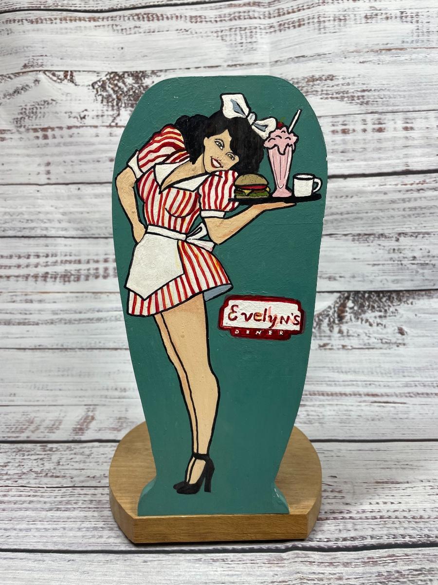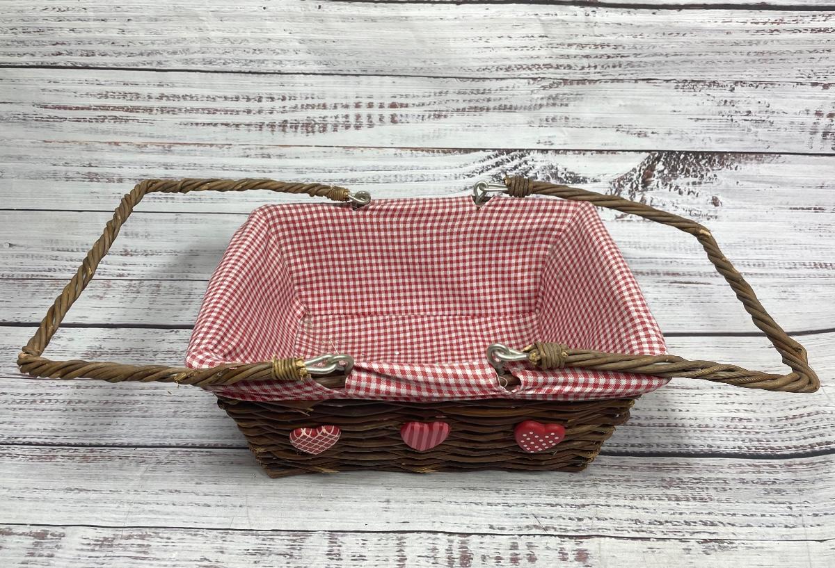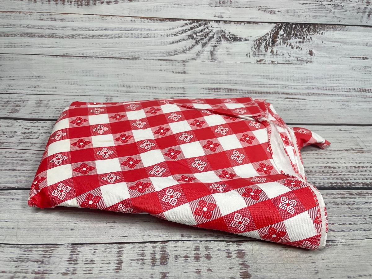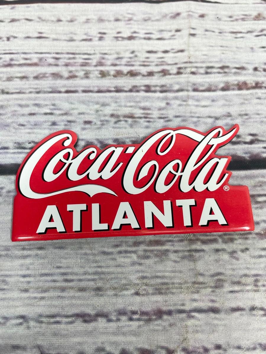 This set includes: one picnic basket, one table cloth, a paper towel holder, two empty Coca-Cola Bottles, a Coca-Cola Magnet and coaster, mini chalk board, and a car shaped card. All items are in decent condition. The table cloth has some discoloration on it.