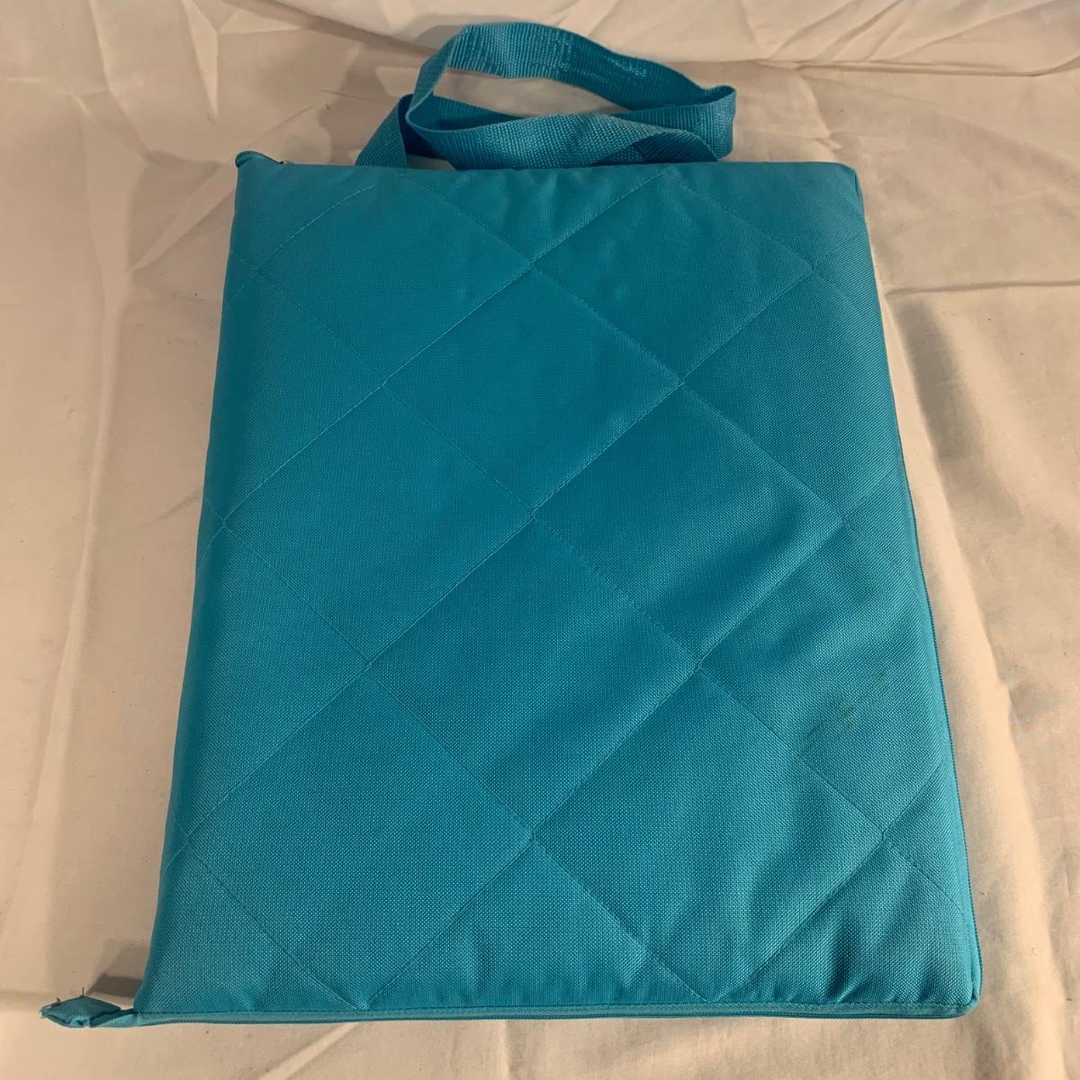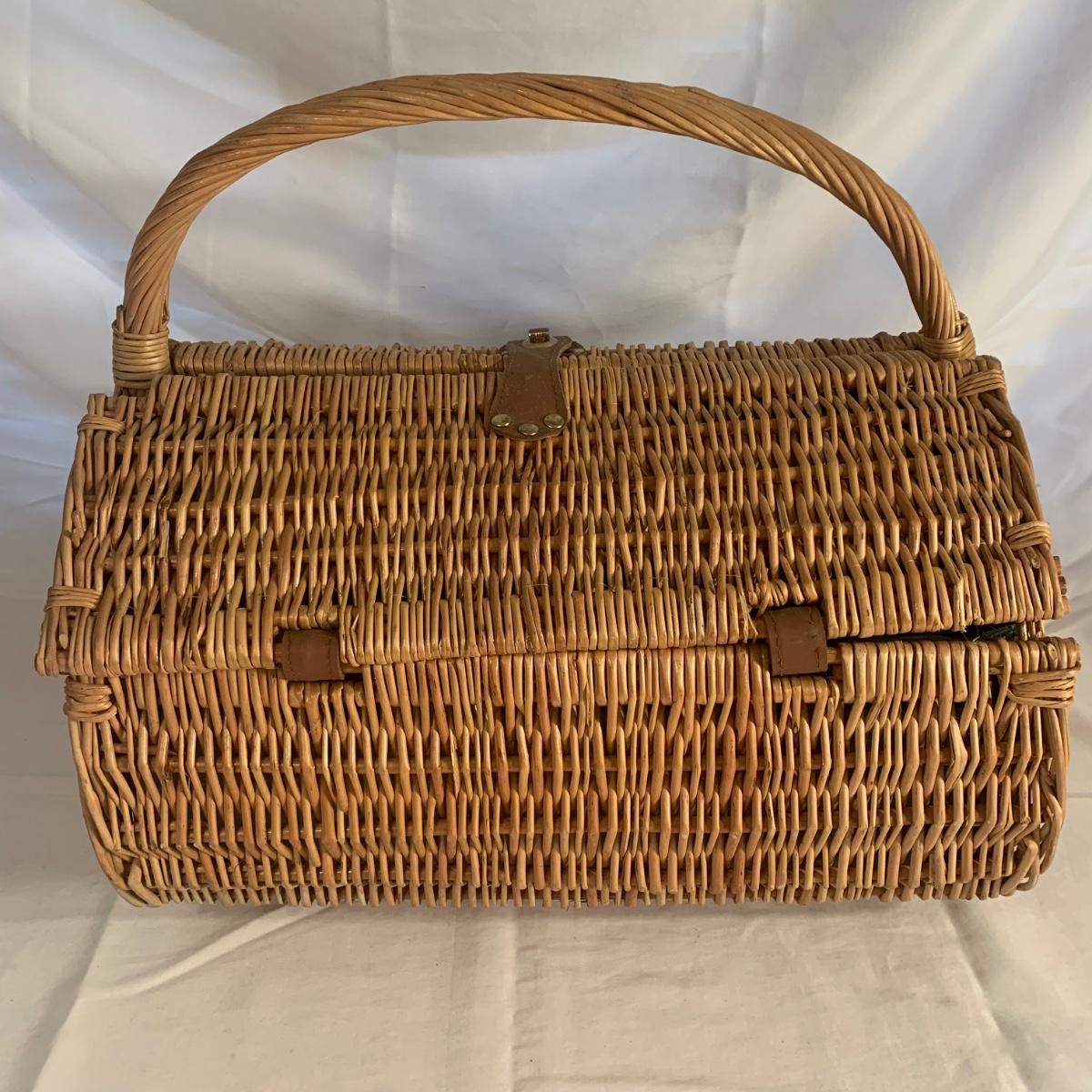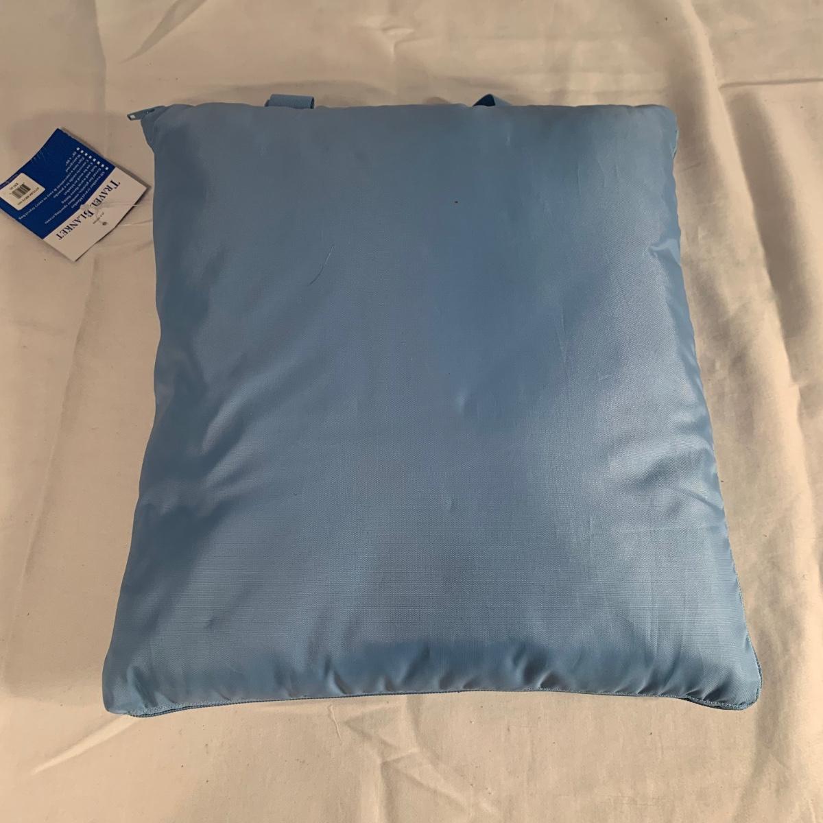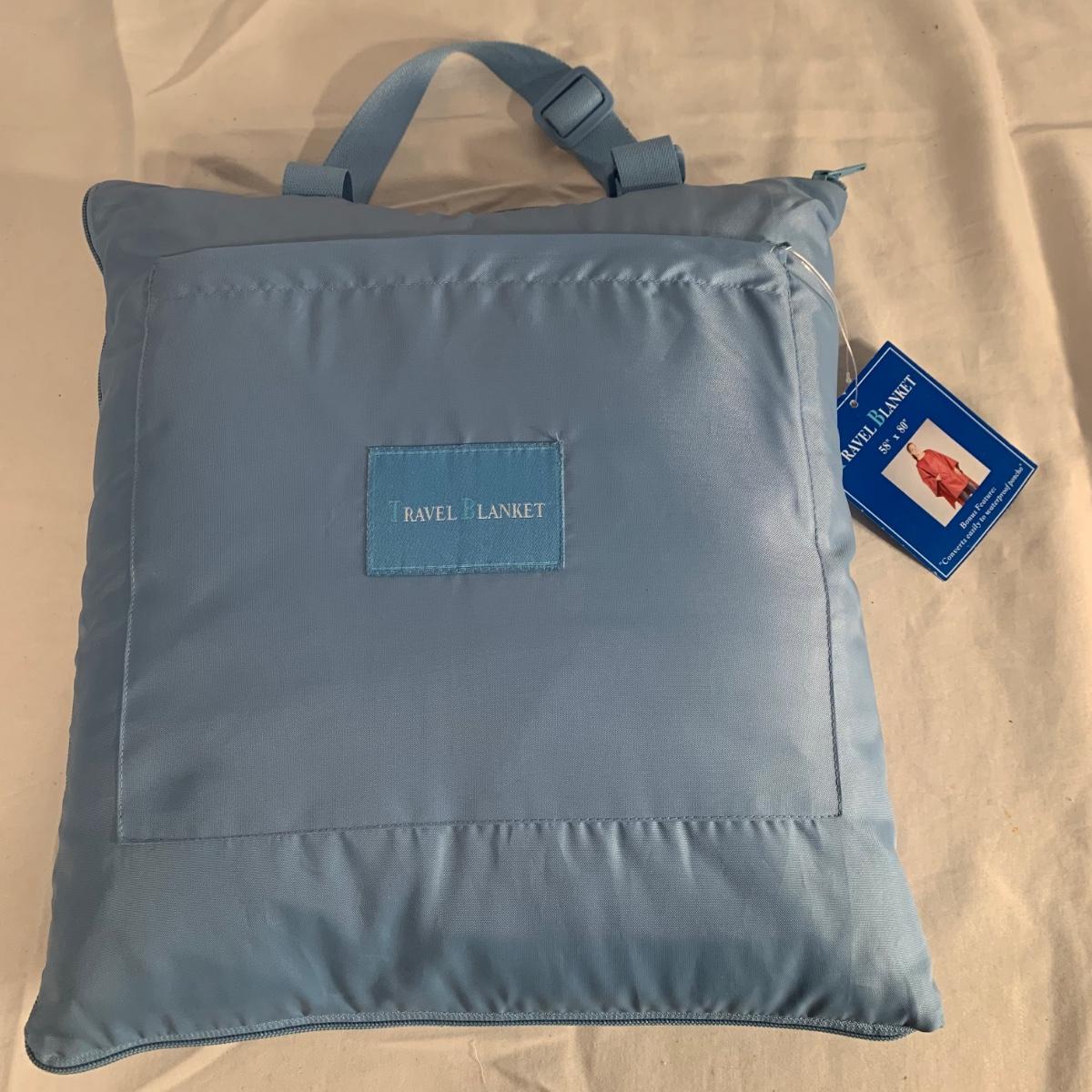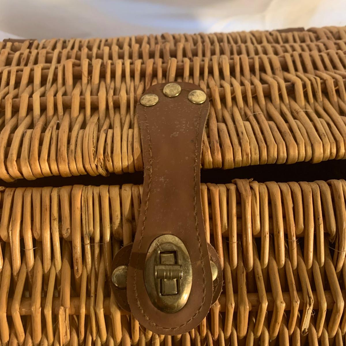 Picnic basket measures, 17”L x 13”W x 18”H. Turquoise blanket measures, 60”L x 72”W and the blue blanket measures, 58”L x 80”W. Picnic basket has been opened, but never used. Blankets are unopened with tags.