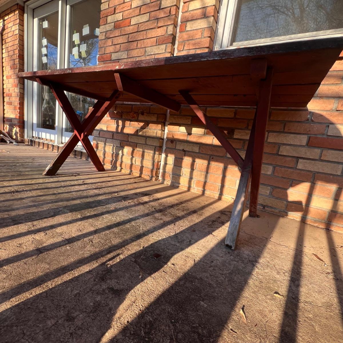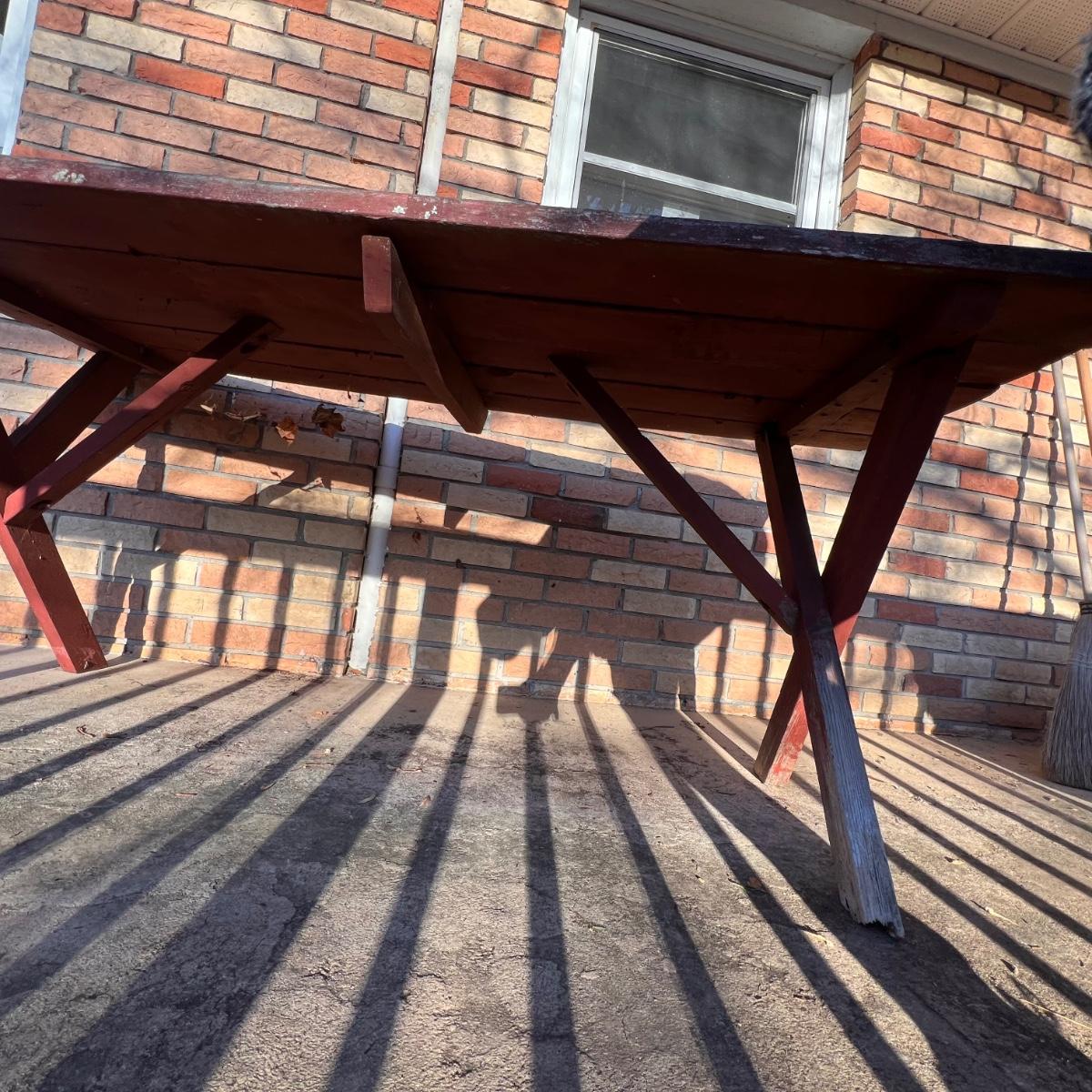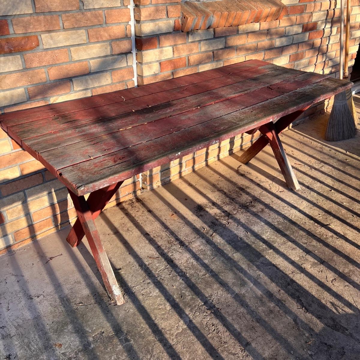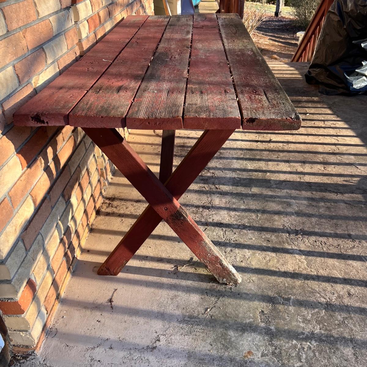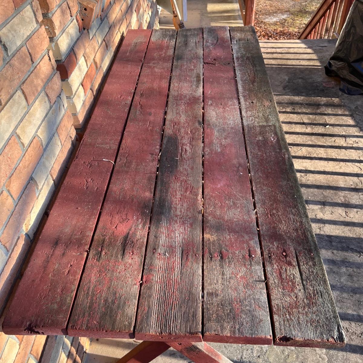 This solid wood picnic table has been painted red at one time, a fresh coat of paint would spiffy it up in no time.