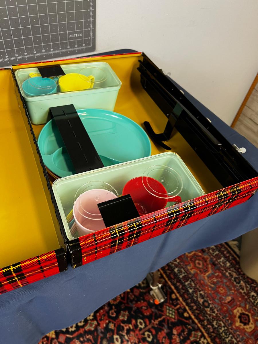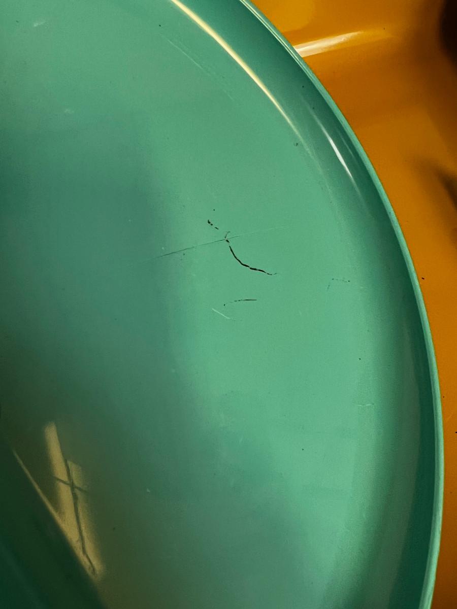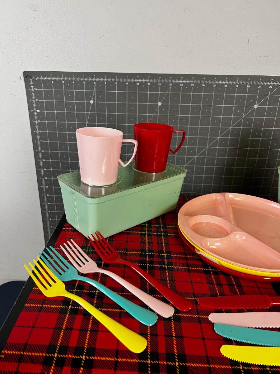 Complete except for One Spoon. Crack in the Blue Plate, however its plastic. DARLING!