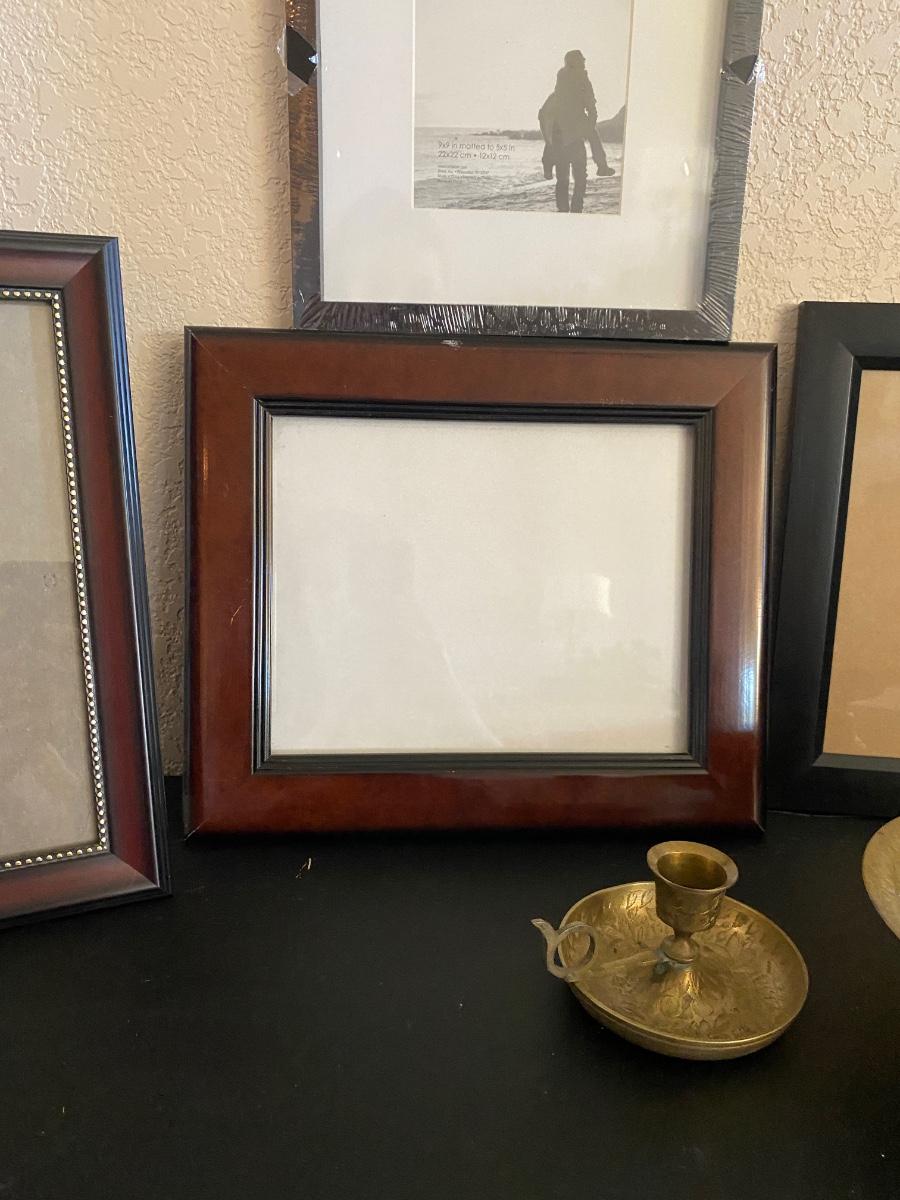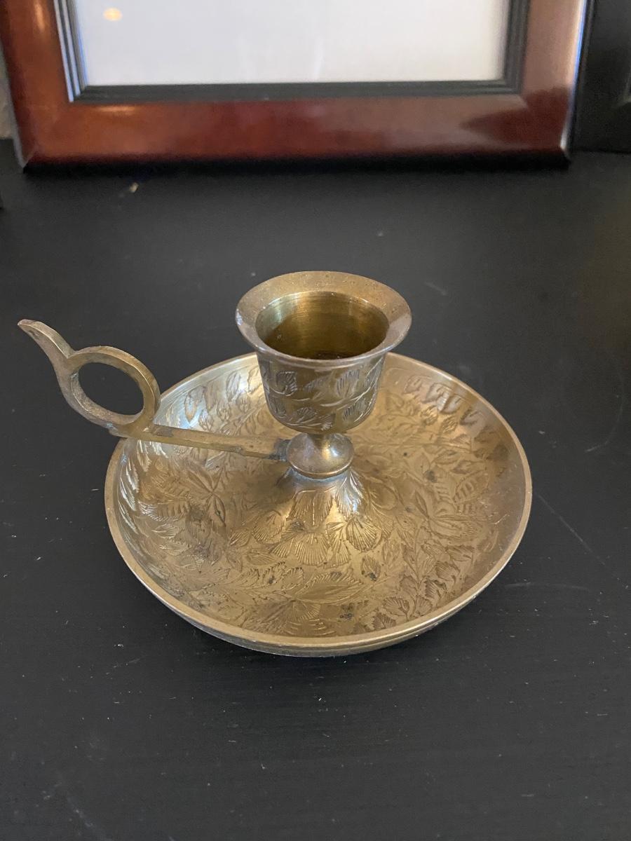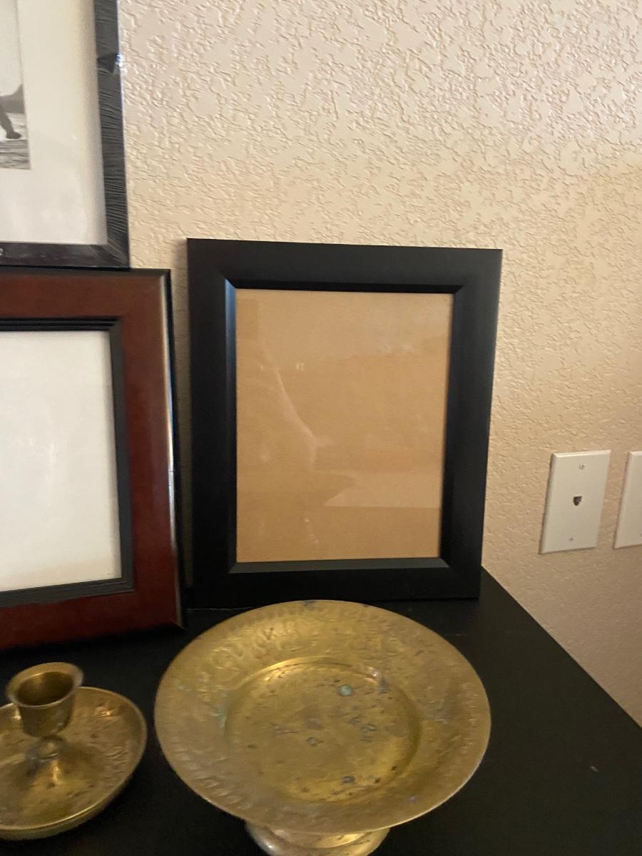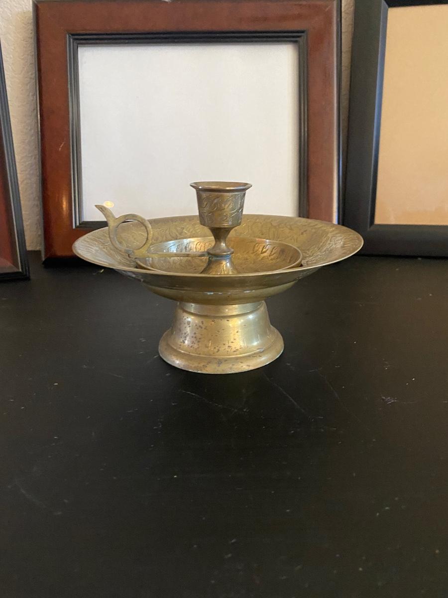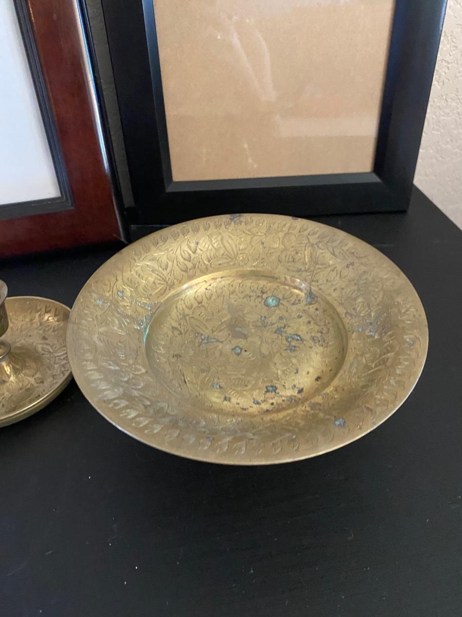 PICTURE DRAMES AND MATCHING BRASS CANDLEHOLDER & PEDESTAL DISH