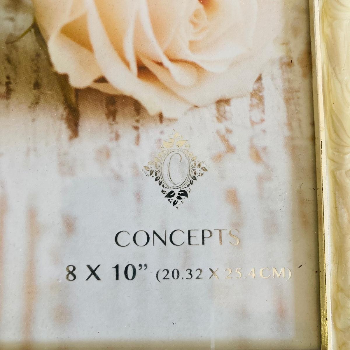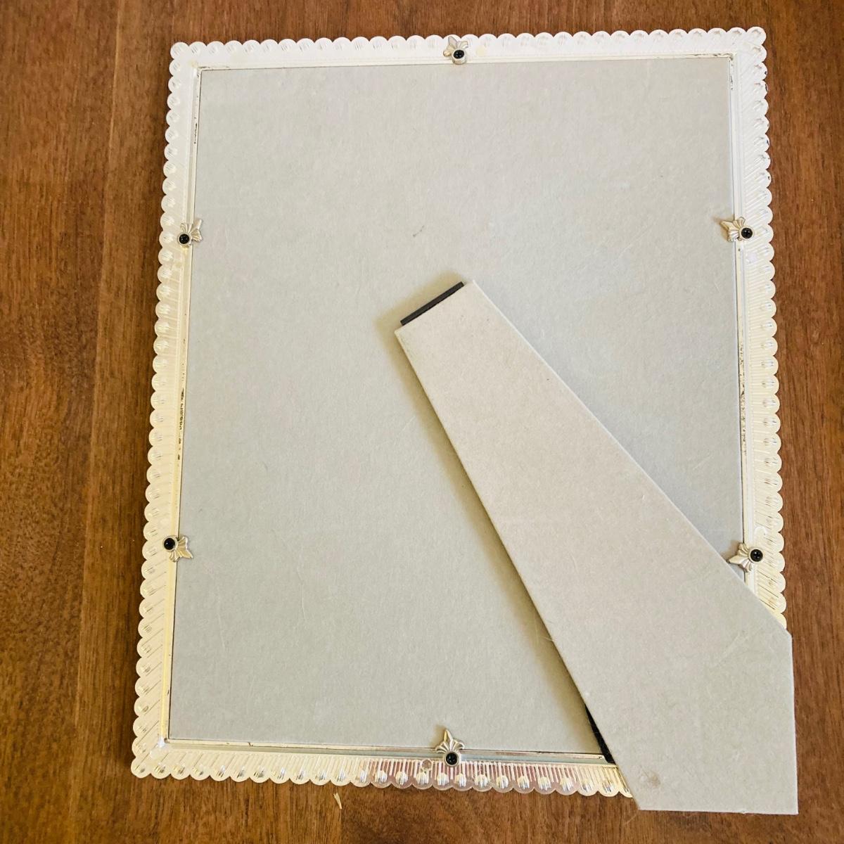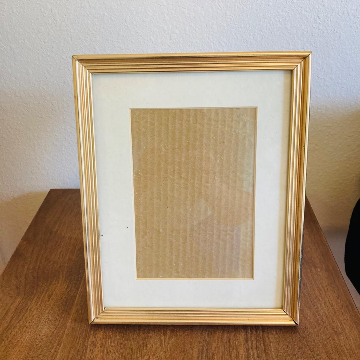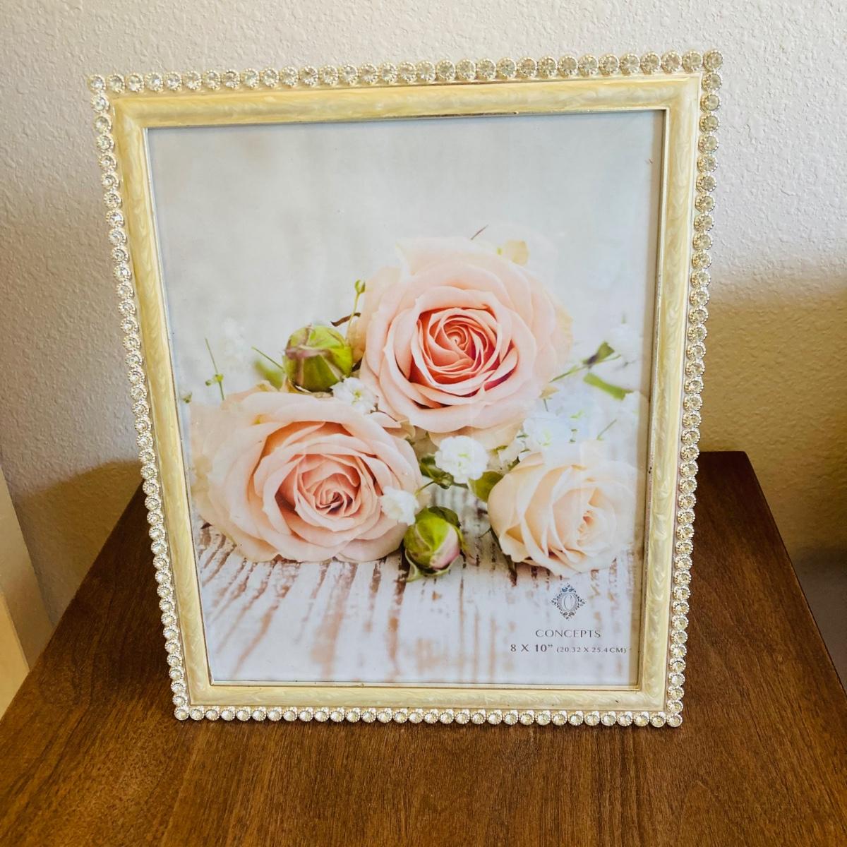 One 8 x 10 metal cream with shimmer stones on frame. One gold metal frame that holds a 5 x 7 picture with cream matte.