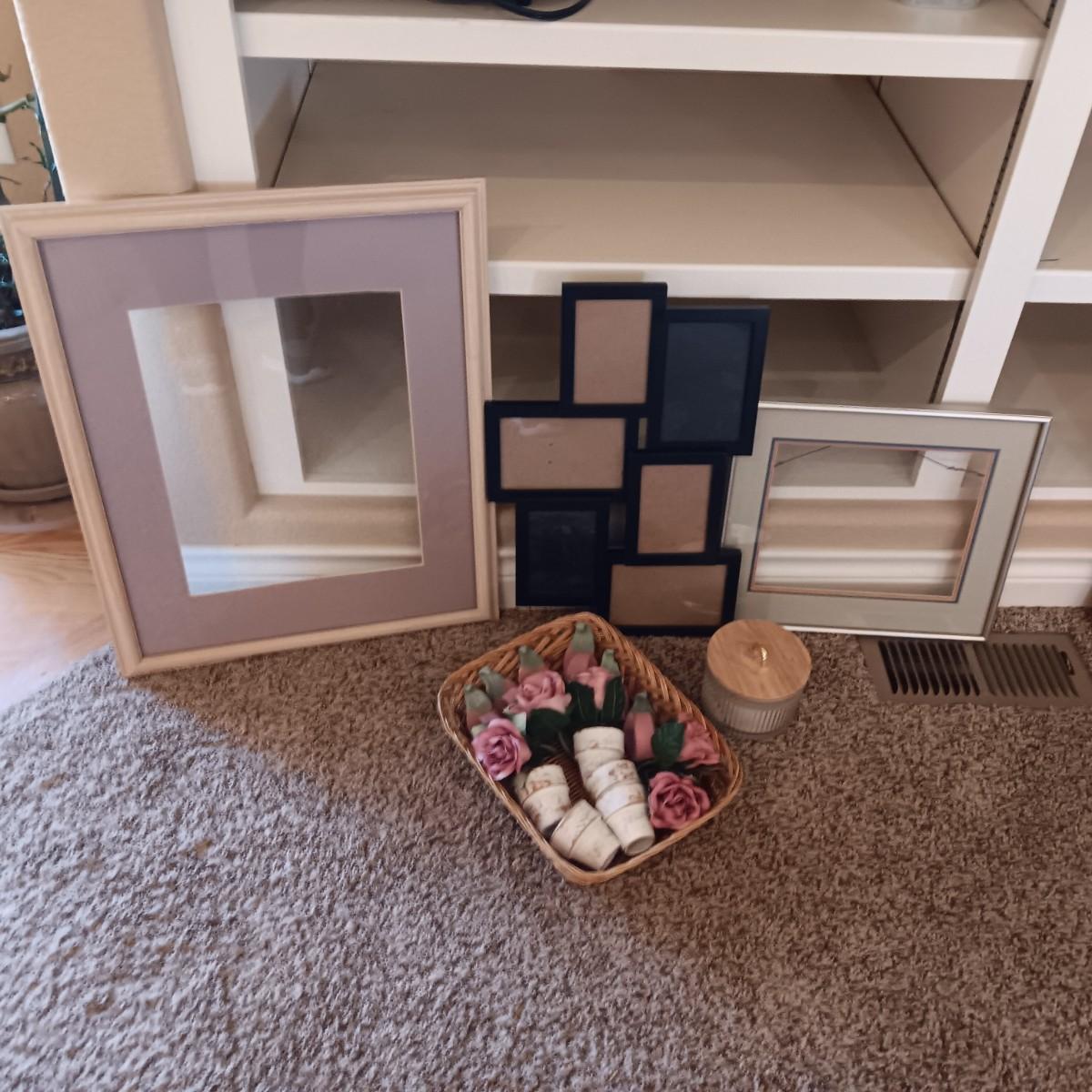 PICTURE FRAMES, NAPKIN RINGS & CANDLE IN A JAR