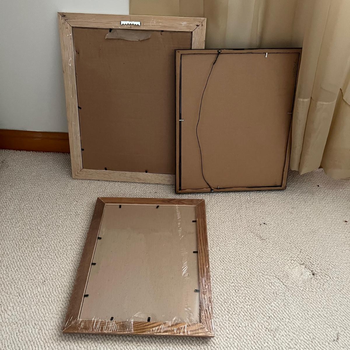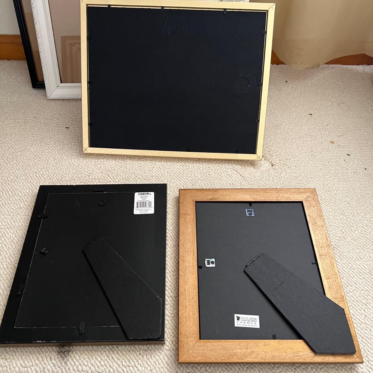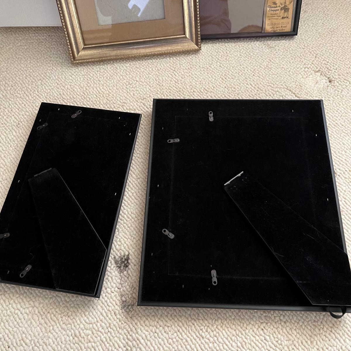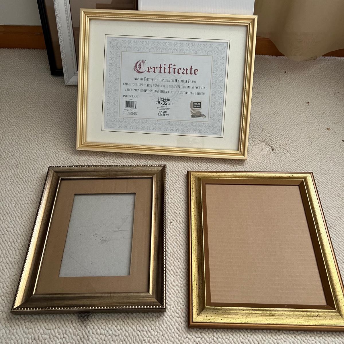 Over 15 frames in this lot, some of which are brand new. Frames are either wood or metal. Lot also includes a new in box photo album.