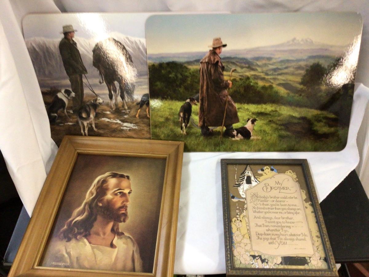 You get two dog pictures on place mats, Jesus picture, My Brother saying.
